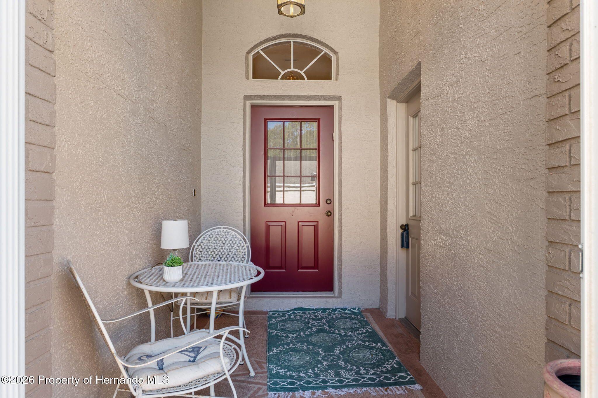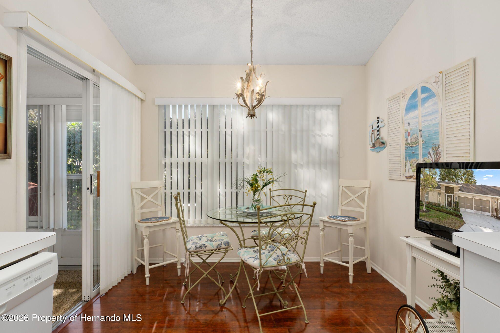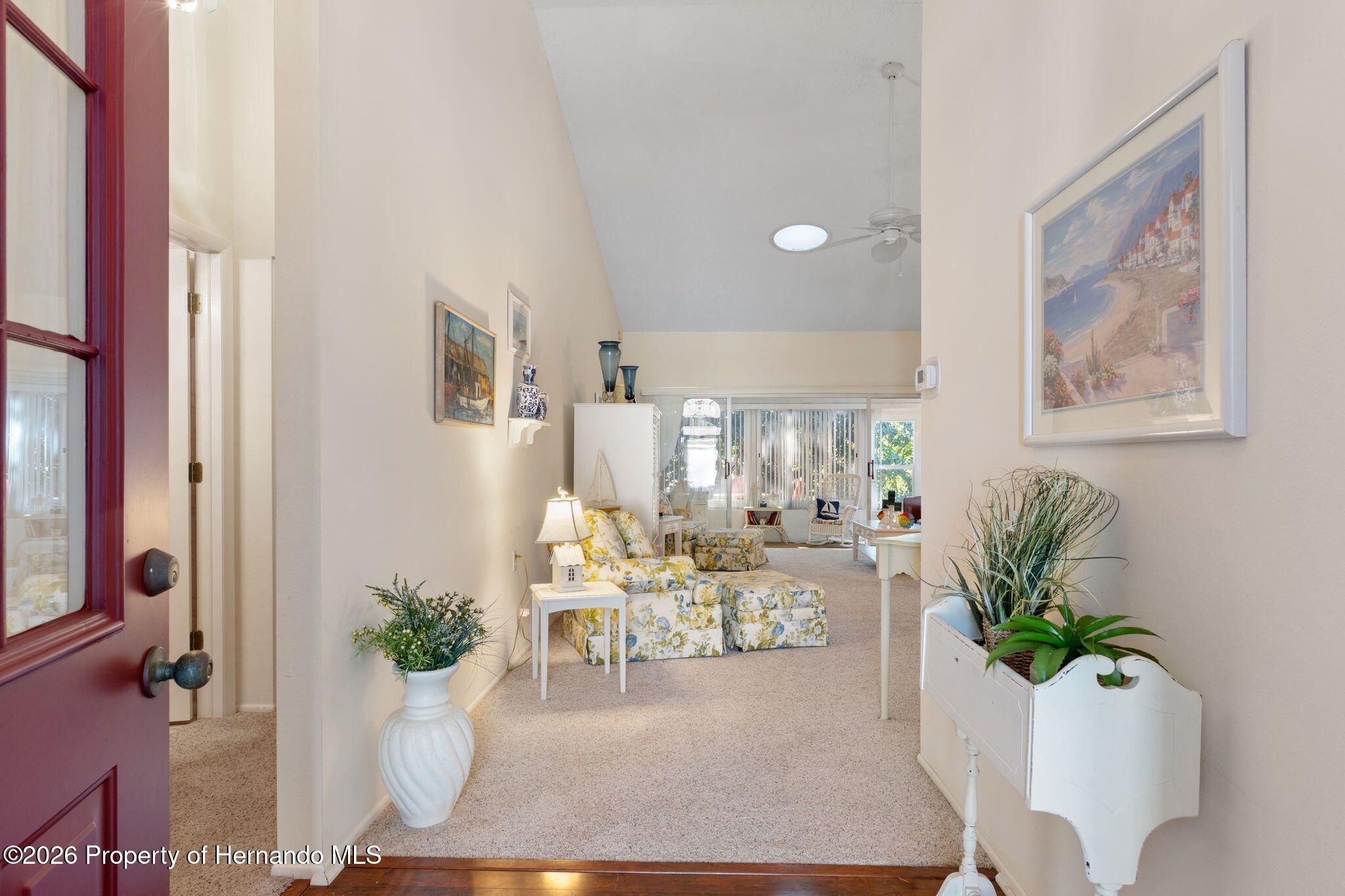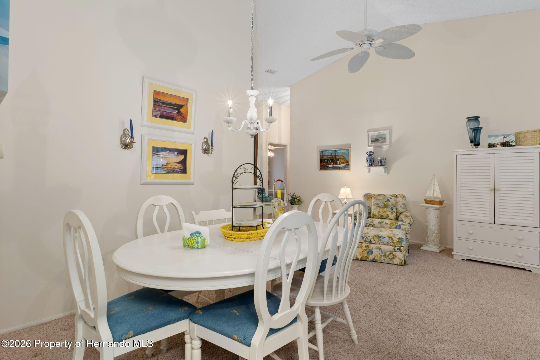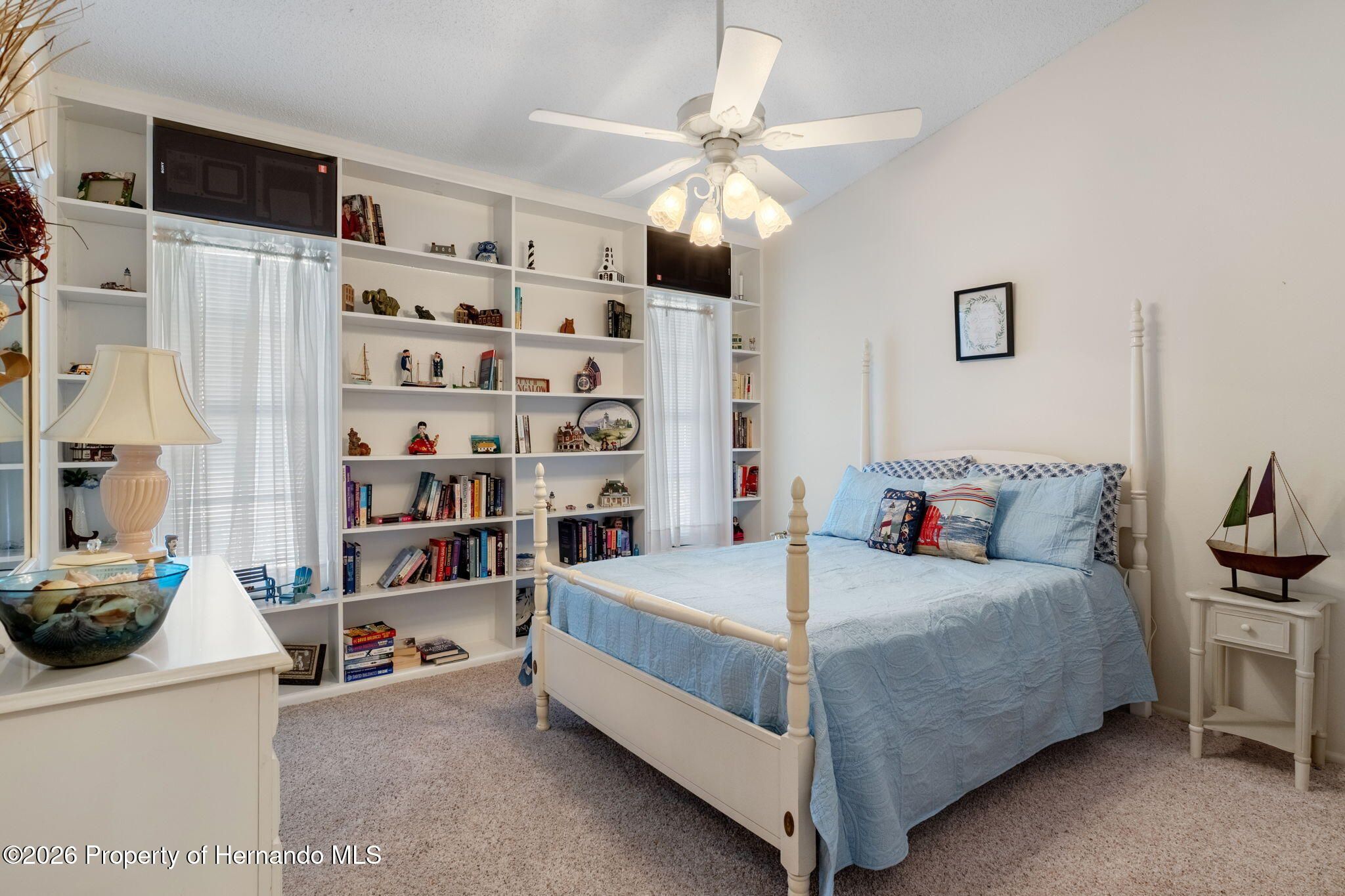 Welcome to effortless living in this delightful 2-bedroom, 2-bathroom villa nestled within the prestigious Timber Pines, an award-winning 55+ golfing community where the lifestyle is as inviting as the greens. This move-in-ready gem offers 1,245 square feet of thoughtfully designed living space, and here's the best part—it comes fully furnished with a golf cart included so that you can hit the links from day one! Even better, Country Ridge Village is pet-friendly and welcomes one dog, so your four-legged companion can enjoy this active lifestyle right alongside you. Step inside and be greeted by soaring vaulted ceilings that create an open, airy atmosphere. Natural light pours through the solar tube in the living room, illuminating the seamless flow between the living and dining areas. The kitchen opens beautifully to these spaces, making entertaining a breeze thanks to its new microwave and stove. The master suite serves as your private retreat, featuring two generous walk-in closets and an ensuite bath with dual vanity, a convenient step-down shower, and its own solar tube for natural brightness. Your guests will appreciate their own comfortable bedroom with charming built-in bookshelves and integrated speakers, plus a full bath with tub-shower combination. The enclosed lanai with acrylic windows transforms into a versatile three-season room, perfect for a cozy home office or morning coffee spot. Step outside to your private backyard oasis, complete with a cement patio and lush privacy bushes. Recent updates provide peace of mind, including a brand-new water heater installed in January 2026, a roof replaced in 2015, and an interior laundry room with a new washer and a newer dryer. The enclosed front porch and screened garage doors add extra comfort and convenience. A one-year home warranty valued at 550 sweetens this already irresistible package. Schedule your private showing today! Priced competitively and located in a desirable area with convenient access to community features, shopping, and recreation, this property is well-suited for buyers seeking comfort and value. You won't be bored with over 100 clubs, a Country Club, a Performing Arts Center, a Wellness Center, golf, bocce, tennis, and pickleball.