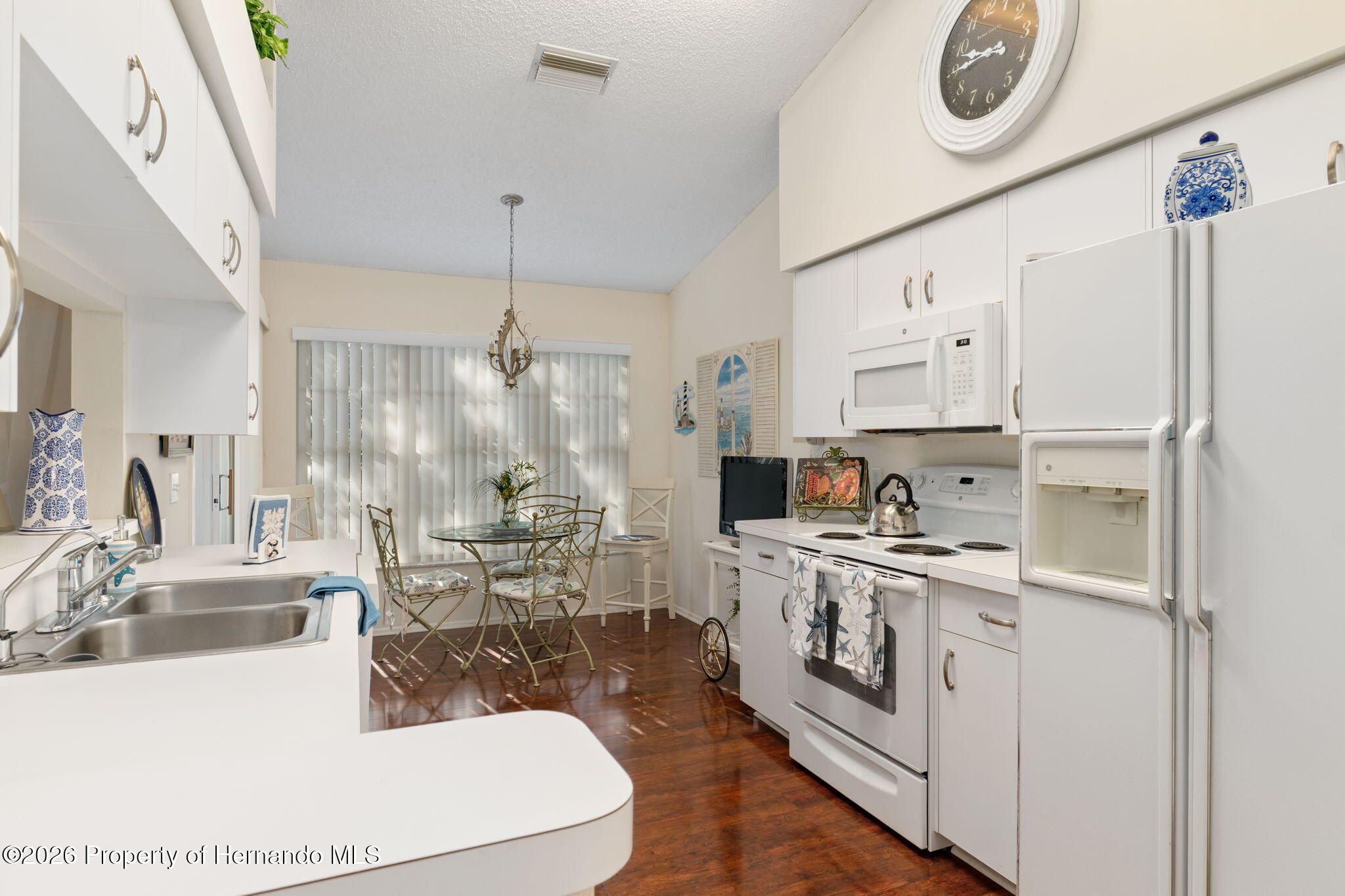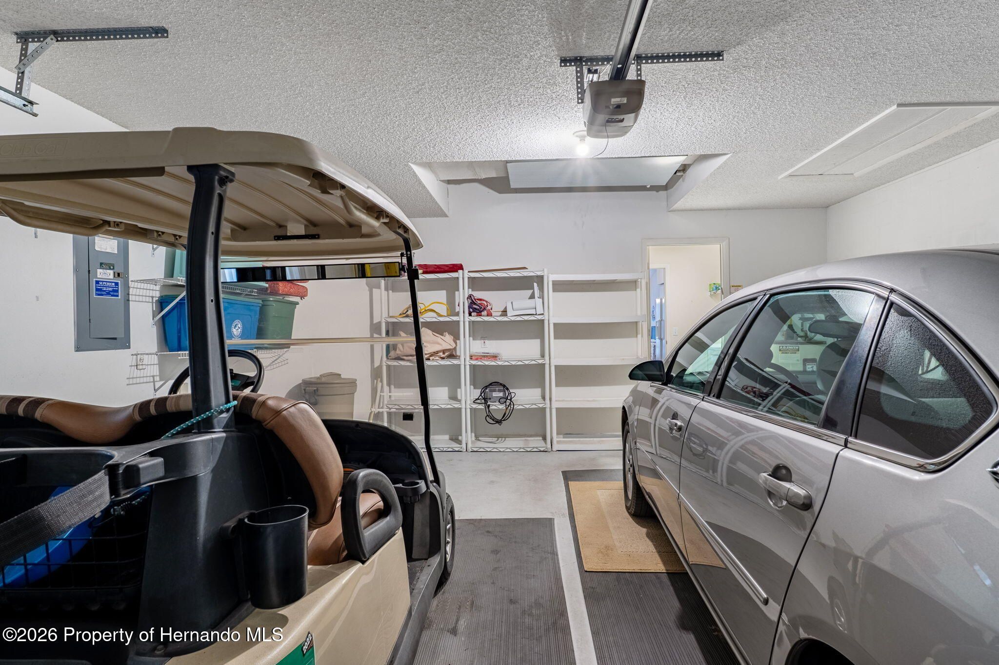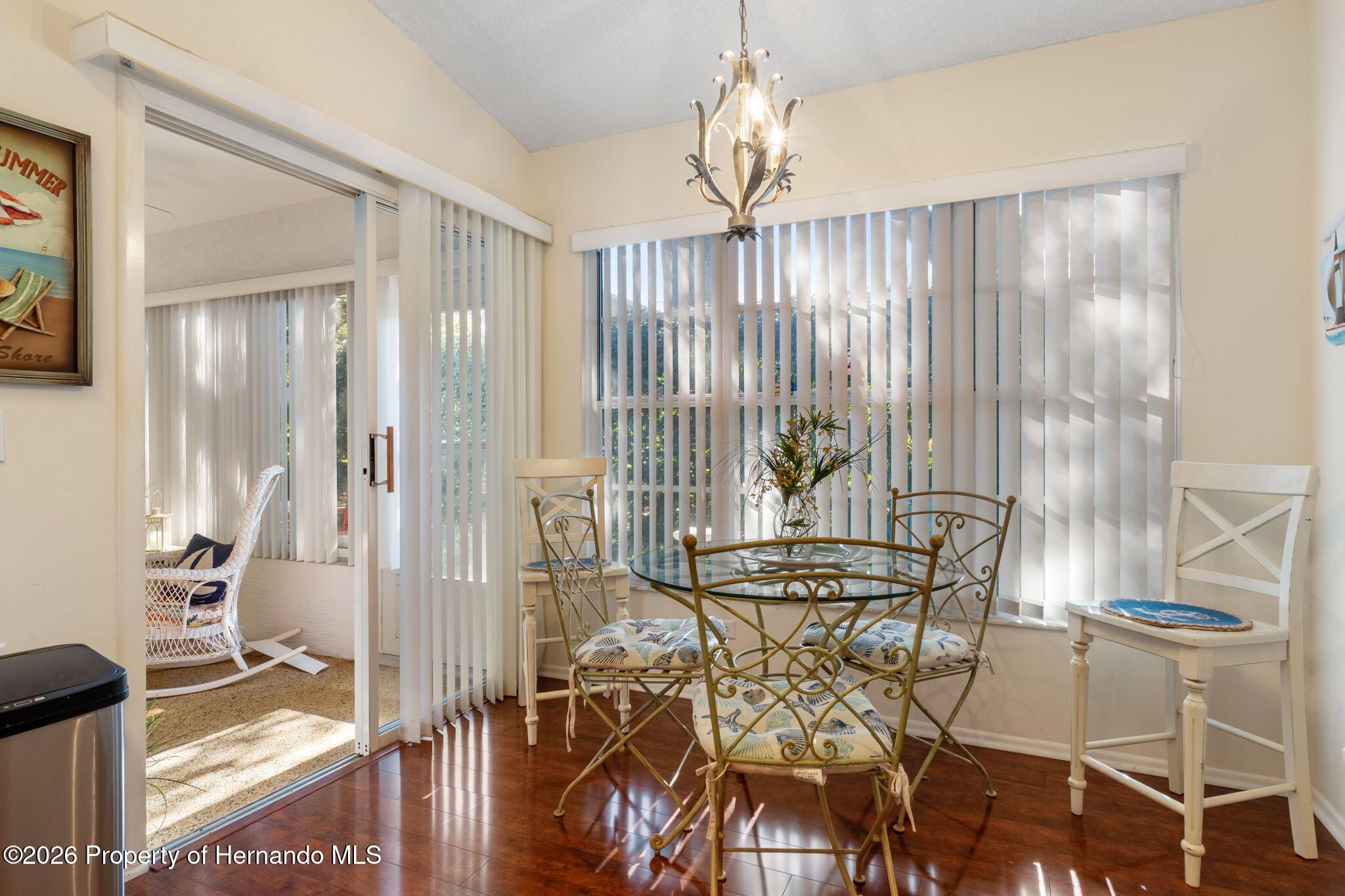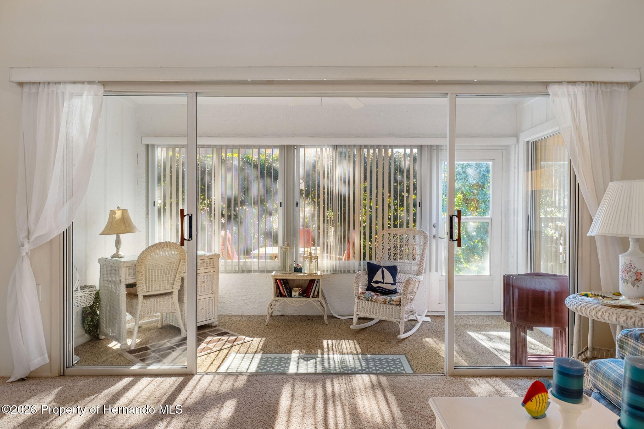 Welcome to effortless living in this delightful 2-bedroom, 2-bathroom villa nestled within the prestigious Timber Pines, an award-winning 55+ golfing community where the lifestyle is as inviting as the greens. This move-in-ready gem offers 1,245 square feet of thoughtfully designed living space, and here's the best part—it comes fully furnished with a golf cart included so that you can hit the links from day one! Even better, Country Ridge Village is pet-friendly and welcomes one dog, so your four-legged companion can enjoy this active lifestyle right alongside you. Step inside and be greeted by soaring vaulted ceilings that create an open, airy atmosphere. Natural light pours through the solar tube in the living room, illuminating the seamless flow between the living and dining areas. The kitchen opens beautifully to these spaces, making entertaining a breeze thanks to its new microwave and stove. The master suite serves as your private retreat, featuring two generous walk-in closets and an ensuite bath with dual vanity, a convenient step-down shower, and its own solar tube for natural brightness. Your guests will appreciate their own comfortable bedroom with charming built-in bookshelves and integrated speakers, plus a full bath with tub-shower combination. The enclosed lanai with acrylic windows transforms into a versatile three-season room, perfect for a cozy home office or morning coffee spot. Step outside to your private backyard oasis, complete with a cement patio and lush privacy bushes. Recent updates provide peace of mind, including a brand-new water heater installed in January 2026, a roof replaced in 2015, and an interior laundry room with a new washer and a newer dryer. The enclosed front porch and screened garage doors add extra comfort and convenience. A one-year home warranty valued at 550 sweetens this already irresistible package. Schedule your private showing today! Priced competitively and located in a desirable area with convenient access to community features, shopping, and recreation, this property is well-suited for buyers seeking comfort and value. You won't be bored with over 100 clubs, a Country Club, a Performing Arts Center, a Wellness Center, golf, bocce, tennis, and pickleball.