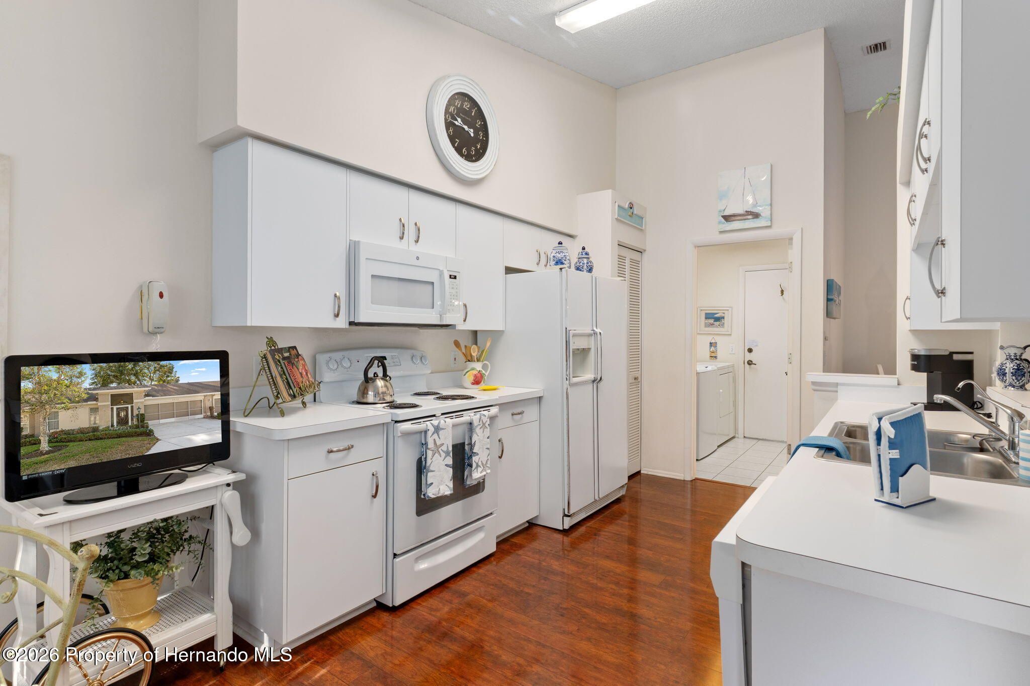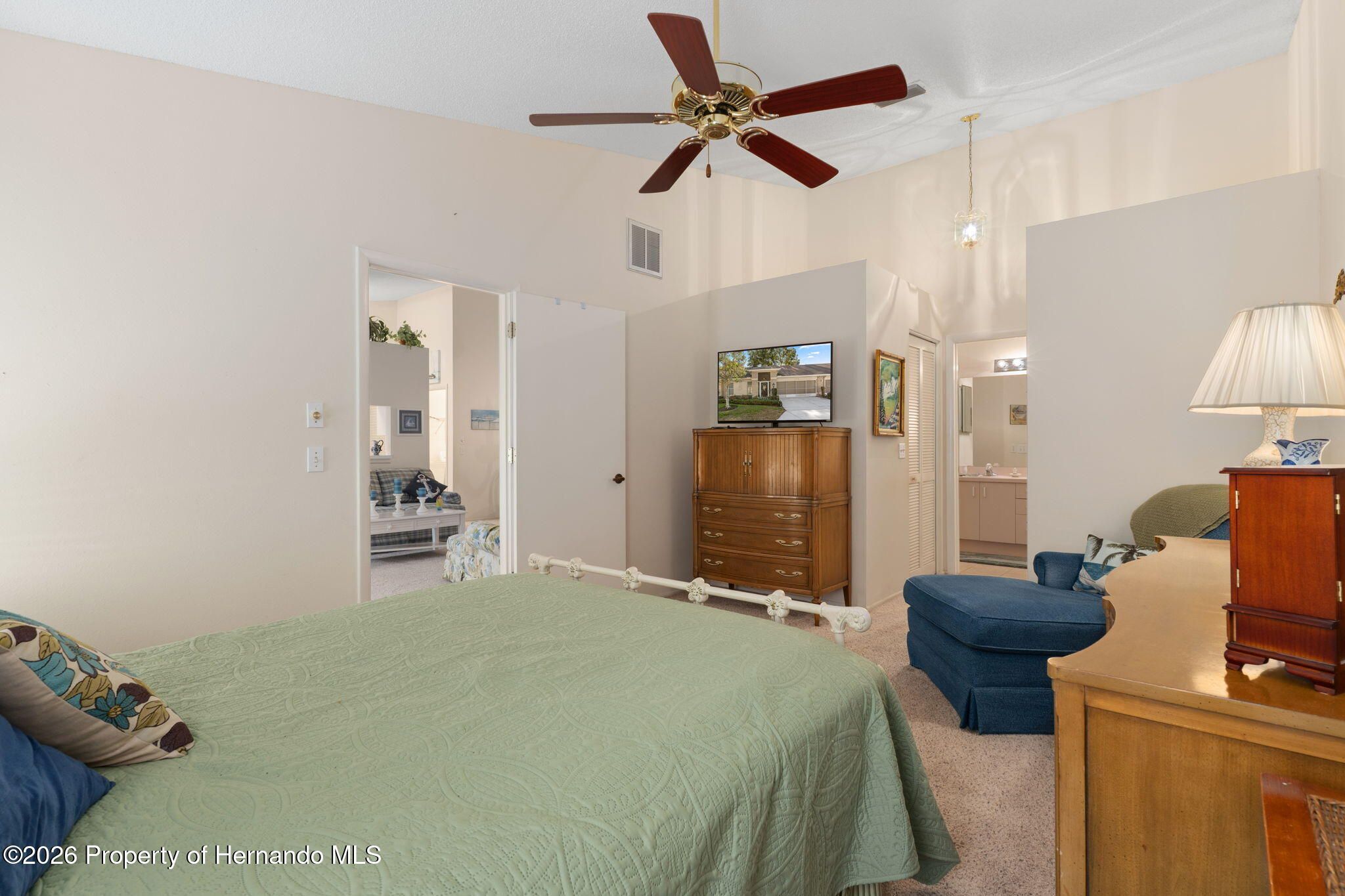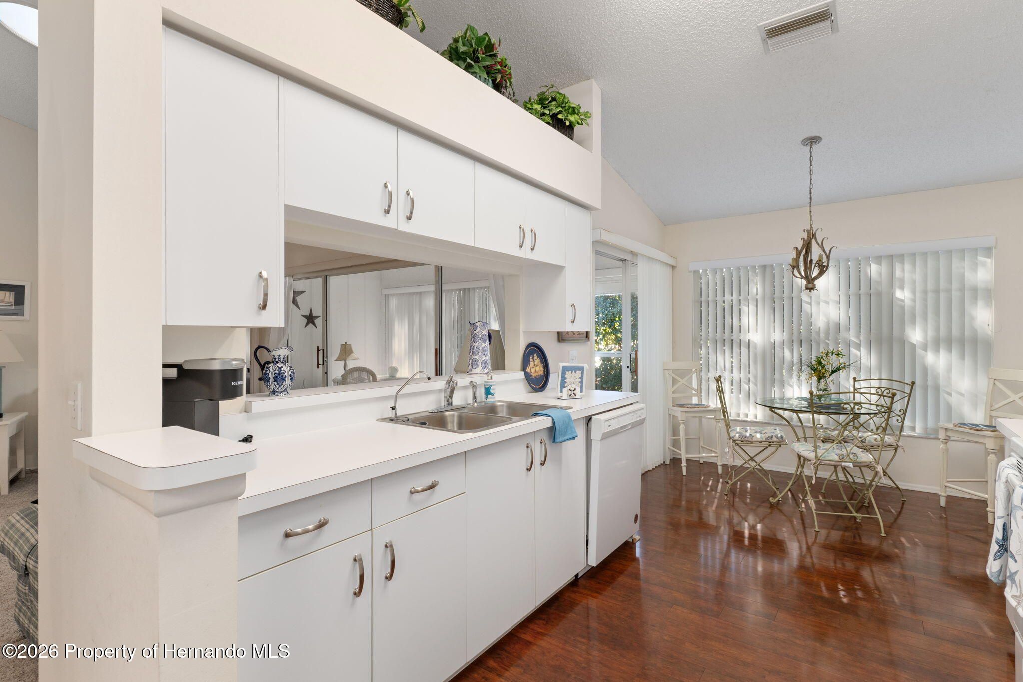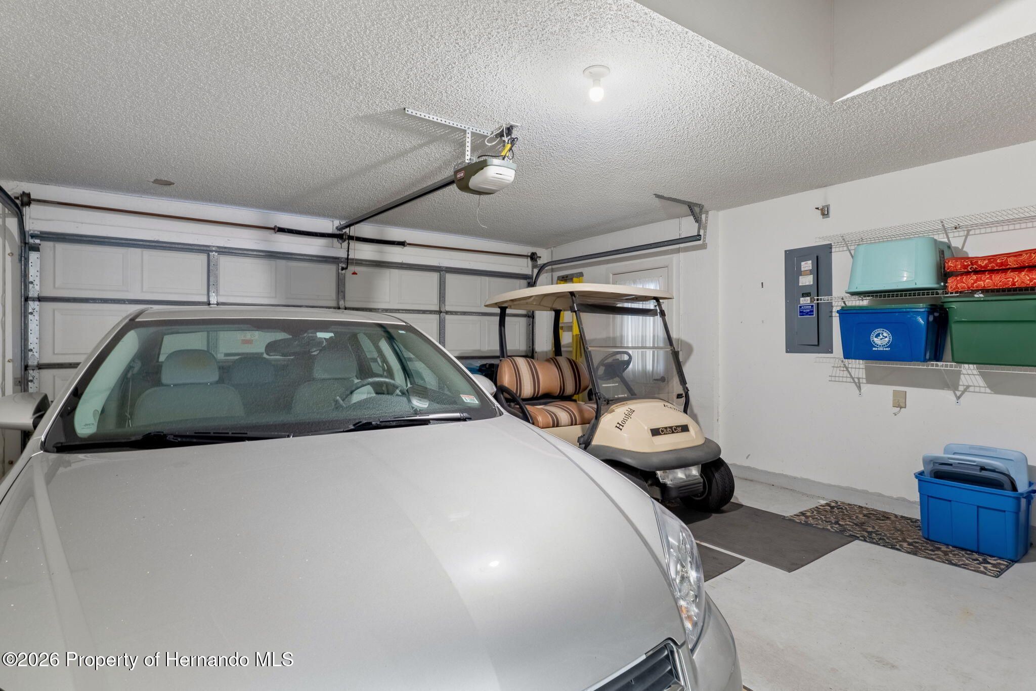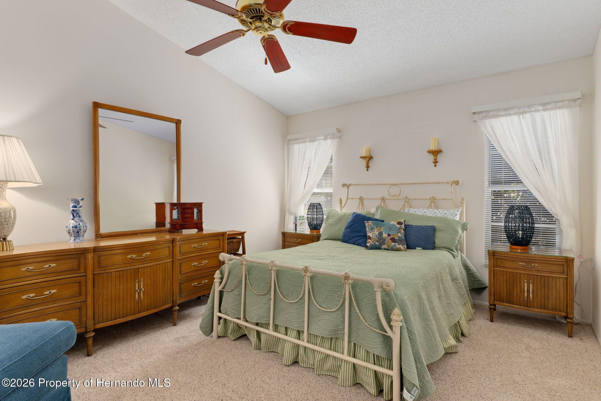 Welcome to effortless living in this delightful 2-bedroom, 2-bathroom villa nestled within the prestigious Timber Pines, an award-winning 55+ golfing community where the lifestyle is as inviting as the greens. This move-in-ready gem offers 1,245 square feet of thoughtfully designed living space, and here's the best part—it comes fully furnished with a golf cart included so that you can hit the links from day one! Even better, Country Ridge Village is pet-friendly and welcomes one dog, so your four-legged companion can enjoy this active lifestyle right alongside you. Step inside and be greeted by soaring vaulted ceilings that create an open, airy atmosphere. Natural light pours through the solar tube in the living room, illuminating the seamless flow between the living and dining areas. The kitchen opens beautifully to these spaces, making entertaining a breeze thanks to its new microwave and stove. The master suite serves as your private retreat, featuring two generous walk-in closets and an ensuite bath with dual vanity, a convenient step-down shower, and its own solar tube for natural brightness. Your guests will appreciate their own comfortable bedroom with charming built-in bookshelves and integrated speakers, plus a full bath with tub-shower combination. The enclosed lanai with acrylic windows transforms into a versatile three-season room, perfect for a cozy home office or morning coffee spot. Step outside to your private backyard oasis, complete with a cement patio and lush privacy bushes. Recent updates provide peace of mind, including a brand-new water heater installed in January 2026, a roof replaced in 2015, and an interior laundry room with a new washer and a newer dryer. The enclosed front porch and screened garage doors add extra comfort and convenience. A one-year home warranty valued at 550 sweetens this already irresistible package. Schedule your private showing today! Priced competitively and located in a desirable area with convenient access to community features, shopping, and recreation, this property is well-suited for buyers seeking comfort and value. You won't be bored with over 100 clubs, a Country Club, a Performing Arts Center, a Wellness Center, golf, bocce, tennis, and pickleball.