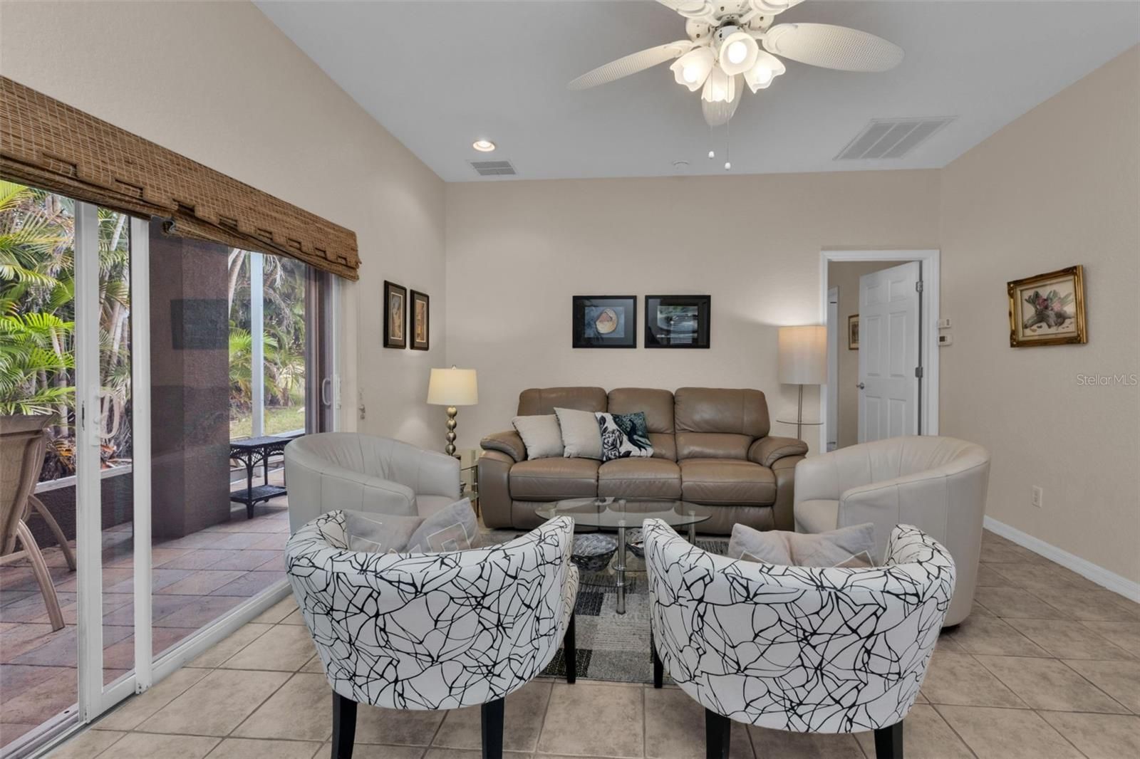 WOW - AWESOME outside relaxation and entertainment spaces in this Buckingham floor plan home in the gated golf course/active resort of highly desirable KINGS GATE, a 55+ community that is NOT in a flood zone and DOES NOT require flood insurance. Screened in entry way large enough to enjoy your morning cup of coffee and large screened in lanai out back with 1/2 of it sheltered and the other 1/2 allowing you to sunbathe as you gaze at the pond. This FULLY FURNISHED and TURNKEY house features 2022 Roof, 2016 AC and 2016 HWH, accordion and roll down hurricane shutters, tile and luxury vinyl plank throughout house (no carpet), kitchen updated with granite, slow close cabinets and SS appliances. Step inside this home and the spacious kitchen to the right with the mulit-purpose den to your left (could be used as 3rd bedroom, dining room, computer room/office or craft room - whatever fits your lifestyle. The large living room interacts perfectly with the kitchen and that AMAZING outdoor lanai. Split floor plan has guest bedroom/bathroom on the left side with the master on the right - offering tremendous privacy for both you and your guests. And if you haven't been to Kings Gate before - you're going to love the options for activity (Olympic size heated swimming pool and spa, tennis courts, pickle ball, lawn bowling, shuffle board, bocce, horseshoes, gym, billiards, library, euchre, bingo, bridge, Texas hold em, poker, mahjong and more). The onsite AND NEWLY REMODELED Lions Den restaurant and bar is super convenient and also offers Tuesday night Karaoke and monthly trivia contests. Many residents love the fact that they are just a golf cart ride away from the shopping plaza that provides you access to grocery store (ALDI), drug store, bank, restaurants and shopping. Want to explore outside of Kings Gate – you are minutes away from the restaurants and shops of downtown Punta Gorda and Fisherman's village. And if you want to explore more of Florida's fun spots you’re near I75 to quickly head north or south. An AWESOME home with tons of updates and entertainment options galore in a PREMIER gated community at this price won't last long. Call today for a private showing and a golf cart tour of the community/amenities.