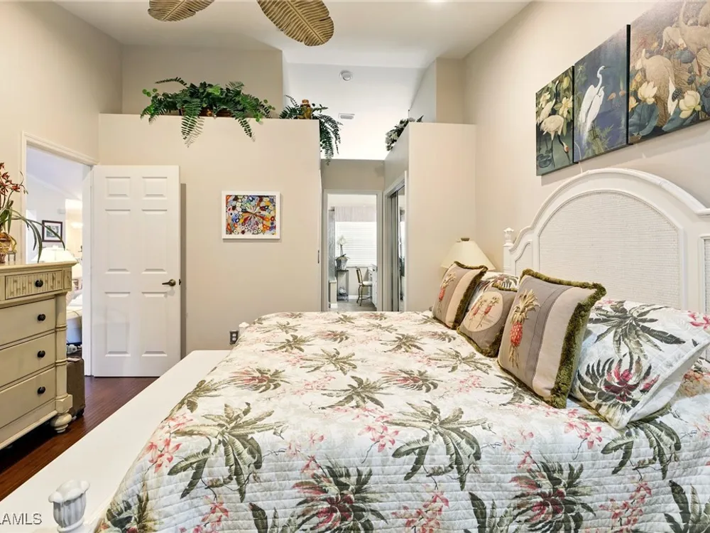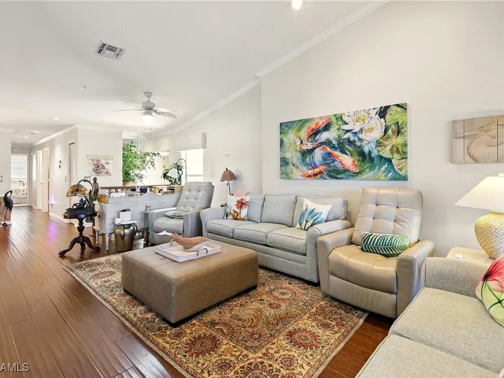 Welcome to 24712 Lakemont Cove Ln! This turnkey 3 bedroom plus den/formal dining room, 2 bath with 1 car garage coach home is located in the heart of Bonita Springs. This was a model unit and offers 1815 sf of living space - the largest floor plan in this highly sought-after community. Natural light fills this gorgeous, remodeled home with hand scraped bamboo flooring and the vaulted ceilings top off the open-concept design with kitchen, living room and den/formal dining flowing seamlessly into one another. Perfect for relaxing or entertaining, the large lanai boasts a premium water view and has access through the master bedroom and gorgeous French doors in the living room (electric hurricane shutters also included). You will love the remodeled kitchen with custom pullout drawers and granite countertops that leads to the kitchen/dining combo with built-in seating with storage. Located across from the large pool, mailboxes, and guest parking you will be in the heart of this resort-style community. Take advantage of the tons of amenities Pelican Landing has to offer! Enjoy the private 34-acre island beach and club accessible by boat shuttle. The nearby community center offers planned social activities, 6 pickleball courts, bocce, fitness center, 12 Har-Tru tennis courts, complimentary canoe/kayaking on Spring Creek and sailing from the community marina on Estero Bay, walking trails, butterfly garden and so much more. For the golf lovers, you have The Nest Golf & Country Club that offers optional membership. With all the dining, shopping and entertainment nearby, WHAT ARE YOU WAITING FOR?? Florida living doesn't get better that this! Make your dream a reality today!