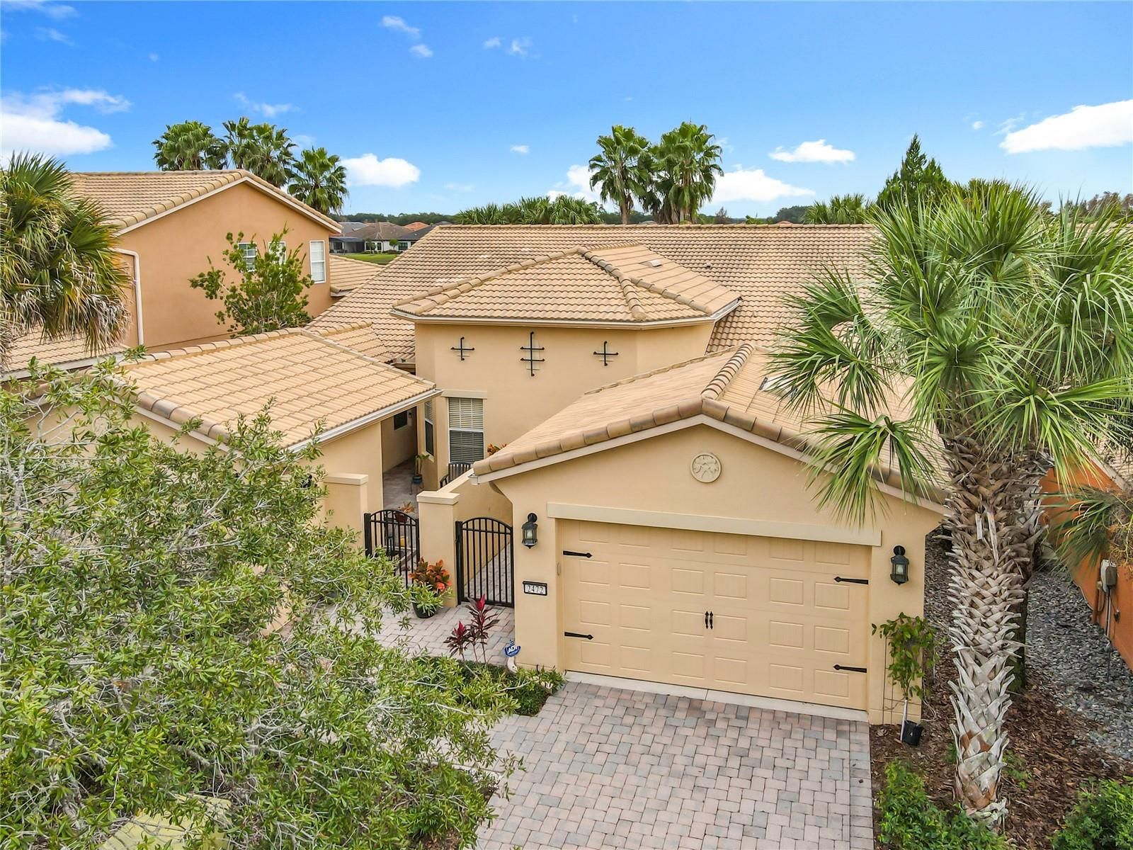 EXQUISITE WATERVIEW VILLA WITH ELEGANT TILE ROOF!!! Experience refined living in this distinguished villa, perfectly positioned within the exclusive COURTYARDS OF MONTELENA. Just moments from the vibrant VILLAGE CENTER, residents enjoy effortless access to premier dining, curated events, and the weekly farmer’s market. The community’s world-class amenity center elevates everyday living with a state-of-the-art FITNESS CENTER FACILITY, RESORT-STYLE POOL, rejuvenating SAUNA and SPA, tennis and pickleball courts, a diamond softball field, playground, two dog parks, and beautifully maintained butterfly and vegetable gardens. Additional luxuries include a grand ballroom, golf shop, and an on-site convenience store with pharmacy services, bringing comfort and sophistication to your doorstep. This elegant CORTINA MODEL HOME features 1,539 square feet of refined interior living space, within a 1,999 square-foot total area designed for effortless, open-concept living. The residence highlights TWO PRIVATE OUTDOOR RETREATS, beginning with a generous FRONT COURTYARD, an inviting sanctuary ideal for savoring Florida’s sunshine, dining alfresco, entertaining, or cultivating your own garden oasis and a WATERVIEW SCREENED LANAI!!! Thoughtful upgrades enhance comfort and wellness, including a WATER SOFTENER SYSTEM and an HVAC UV germicidal lamp to support superior indoor air quality. Exterior maintenance is made worry-free, with annual roof and exterior power washing and professional exterior painting every seven years, all included as part of your HOA services. An inviting interior highlights TWO bedrooms, TWO full bathrooms, and a versatile FLEX ROOM thoughtfully converted into a third bedroom. The open layout is beautifully complemented by tile flooring throughout. The open-concept kitchen seamlessly connects to the expansive 28' x 14' great room, creating an ideal setting for both everyday living and effortless entertaining. The GOURMET KITCHEN makes a striking impression with its CORIAN countertops, STAINLESS STEEL appliances, 42-inch cabinetry, recessed lighting, and a BREAKFAST BAR. The OWNER'S SUITE captures tranquil WATER VIEWS and features a generous WALK-IN CLOSET along with a beautifully appointed EN-SUITE BATH, complete with DUAL SINKS, a GLASS-ENCLOSED WALK-IN SHOWER, a linen closet, and a private water closet. A well-designed SPLIT FLOOR PLAN provides exceptional privacy between the owner’s suite and the guest bedroom. The expansive great room opens to a screened and covered lanai with serene water views, an ideal setting for peaceful outdoor living and enhanced privacy. Completing the home is a spacious garage accommodating one car plus a golf cart bay, enhanced by OVERHEAD STORAGE SHELVING and complemented by an expansive driveway. 55+ Gated Golf Community of Solivita offers an impressive array of amenities, two PGA 18-holes Championship golf courses, two State of the Art Amenity Centers, fourteen pools, restaurants, tennis court, playground, dog park, and over two hundred different clubs. Near supermarkets, restaurants, pharmacies, hospital, new express way, just 25 minutes to major attractions, and the new Sun Rail Poinciana Station. If you are interested in the property, it is a clever idea to schedule a video virtual showing or arrange for a private showing to see it in person. A physical tour can provide a better sense of the space, layout, and overall feel of the property.
