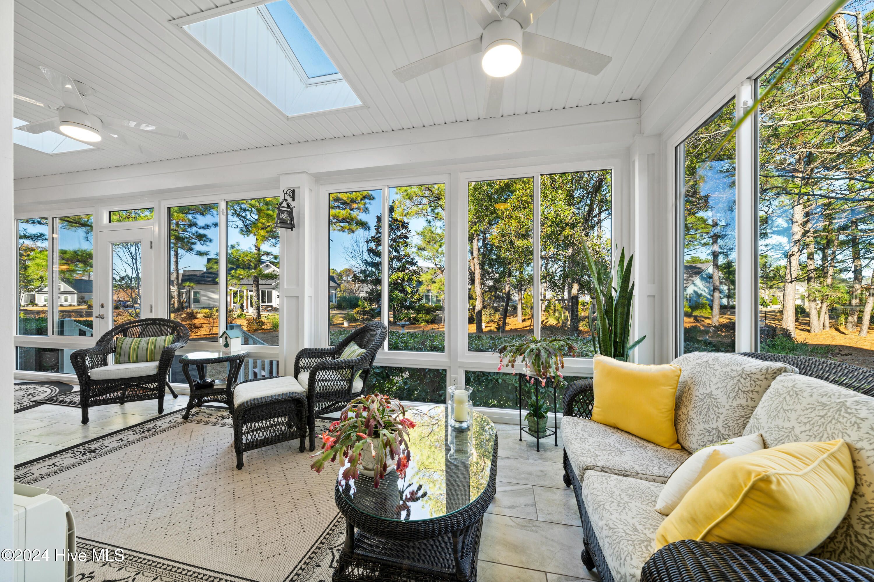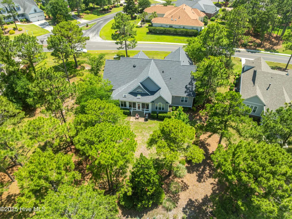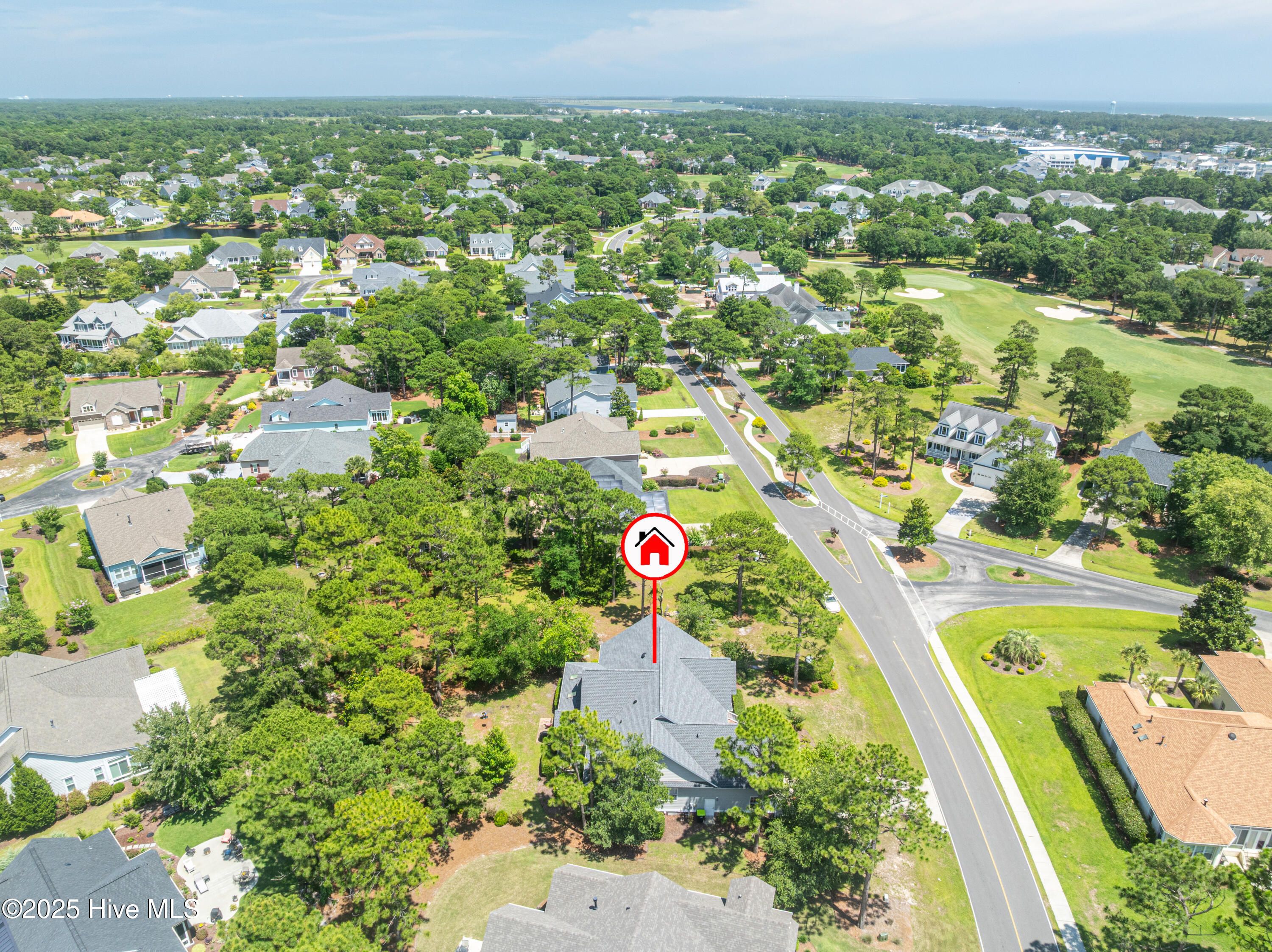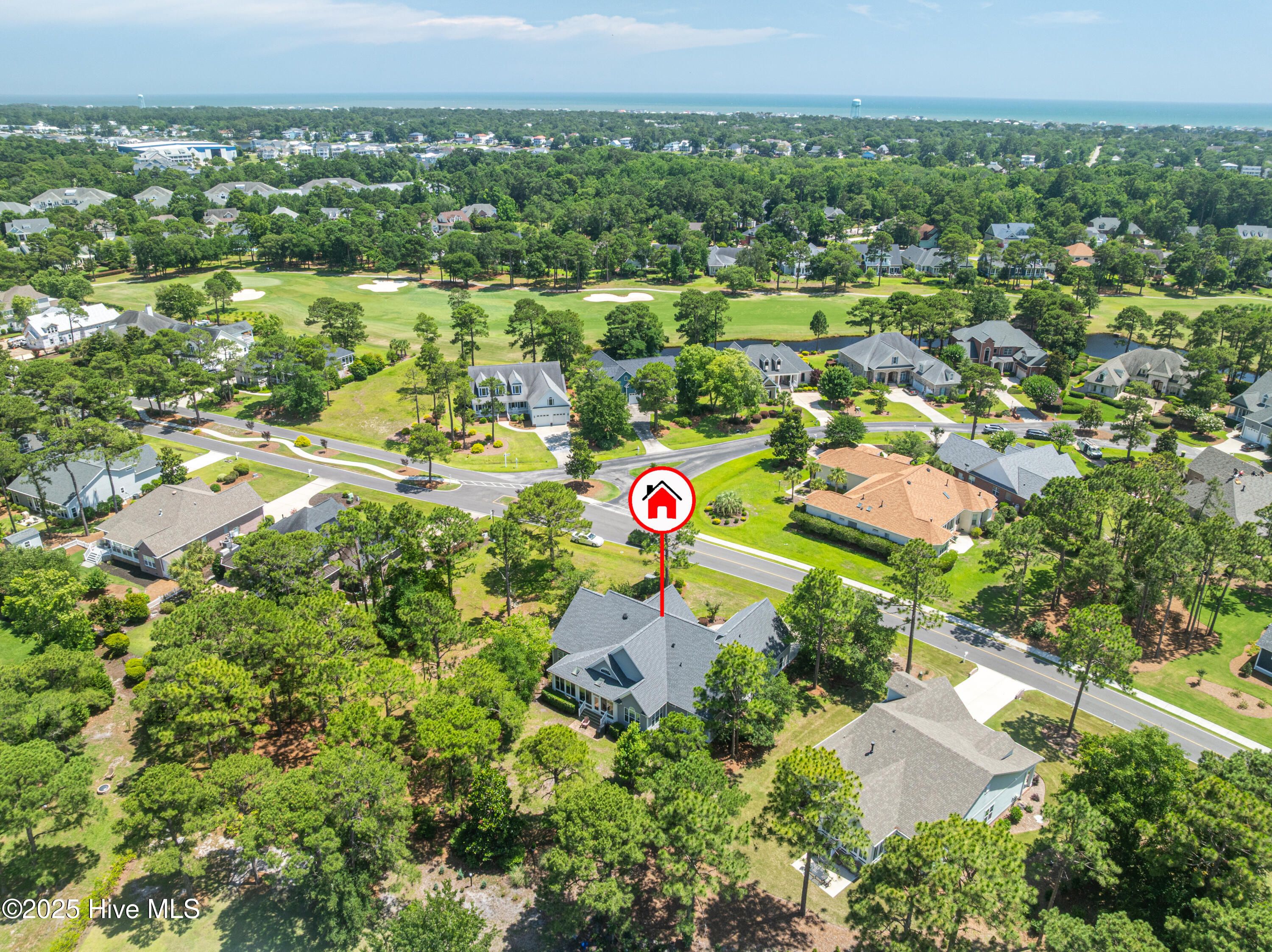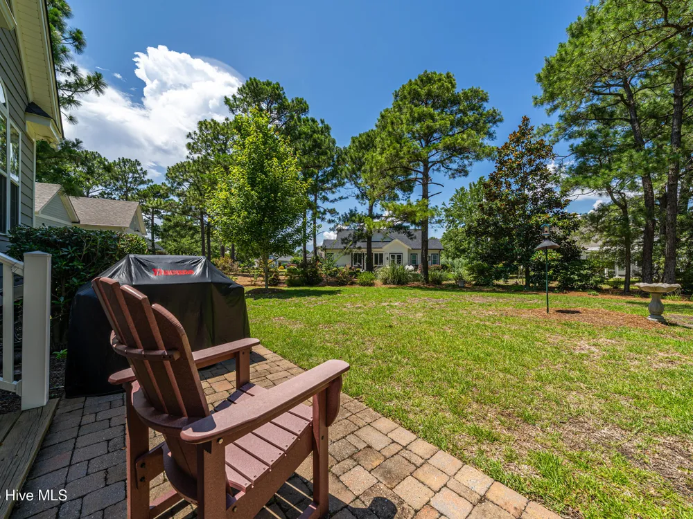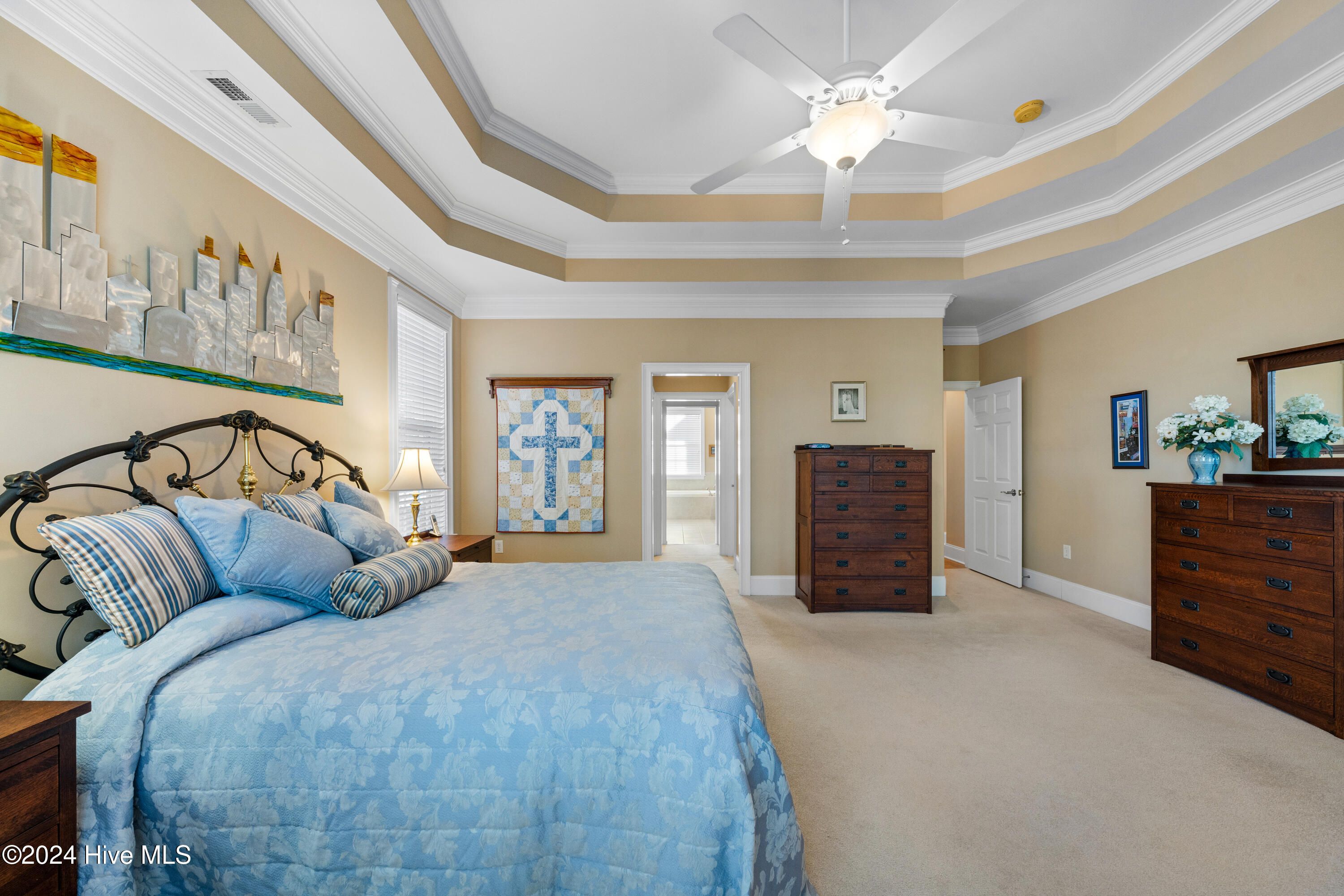 This beautiful custom built home boasts an attractive curb appeal that exudes timeless charm and character. The excellent location puts you just minutes away from the full-scale St. James marina, waterway park a 10-acre outdoor area located on the Intracoastal waterway, and minutes away from The Grove entrance. Brick pillars frame the entrance to a stamped concrete driveway, setting a warm and welcoming tone. The exterior showcases a harmonious blend of multiple rooflines (new roof installed 2024), elegant brickwork, and durable cement composite siding. A rocking chair front porch, accented by graceful arched transom windows, invites you to relax. Spanning over 3,500 heated square feet, the residence offers three spacious bedrooms and three and a half bathrooms, making it the perfect blend of comfort and sophistication. The entryway is a showcase of elegant and thoughtful design, featuring gorgeous hardwood flooring. Crown molding and custom wainscoted columns frame the formal dining room, which is further distinguished by an octagon-shaped tray ceiling and a striking wood inlay border that adds intricate detail to the floor. The space flows seamlessly into the great room, where a vaulted ceiling and a cozy gas fireplace create a warm and inviting ambiance. Custom recessed built-ins add both functionality and charm, while natural light warms the room through atrium doors crowned with a graceful half-moon transom window. These doors lead to a tiled sunroom with skylights, offering peaceful views of the beautifully landscaped backyard, complete with a paver patio for outdoor relaxation and entertaining. The spacious kitchen features wood cabinetry, stainless steel appliances, black granite counters, a built-in wine rack, and a tumbled stone backsplash. Bar-height seating at the peninsula opens to the breakfast nook, which boasts a vaulted ceiling, custom wainscoting, and picturesque backyard views. The owner's suite is tucked away for maximum privacy and features a