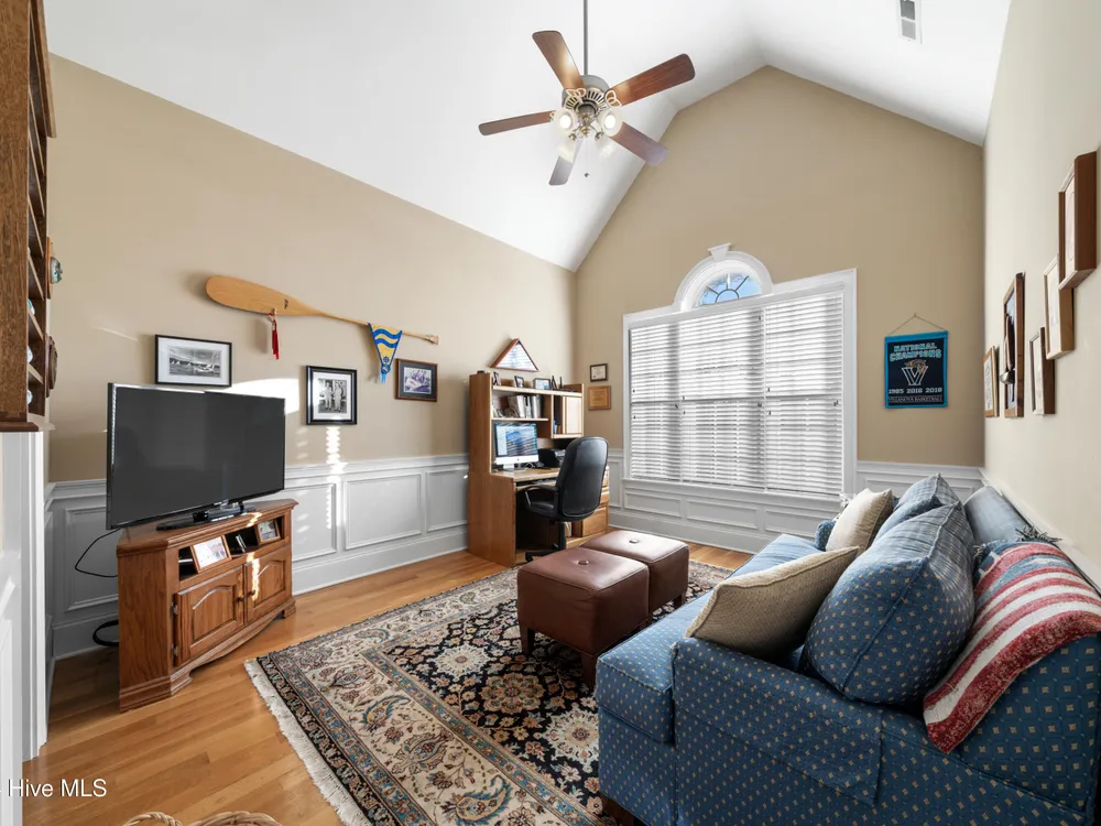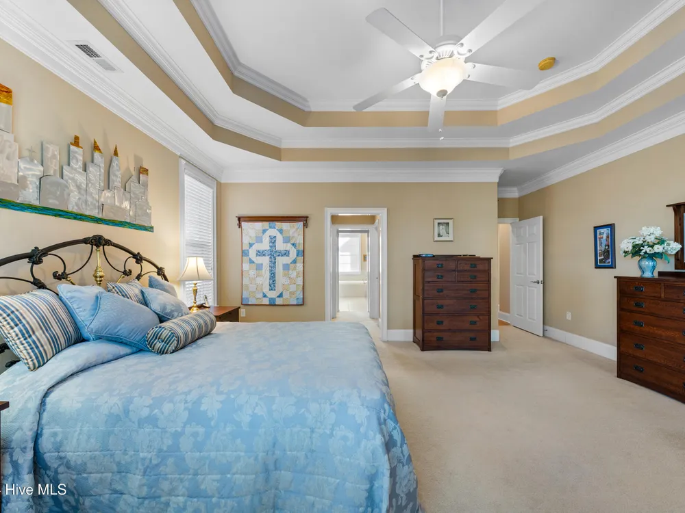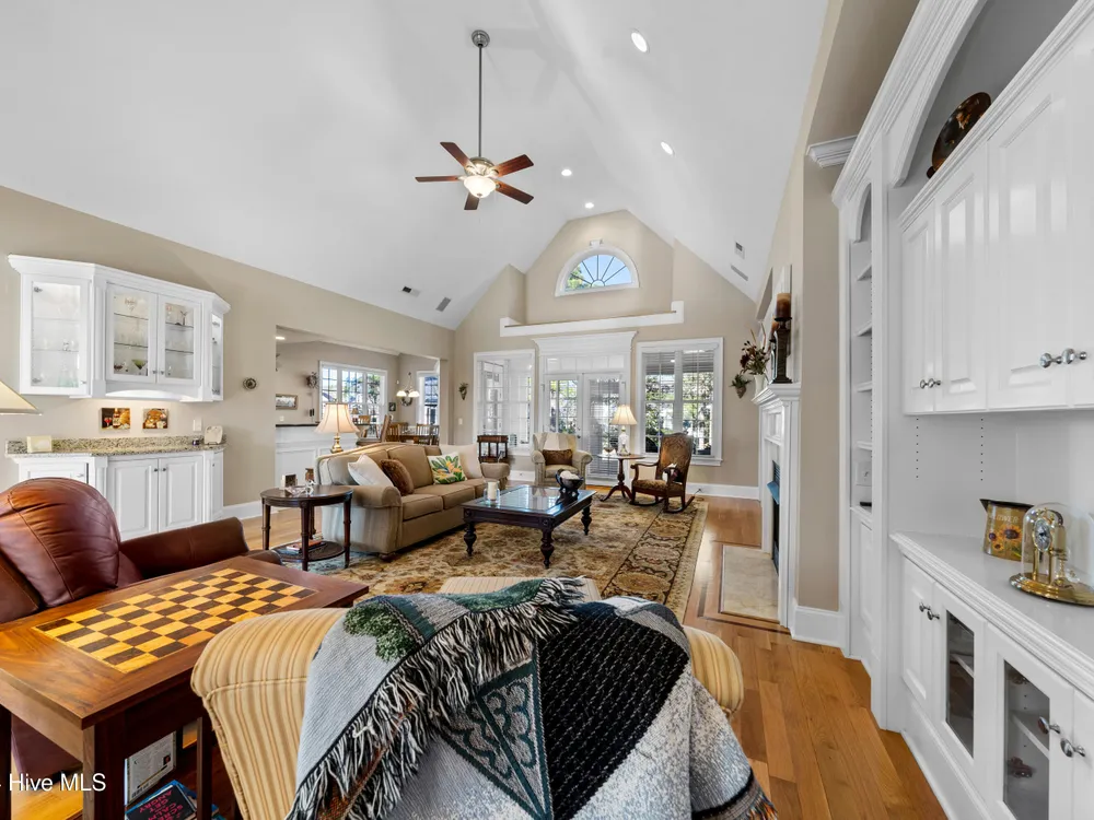 - Bookcases, Tray Ceiling(s), Walk-In Closet(s), Walk-in Shower, Vaulted Ceiling(s), High Ceilings, Master Downstairs, Ceiling Fan(s)