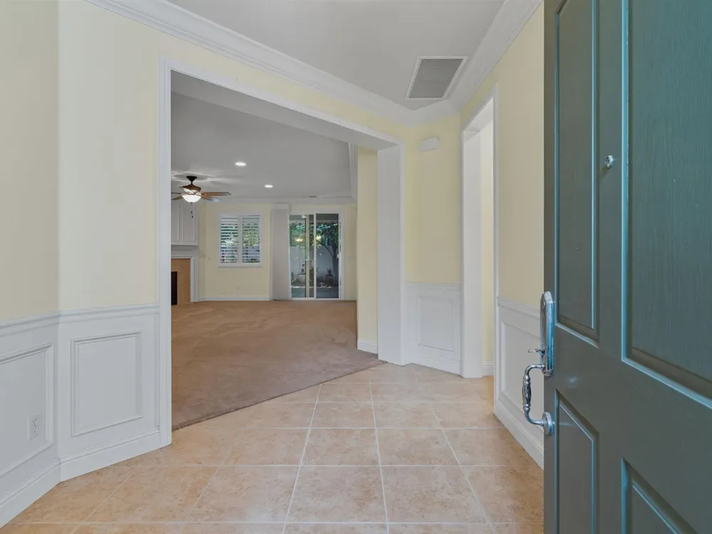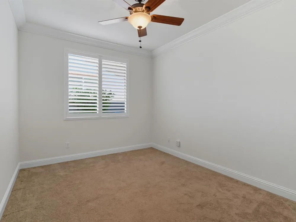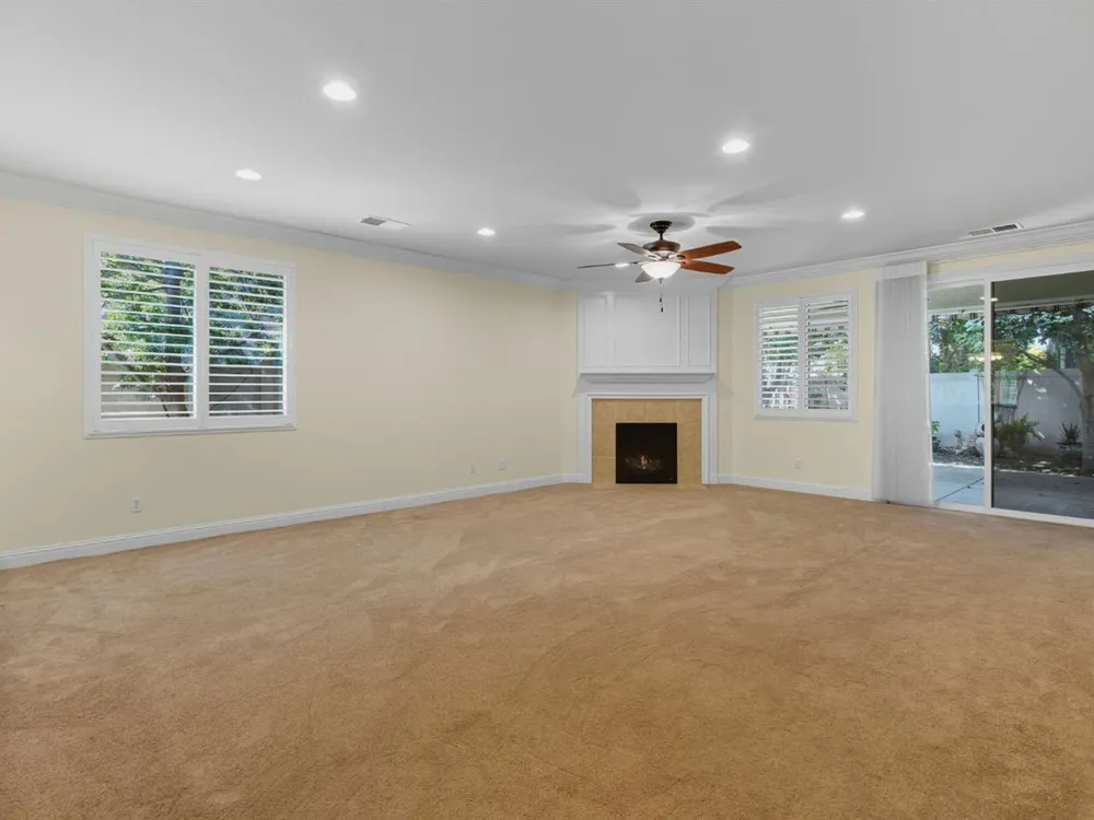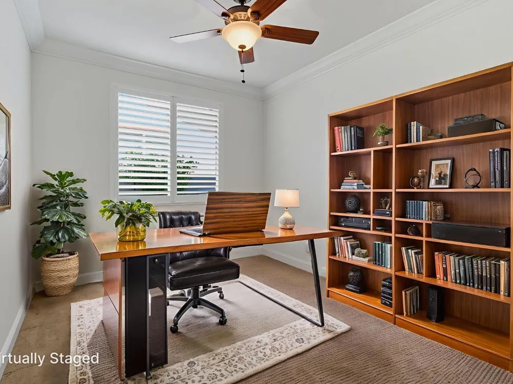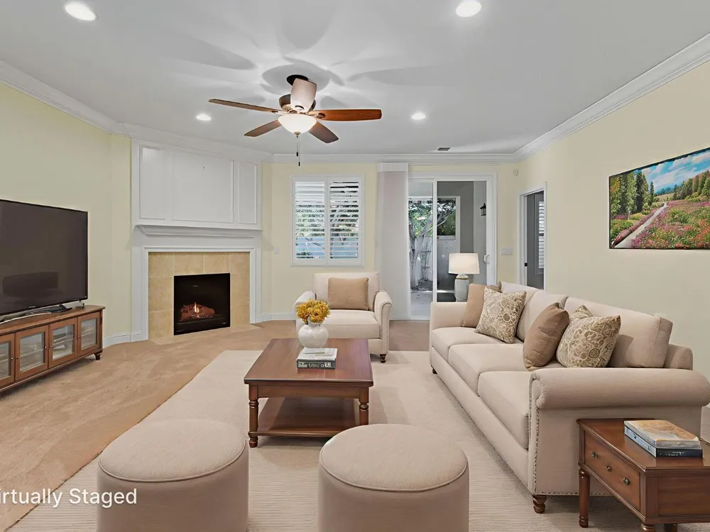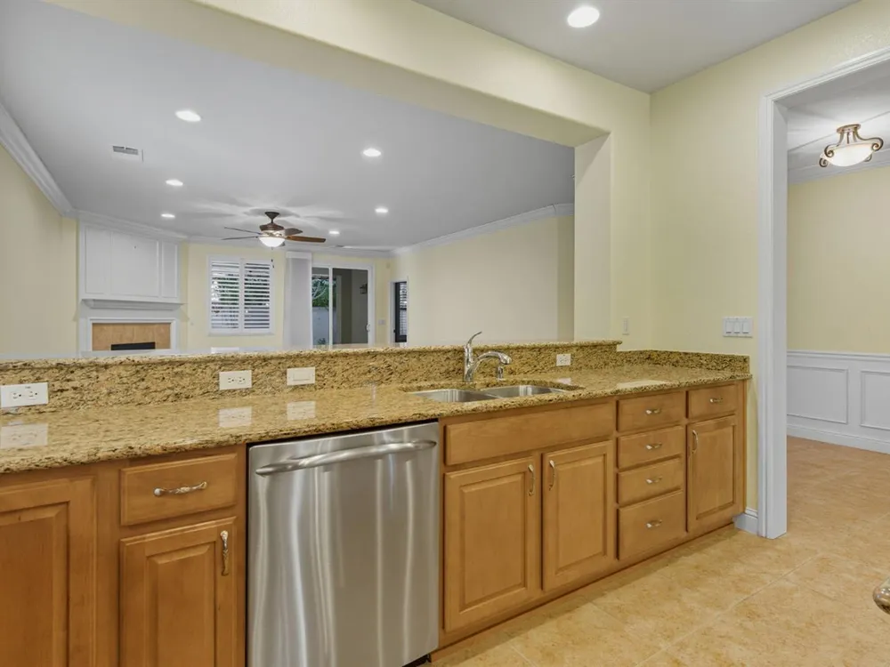 Are you ready to enjoy life in this exclusive 55+ Del Webb community? Start your journey in this 2-bed, 2-bath & DEN.. beautifully cared for home. Start in the chef's delightful kitchen with stainless steel appliances, including the refrigerator, granite counter tops, pull-out drawers and ample pantry. Entertaining is easy with the open flow of kitchen, dining areas, and spacious great room with a cozy fireplace. Other features include plantation shutters, crown molding and ceiling fans throughout, a no-lip large shower in the primary bath, whole house fan, a water softener, and a tankless water heater. The inside laundry area includes plenty of cupboards and a sink. Stay cool in the backyard with shaded trees. Extra bonuses are the gutter leaf guards and lots of nice cabinets in the garage. Have fun at the state-of-art community center with indoor and outdoor pools, spas, gym, room for crafts and other events such as pickle ball courts, a baseball field and so much more. It is worth the trip to come check it out. All bedrooms, den and primary bath have been freshly painted! This home is virtually staged.