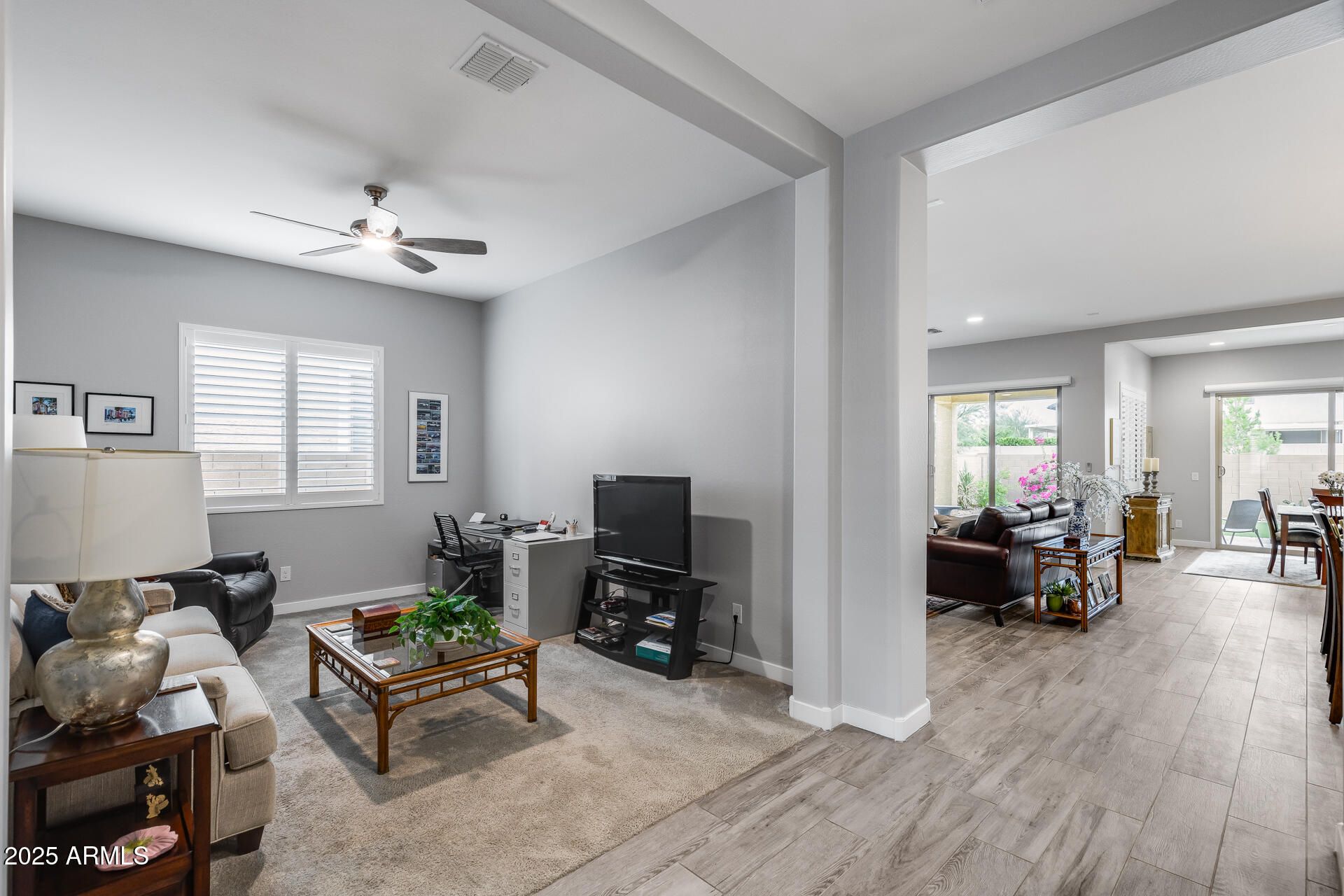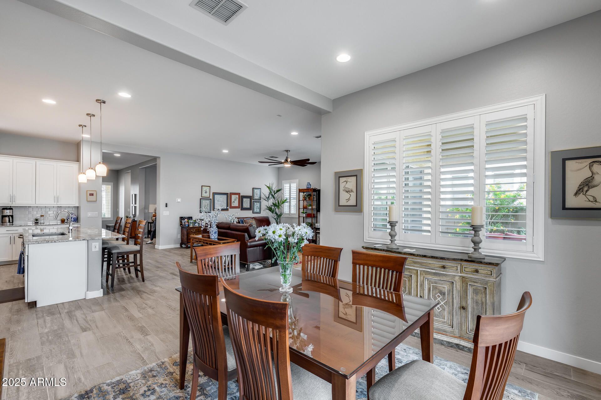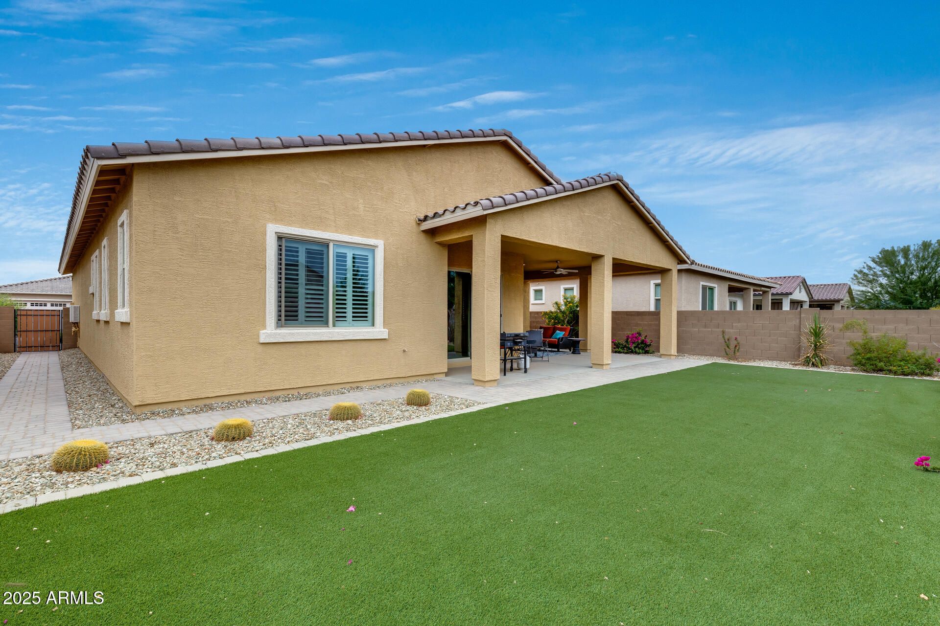 SPECIAL LENDER FINANCING AT 4.99%! // Enjoy resort-style living in this beautifully upgraded 2-bedroom, 2-bath home with a den, perfectly situated in an exclusive gated adult community. Spanning 2,072 sq. ft., this home offers the ideal balance of comfort, sophistication, and modern convenience. Step inside to find plantation shutters throughout, upgraded 34'' x 8½'' tile wood-plank flooring, and remote-control window coverings at the sliding glass door for ease and elegance. The chef's kitchen is designed to impress, featuring upgraded Frigidaire appliances, built-in gas cooking, granite countertops, a spacious island, and a walk-in pantry—perfect for entertaining or casual everyday meals. Relax in the luxurious primary suite, complete with a custom-designed walk-in closet, while the private backyard offers synthetic turf and a stylish paver patioa serene retreat for morning coffee or evening gatherings. Residents enjoy a vibrant lifestyle with access to resort-style amenities, including a clubhouse, spa, fitness center, walking paths, and more. Whether you're staying active or simply savoring the peaceful surroundings, this stunning home invites you to live your best life in comfort and style.