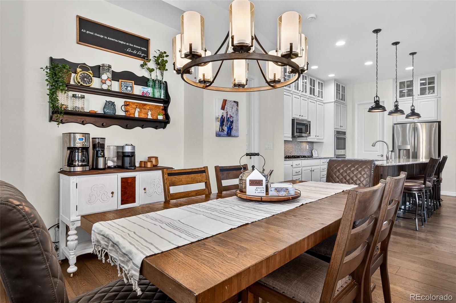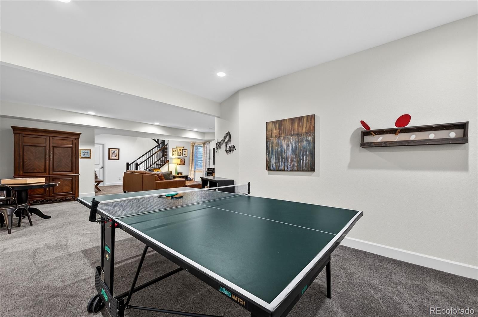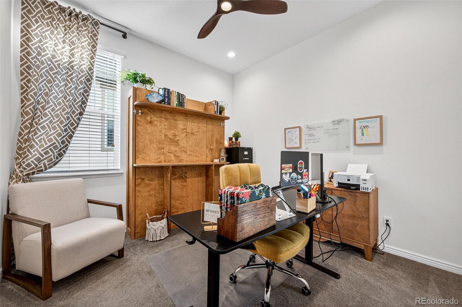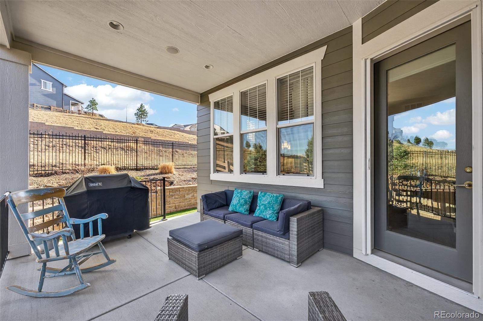Ssshhh… Your neighbors will be jealous to know your electric utility cost from day one can be 73% less! This home comes with a fully paid-off solar system which produced a savings $1759 for the 2025 calendar year! This masterfully updated ranch-style home is designed for the modern entertainer, the open-concept main floor features soaring high ceilings and rich engineered hardwood flooring throughout. The gourmet kitchen is a chef’s dream, anchored by gleaming granite countertops, custom deluxe cabinetry with dovetail joints, soft-close hinges, under-cabinet lighting, and convenient pull-outs ensure a seamless culinary experience. From the kitchen step through the retractable screen door to your covered back patio—an idyllic sanctuary for morning coffee or sunset wine while overlooking the greenbelt. Inside, the great room centers around a stunning custom gas fireplace, creating a warm and sophisticated focal point for gatherings. The Owner's Retreat is functional with a spacious ensuite bathroom featuring custom tile work in an oversized shower, flowing directly into a generous walk-in closet. For ultimate convenience, the closet connects directly to the laundry room, which is fully equipped with a utility sink. A second bedroom currently serves as a refined home office, complete with a built-in Murphy bed for guests. Stay organized with a dedicated mudroom featuring quartz-topped bench seating and ample storage. The basement offers a large family & game room, a third large bedroom, and a clever walk-in storage closet currently utilized as a second office. An unfinished gym area provides endless storage or fitness potential. This home is move-in ready with a security system pre-wire, a hot water recirculation system for instant comfort, and built-in speakers in the great room and patio. Located just minutes from the hospital, dining, coffee shops, and boutiques of Downtown Castle Rock, this is a lifestyle opportunity you don't want to miss.