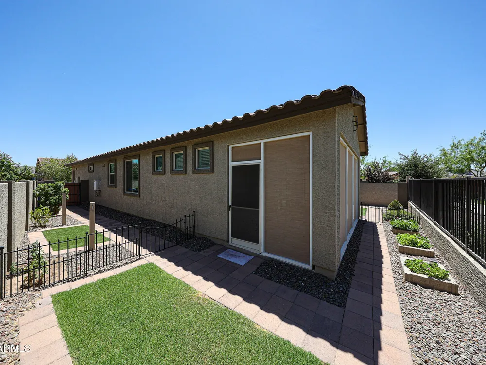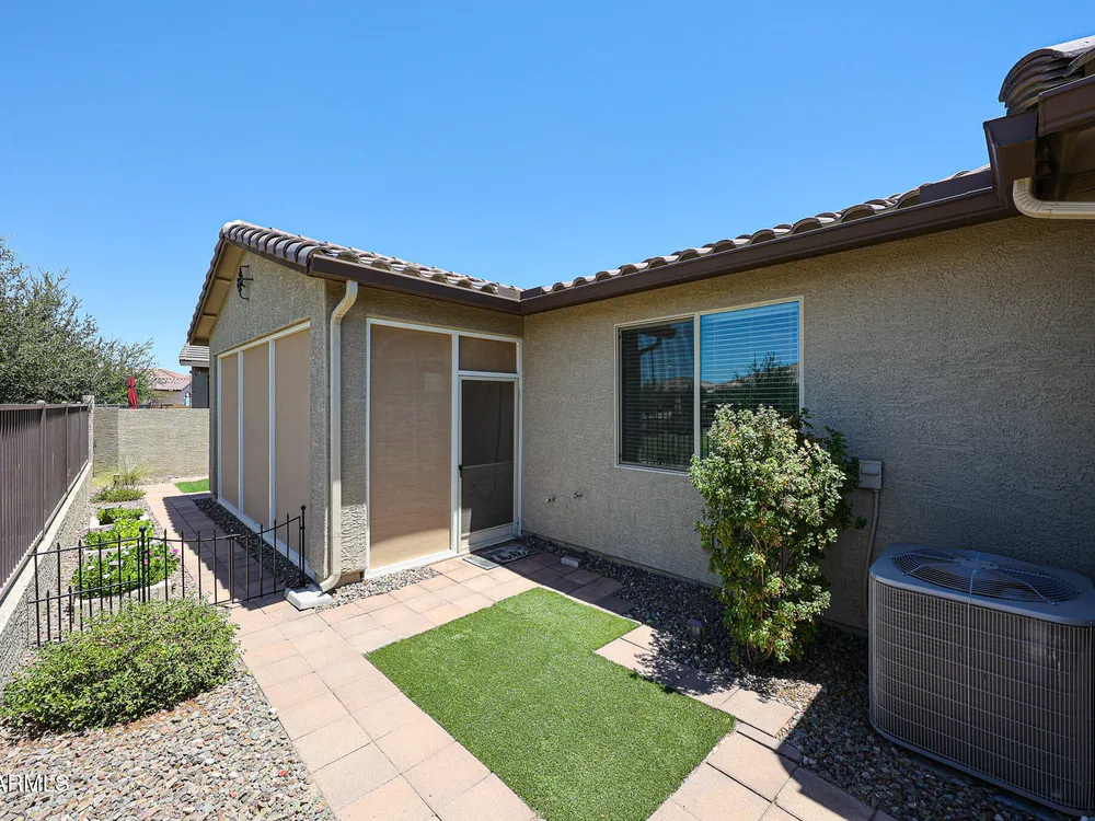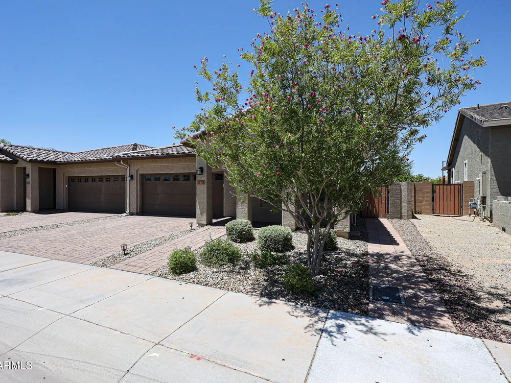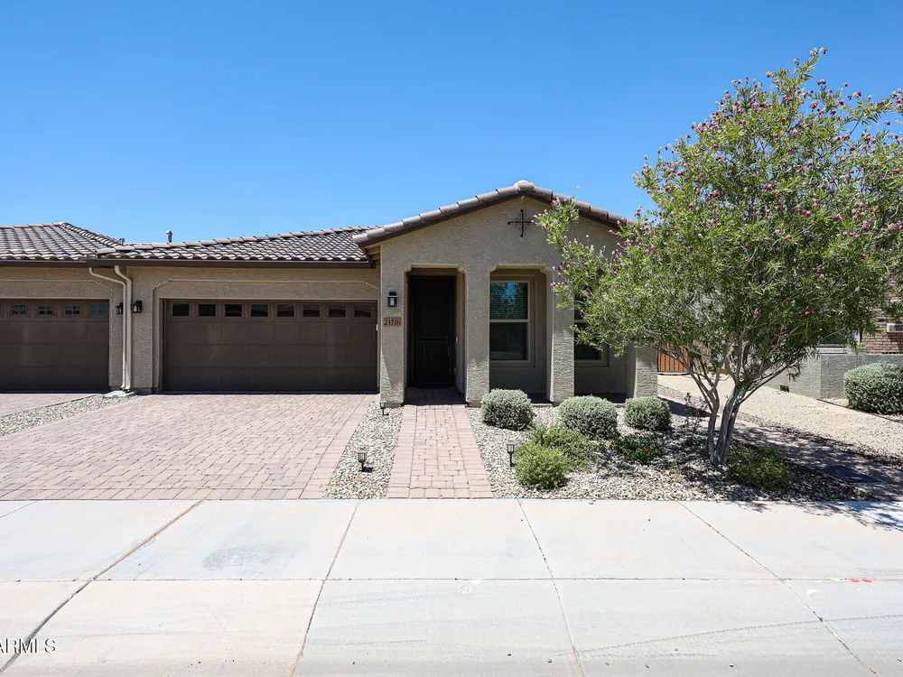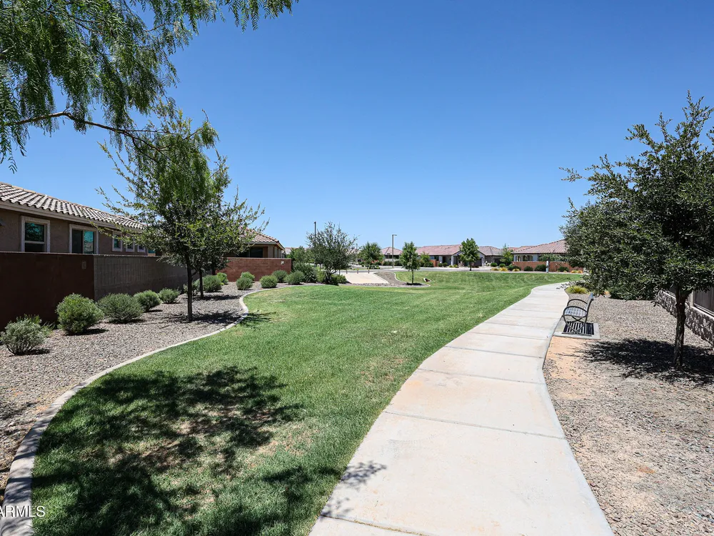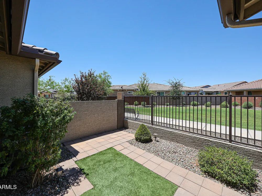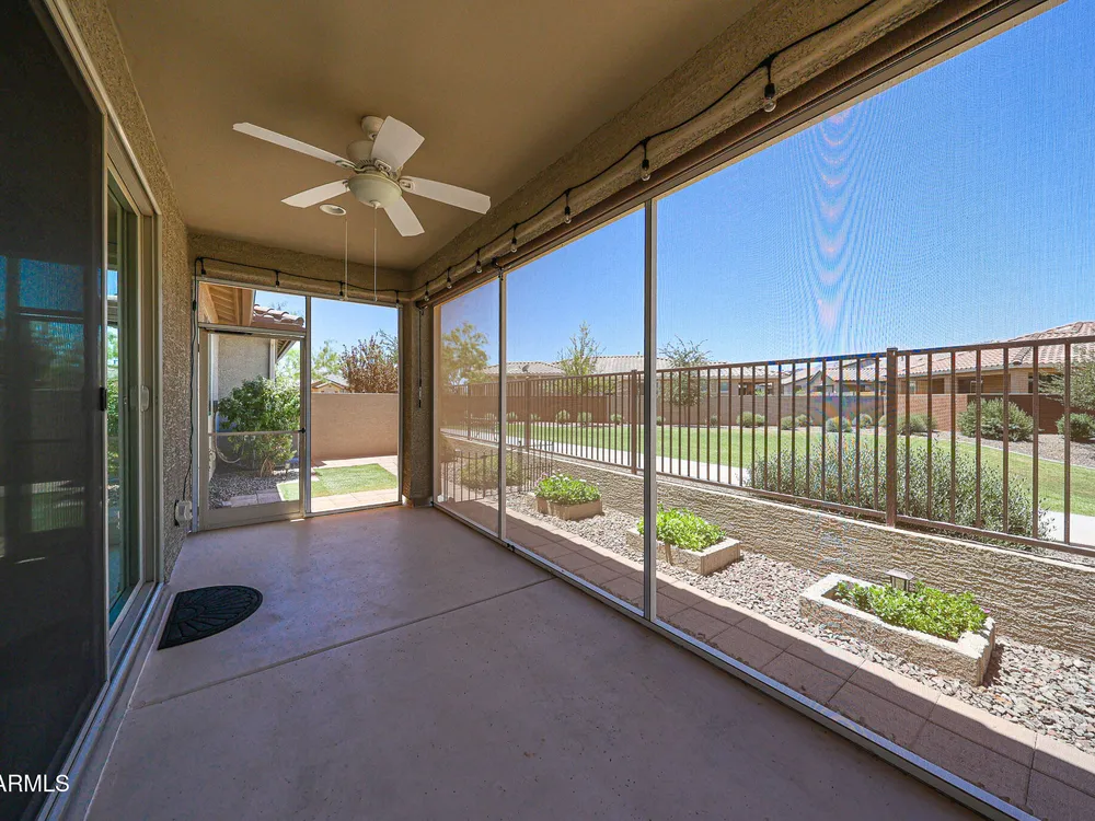 Here it is! Your new winter retreat!! Beat the freezing winter temps and enjoy you new well appointed winter home with so much to offer!! This home is the perfect lock and leave winter treat with low maintenance back yard and HOA maintained front yard. Located in the beautiful gated community of Heritage at Asante with 7 acres of lake, walking paths, a resort style heated pool, fire pits, fitness center, 12 lighted pickleball courts, 3 lighted Bocce courts and Heritage links a 9 hole putting course. Stepping inside this bright and spacious home you will find large open great room with den/dinning alcove. Spacious kitchen with 42'' cabinets for extra storage, stunning granite counter tops, stainless appliances, including gas range, fridge, dishwasher and microwave. .. more Walk in Pantry / Laundry conveniently located off kitchen. Spacious owners suite with spa like bath featuring dual sinks, make up vanity, oversized walk in closet, tiled step in shower and private toilet room. Bedroom two is split floor plan located at the front of the home, perfect for guest room or home office. Bath 2 nicely appointed with granite counters and Bath tub. Enjoy the beautiful AZ sunsets from your screened in Patio with open views of the the lush green belt area behind the home. Backyard easy maintenance turf, brick pavers and finished stucco walls exterior. Front of home, beautiful curb appeal with paver drive and walk ways. 2 car garage with epoxy flooring and storage shelves.
