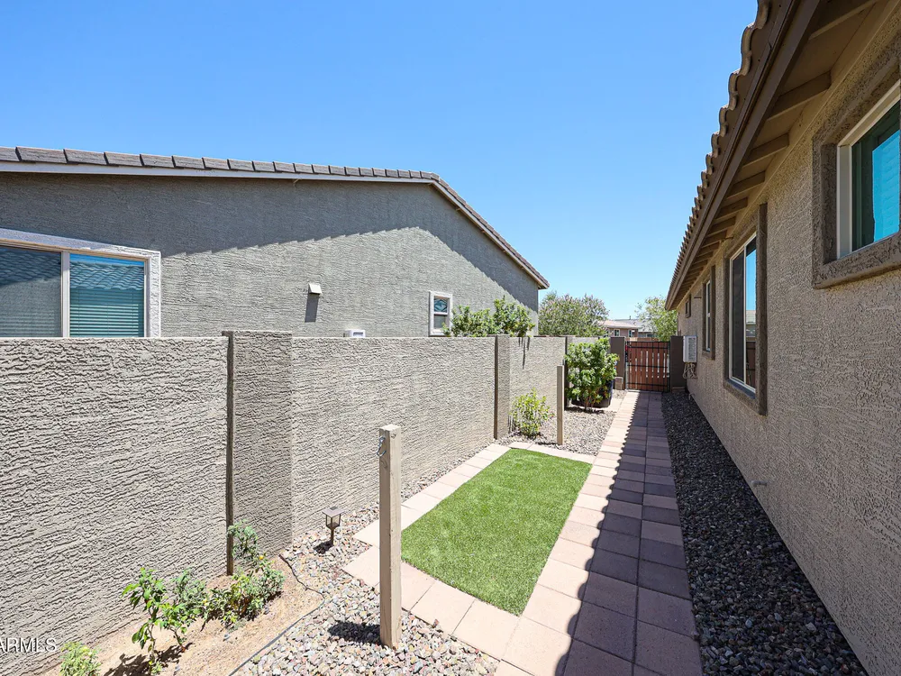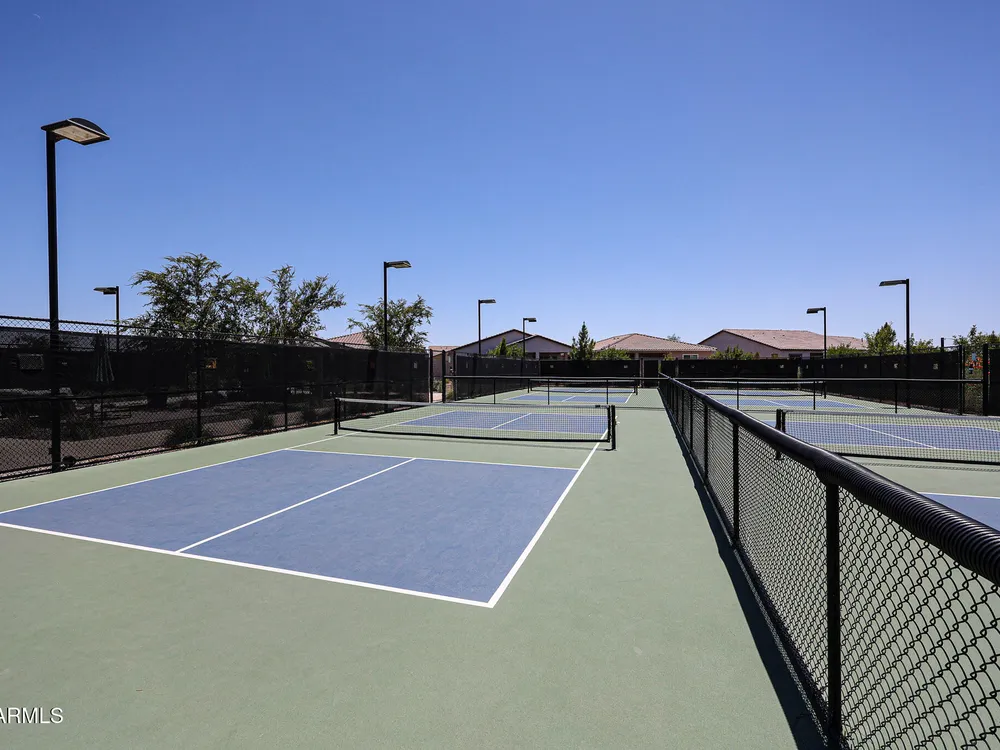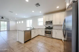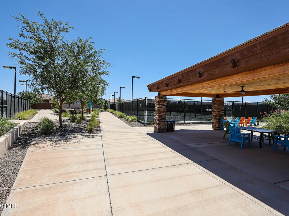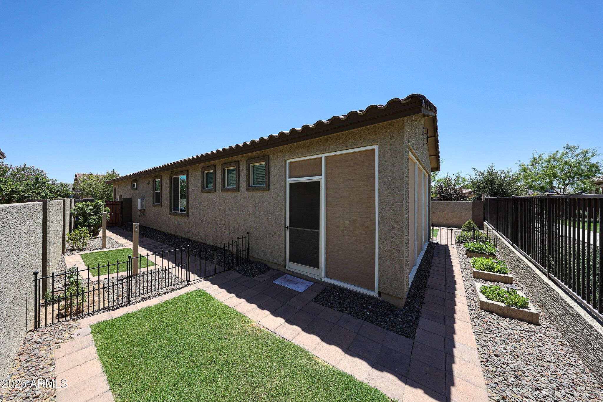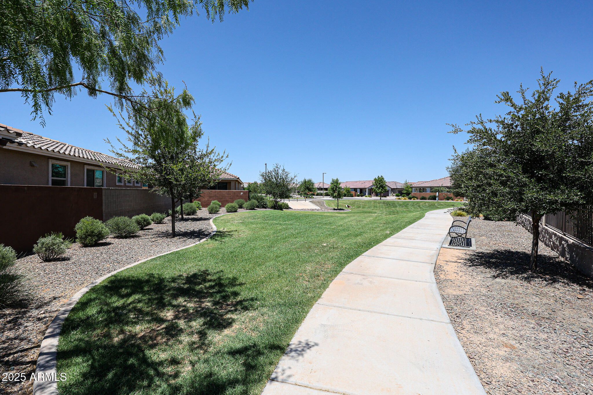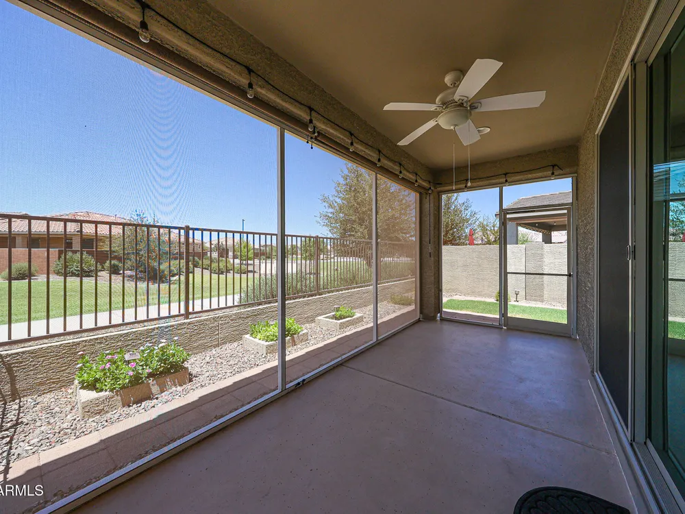 Here it is! Your new winter retreat!! Beat the freezing winter temps and enjoy you new well appointed winter home with so much to offer!! This home is the perfect lock and leave winter treat with low maintenance back yard and HOA maintained front yard. Located in the beautiful gated community of Heritage at Asante with 7 acres of lake, walking paths, a resort style heated pool, fire pits, fitness center, 12 lighted pickleball courts, 3 lighted Bocce courts and Heritage links a 9 hole putting course. Stepping inside this bright and spacious home you will find large open great room with den/dinning alcove. Spacious kitchen with 42'' cabinets for extra storage, stunning granite counter tops, stainless appliances, including gas range, fridge, dishwasher and microwave. .. more Walk in Pantry / Laundry conveniently located off kitchen. Spacious owners suite with spa like bath featuring dual sinks, make up vanity, oversized walk in closet, tiled step in shower and private toilet room. Bedroom two is split floor plan located at the front of the home, perfect for guest room or home office. Bath 2 nicely appointed with granite counters and Bath tub. Enjoy the beautiful AZ sunsets from your screened in Patio with open views of the the lush green belt area behind the home. Backyard easy maintenance turf, brick pavers and finished stucco walls exterior. Front of home, beautiful curb appeal with paver drive and walk ways. 2 car garage with epoxy flooring and storage shelves.