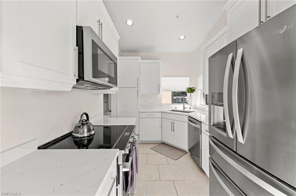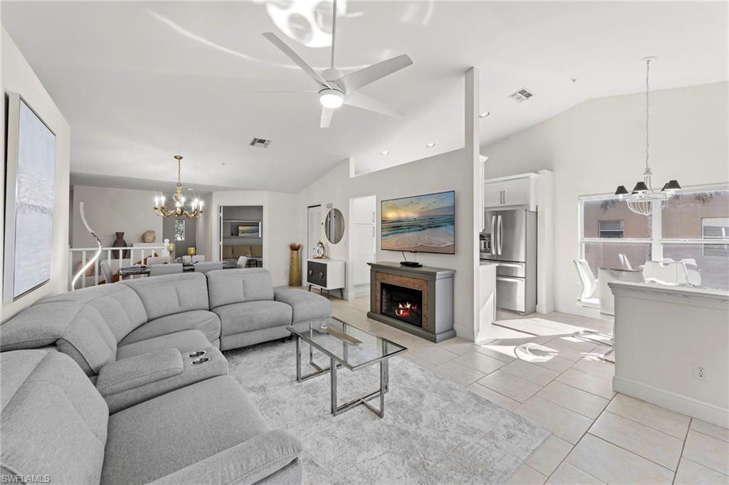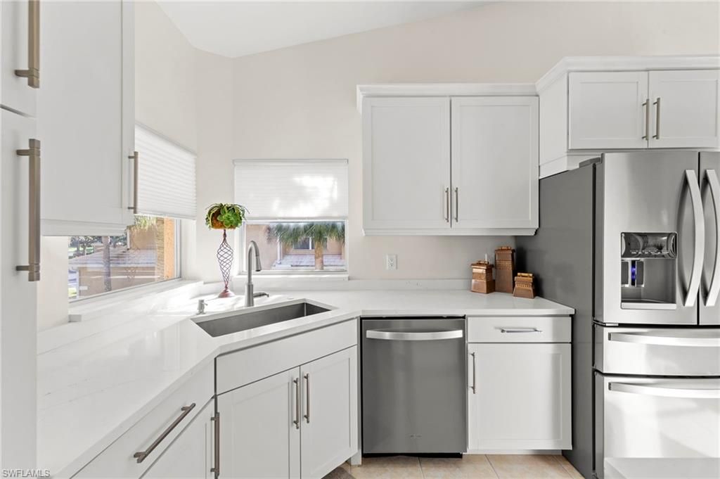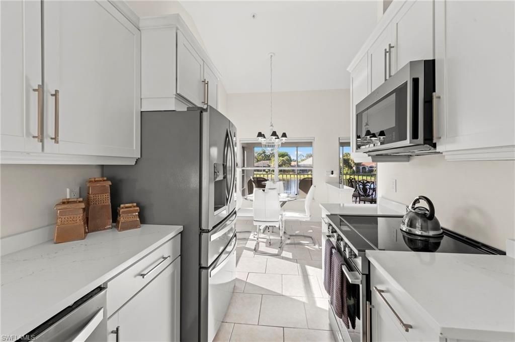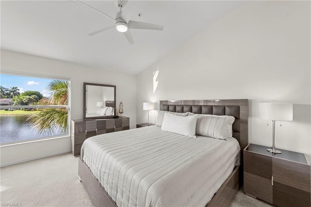 Welcome to this beautifully updated 3-bedroom, 2-bathroom lake view coach home with an attached 1-car garage, located in the charming Lakemont Cove neighborhood of Pelican Landing. This stylish residence has been transformed with designer-grade upgrades, including a modern kitchen with quartz countertops, soft-close cabinetry, stainless steel appliances, and sophisticated lighting and fixtures throughout. Vaulted ceilings and an open-concept layout create a bright, airy ambiance, while the screened lanai offers tranquil views of the lake—perfect for relaxing or entertaining. The spacious primary suite features serene water views, a beautifully remodeled en-suite bathroom, and generous closet space, making it a true retreat.Pelican Landing offers an unparalleled lifestyle with resort-style amenities, including a private 34-acre island beach park accessible by boat shuttle, a full-service fitness center, tennis and pickleball courts, and complimentary kayaking and sailing from the community’s marina. Golf enthusiasts can enjoy optional membership at the private, 36-hole Golf Club "The Nest". Just minutes from your door, you'll find the best of Southwest Florida shopping and dining—from the boutiques and restaurants at Coconut Point and Promenade at Bonita Bay to the upscale options at Mercato and Waterside Shops. With luxury updates, stunning views, and access to both nature and nearby conveniences, this coach home truly has it all.