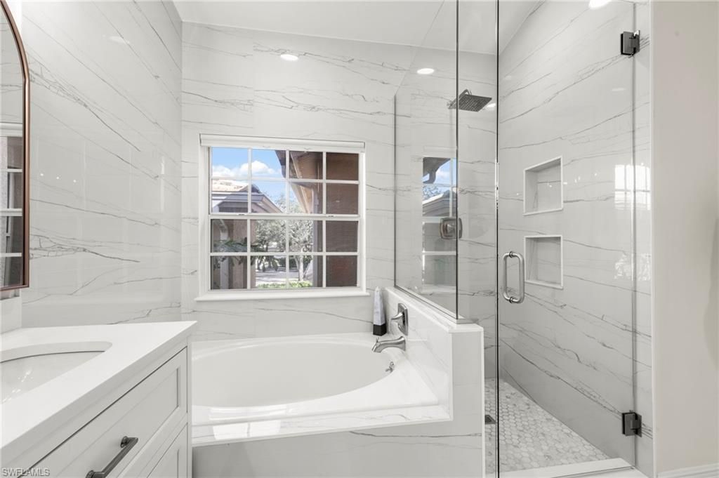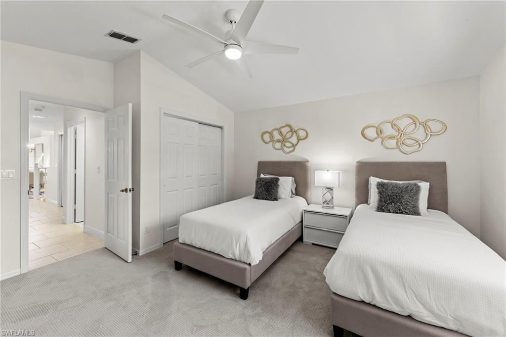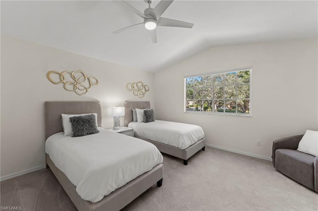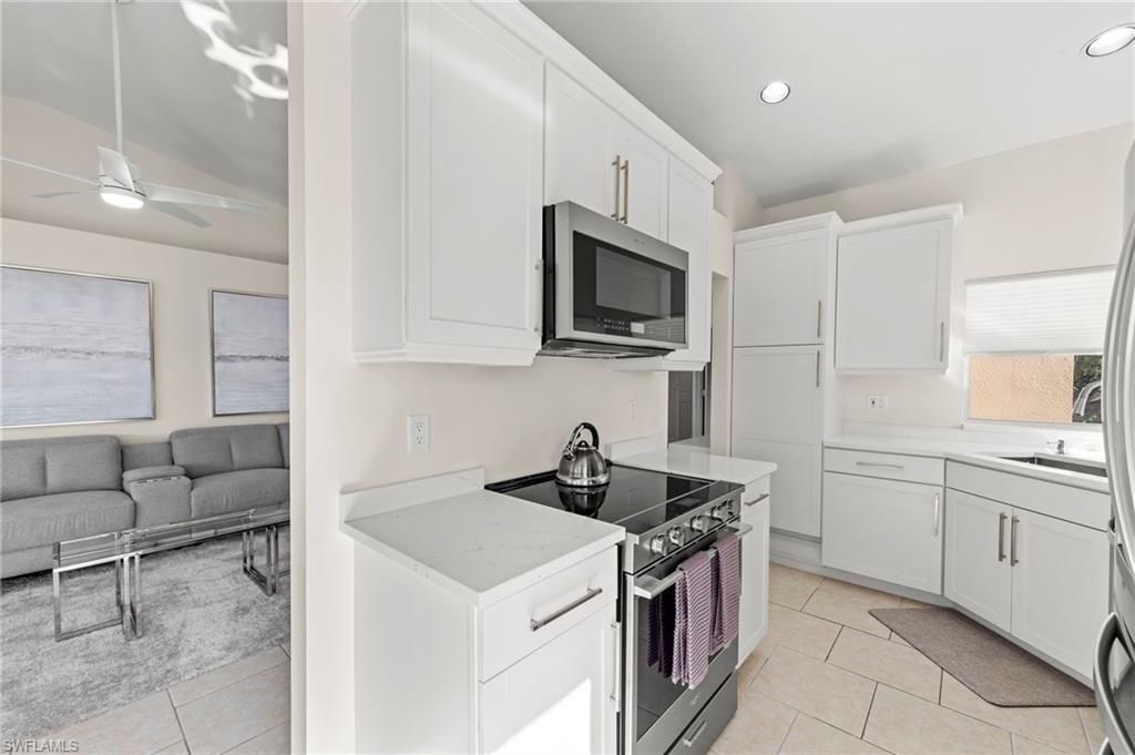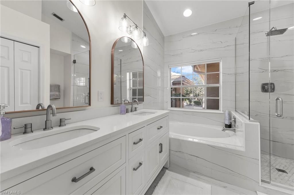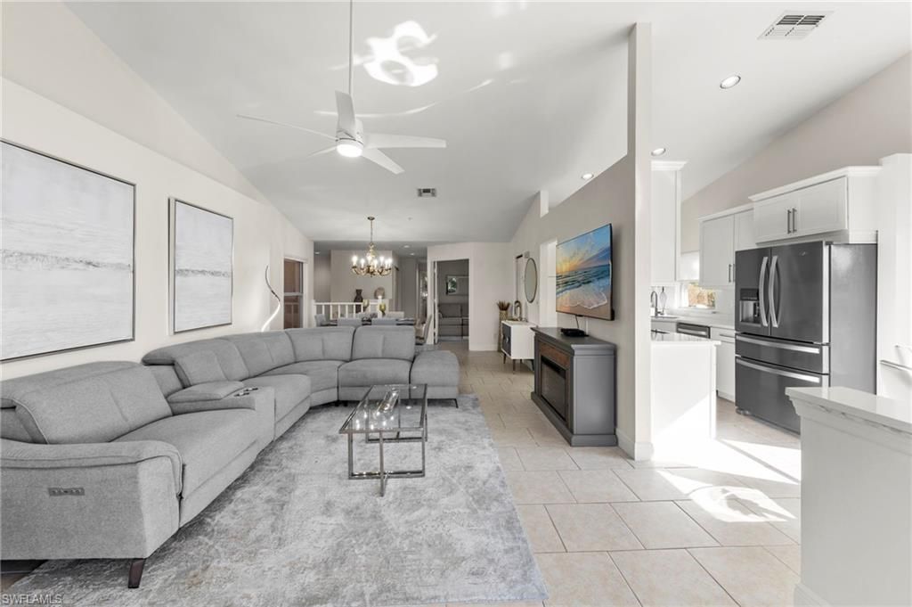 Welcome to this beautifully updated 3-bedroom, 2-bathroom lake view coach home with an attached 1-car garage, located in the charming Lakemont Cove neighborhood of Pelican Landing. This stylish residence has been transformed with designer-grade upgrades, including a modern kitchen with quartz countertops, soft-close cabinetry, stainless steel appliances, and sophisticated lighting and fixtures throughout. Vaulted ceilings and an open-concept layout create a bright, airy ambiance, while the screened lanai offers tranquil views of the lake—perfect for relaxing or entertaining. The spacious primary suite features serene water views, a beautifully remodeled en-suite bathroom, and generous closet space, making it a true retreat.Pelican Landing offers an unparalleled lifestyle with resort-style amenities, including a private 34-acre island beach park accessible by boat shuttle, a full-service fitness center, tennis and pickleball courts, and complimentary kayaking and sailing from the community’s marina. Golf enthusiasts can enjoy optional membership at the private, 36-hole Golf Club "The Nest". Just minutes from your door, you'll find the best of Southwest Florida shopping and dining—from the boutiques and restaurants at Coconut Point and Promenade at Bonita Bay to the upscale options at Mercato and Waterside Shops. With luxury updates, stunning views, and access to both nature and nearby conveniences, this coach home truly has it all.
