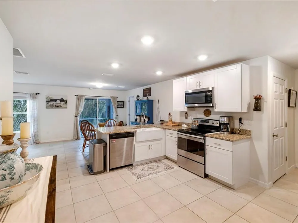 REDUCED & HIGHLY MOTIVATED – One of the Most Affordable HOA-Restricted Single Family Homes in Punta Gorda! Trade yard work for sunsets and serenity in Rio Villa Lakes, a gated 55+ community where low-maintenance living meets resort-style amenities. This 2021-built corner-lot charmer sits high on a 10' ASL stem wall and for additional peace of mind it includes a fully transferrable flood policy, surrounded by swaying palms and undeniable curb appeal. Step inside and discover a move-in-ready, concrete block home protected by impact-rated windows, doors, and shutters. The bright, open floor plan features 3 bedrooms, 2 bathrooms, and fresh ceramic tile throughout, with the primary suite tucked away for peaceful privacy. The heart of the home—a newly updated chef’s kitchen—shines with granite countertops, a farmhouse sink, stainless appliances, and a walk-in pantry ready for your culinary creations. Your primary retreat boasts a large walk-in closet and spa-like en-suite bath, while two additional bedrooms offer versatility for guests, hobbies, or a home office. Enjoy Florida’s breezes from the screened lanai or relax on the paved patio surrounded by lush landscaping and mature palms—ideal for BBQs, morning coffee, or happy hour. Practical upgrades include a 2-car garage with built-in storage and laundry, irrigation system, and fresh interior paint. Plus, enjoy the community’s heated pool, tennis court, clubhouse, and pet-friendly walking areas—all just minutes from downtown Punta Gorda’s waterfront dining, boutique shopping, farmers market, and marina. With easy access to I-75, beaches, and parks, this affordable single-family home offers the space and privacy of a house with the lock-and-leave convenience of a condo. Why settle for less? Start living your best Punta Gorda lifestyle today! Schedule your private showing now.