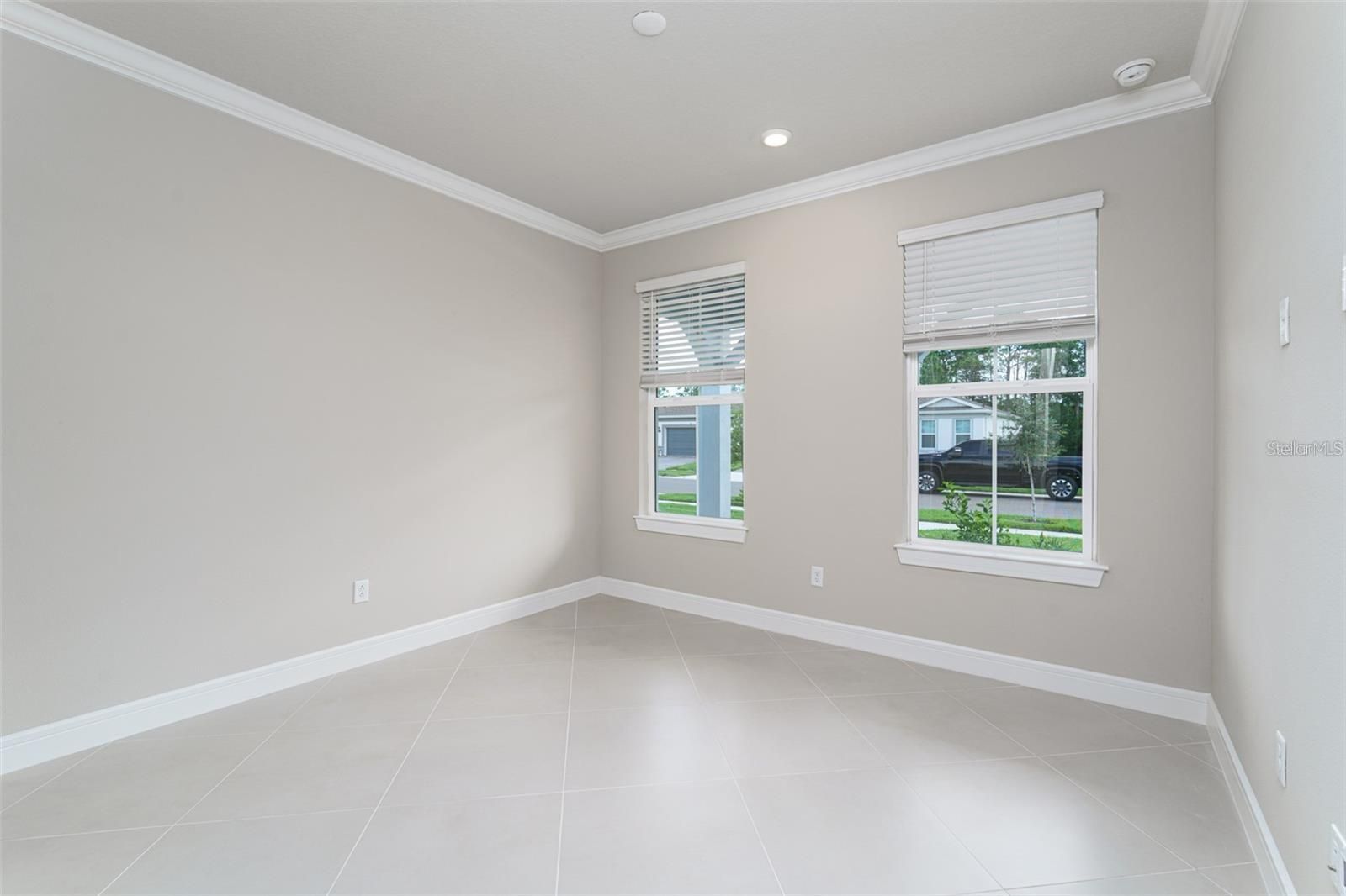 - Crown Molding, Eat-in Kitchen, High Ceilings, In-Wall Pest Control, Kitchen/Family Room Combo, Living/Dining Room, Solid Surface Counters, Split Bedrooms, Thermostat, Walk-In Closet(s), Window Treatments