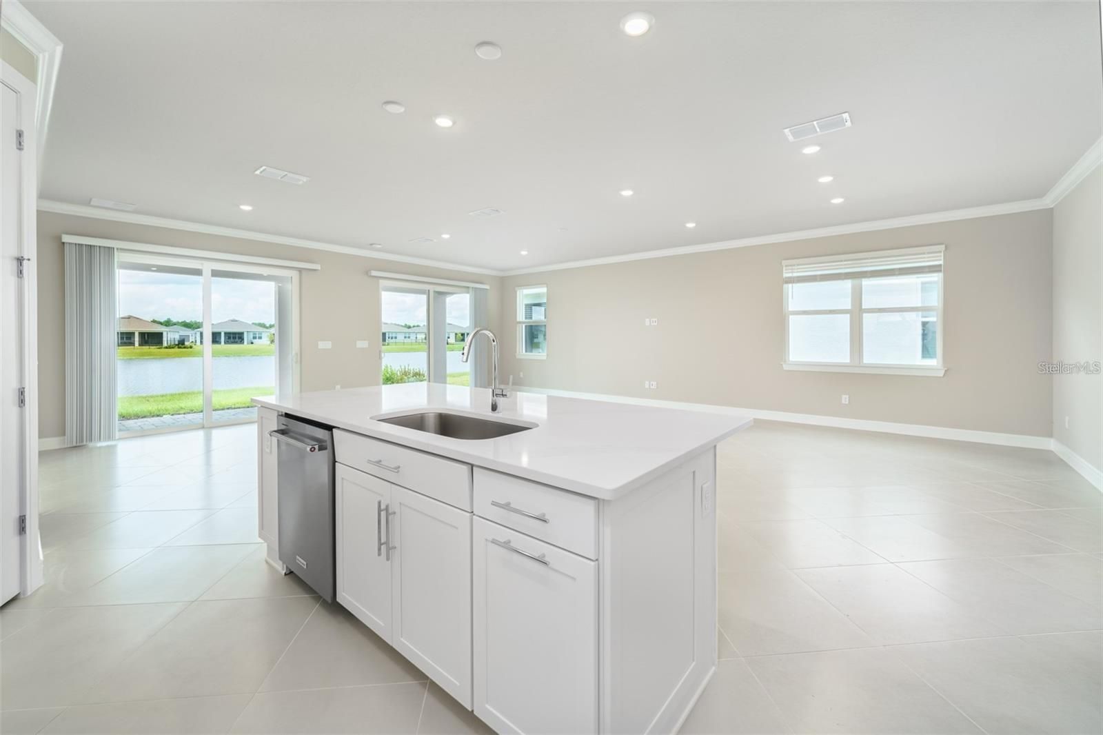 Brand New Move-In Ready! Circumstances changed for this buyer and they are selling their beautiful Mystique Model Home with upgrades galore! This amazing home is located in the DeWebb 55+ community in SunBridge. This community encompasses over 27,000 acres. The "Naturehood" in SunBridge, is 14,000 acres of lakes, oak hammocks and mesmerizing Florida's natural preserve. Sunridge's 2026 plans include a multi-purpose shopping district with high end dining and shopping alongside a new Marina. This home is less than 1/2 miles to the full Amenity Hammock Clubhouse. This state of the art facility offers a front desk concierge, large gym with resort style amenities which include multiple work out class rooms, wet and dry arts and crafts rooms, banquet facility with a full kitchen, and enjoy dining at the Tavern Restaurant and Bar that offers dining inside or outside. The resort style pools offer a resistance pool along with lap swimming and zero entry. Please see the attached amenities schedule of ongoing activities! Rest assured you will receive all Pulte's Builder Warranties which include a 1 year, 2 year, and 5 year and a 10 year structural warranty. Owners did many upgrades from extending the living area to adding an extra bedroom from the garage area. This 4 bedroom 3 bathroom home will be a family entertainment delight. The open kitchen has a large bar with the sink and dishwasher. This area is great for casual eating, scrolling or good ole conversation. The kitchen includes upgraded. KitchenAid appliances. Why wait to build wjem you have the opportunity to move in ready home on this upgraded lot with a water view that offer spectacular evening sunsets!
