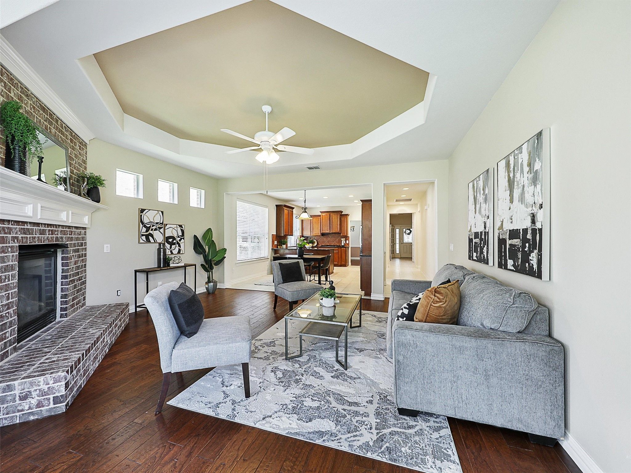 - 1, Blower Fan,Glass Doors,Gas Log,Living Room,Masonry,Raised Hearth
