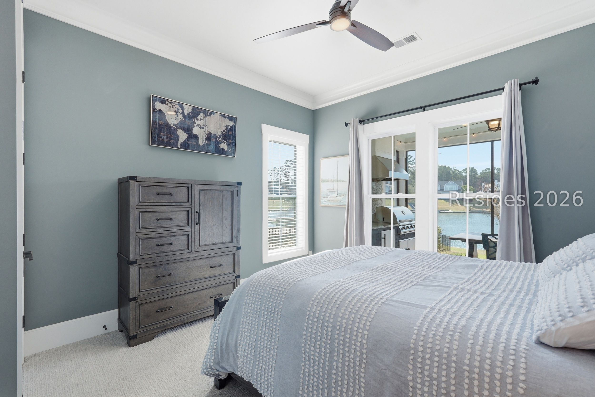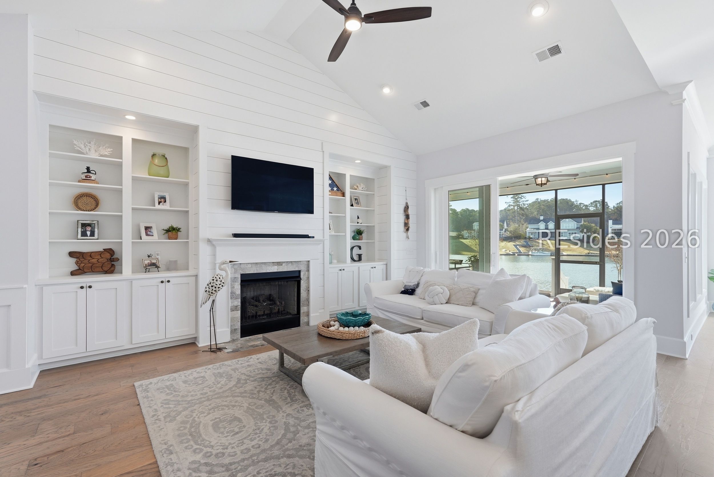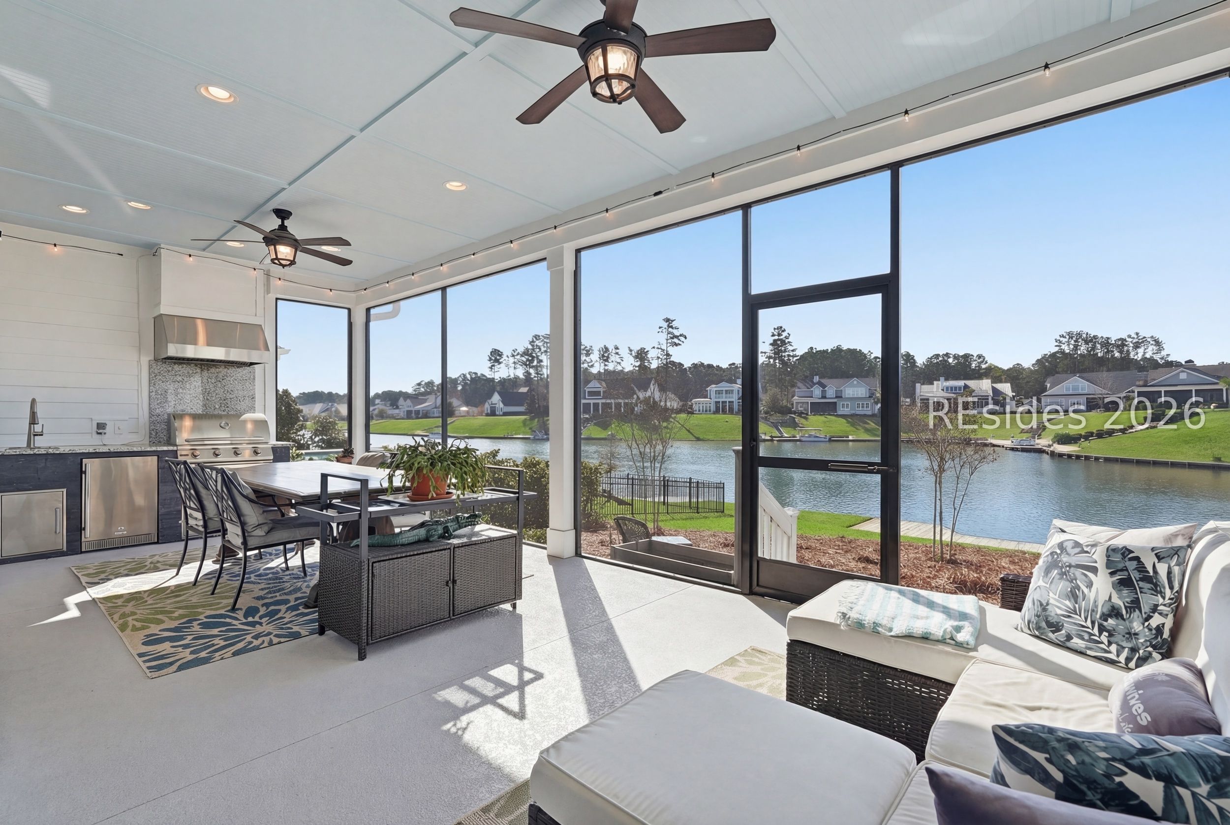 Welcome home to 248 Flatwater Dr...the epitome of exceptional. At just over 3,300 SQ ft., this extensively appointed Anchor model, by Logan Homes, offers 4 bedrooms, 3.5 baths + office + bonus/media room. Enjoy stunning lake views from both levels of the home. On the first level, the large screened lanai boasts a summer kitchen and ample room for outdoor seating and dining. The firepit and bulkhead round out the outdoor living on the main level. Additionally, the upstairs features a spacious screened in deck facing the lake. This home is truly designed for entertaining and relaxing lakefront living. The kitchen offers gas range, stainless appliances, a large island with countertop seating, under cabinet lighting, and a large walk in pantry with wood shelving. The great room is complete with gas fireplace, built in shelving, cathedral ceilings, and sliders out to the patio area. The split floor plan has a large owner's suite with tray ceilings, wood flooring and plantation shutters. The En suite bath has a large walk in shower, abundance of cabinetry, and it leads to the spacious walk in closet with direct access to the laundry room. There are two additional bedrooms on the main floor as well as an office with French doors and one and a half baths. Upstairs you will find the fourth bedroom that is truly a guest retreat with living area, En suite bath, and sliders out to the second-floor deck. Down the hallway, lined with bookshelves, is the bonus/media room. Hampton Lake is Bluffton's premier lakefront community with top shelf amenities to include a boatable freshwater lake, resort style pool with lazy river, two additional community pools, full service spa, waterfront dining, expansive fitness center, tennis courts, pickle ball, Bocce courts, basketball, kayaking, private beach, clubhouse, dog park, miles of trails and sidewalks. This home is truly a must see.
