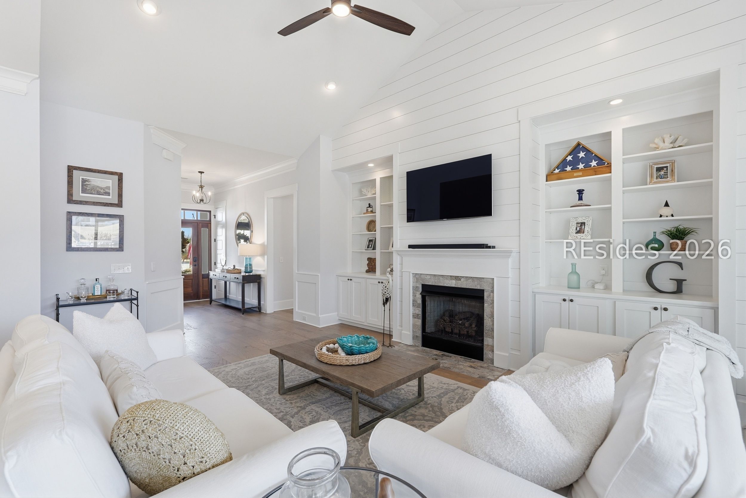 - Attic Access, Bookcases, Built-in Features, Tray Ceiling(s), Ceiling Fan(s), Cathedral Ceiling(s), Fireplace, High Ceilings, Main Level Primary, Multiple Primary Bathrooms, Smooth Ceilings, Separate Shower, Vaulted Ceiling(s), Wired for Sound, Window Treatments, Entrance Foyer, Pantry