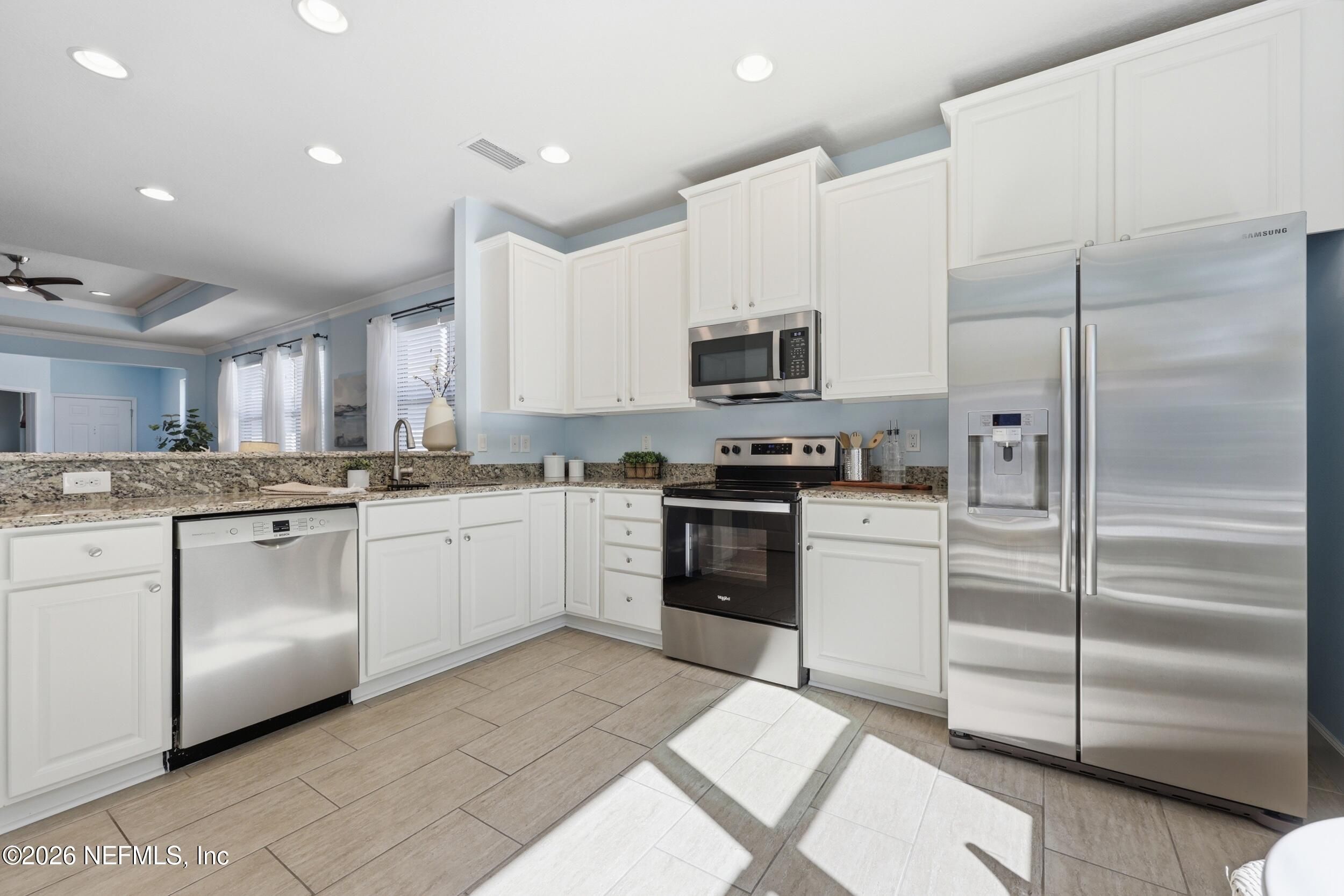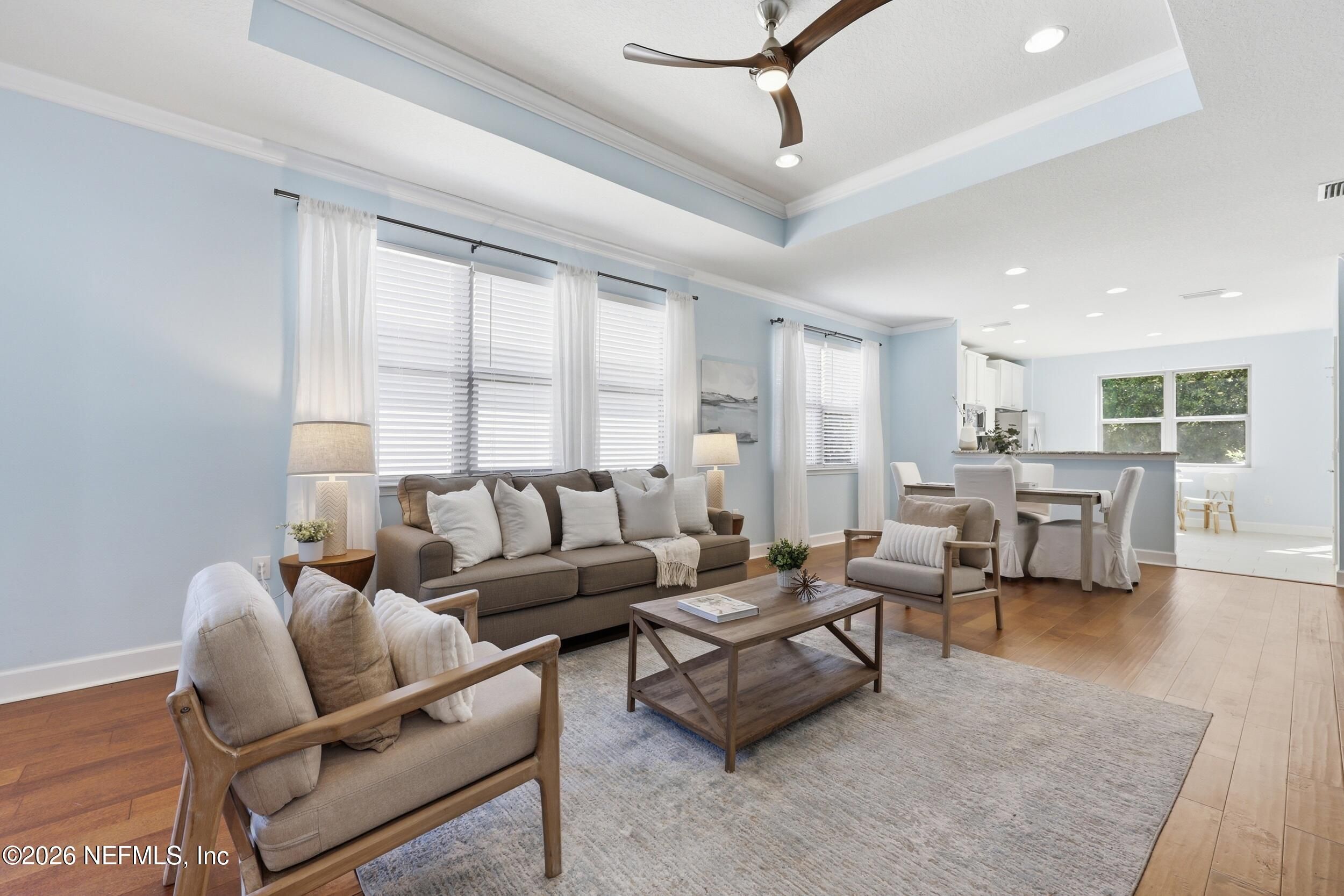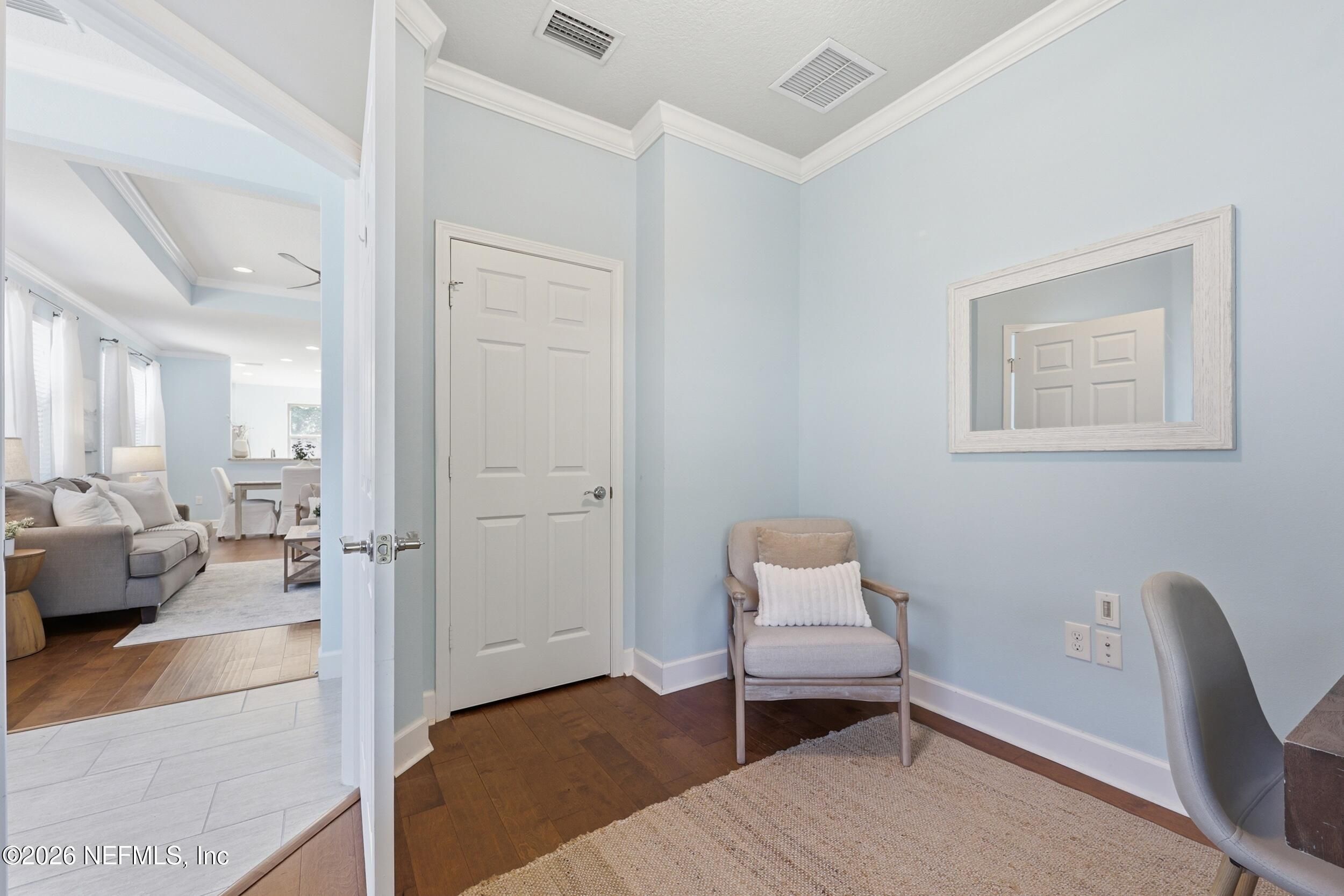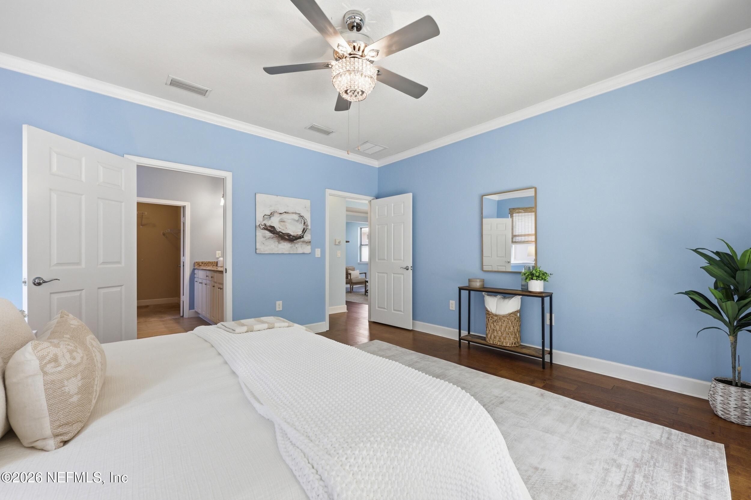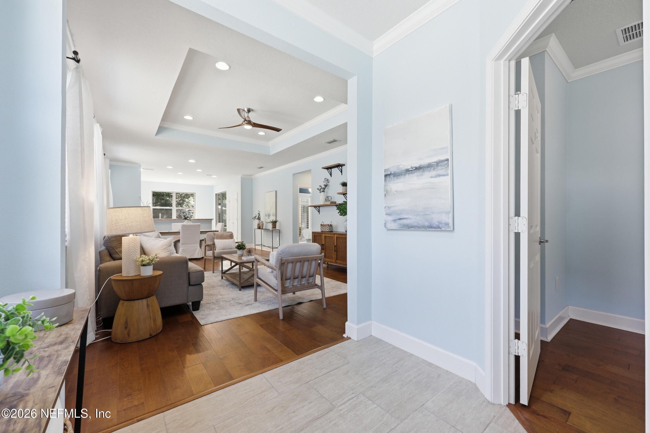New Roof 2023! PRESERVE view lot! Featuring elegant hardwood floors THROUGHOUT, no carpet, 10 ft. tiered ceilings, beautiful white cabinetry, granite counter tops, SS appliances, custom ceiling fans, new A/C 2024. Range, dishwasher, water heater, microwave, disposal, water softener, were replaced in 2023 making this home move in ready and maintenance free. Interior and exterior painted in 23'. Custom plantation shutter panels enrich the primary suite sliding glass doors, double vanity, spacious shower, and a generous walk in closet. Split floor plan so guests have their own bedroom with full bath, 3rd BR/office. If you are looking for the best in Del Webb here it is. Resort style amenities, beautiful tree lined streets, 24 Hr security, allowing you to enjoy the outdoor serenity, and dine al fresco from the extended paved patio, or relax on your screened lanai. Close to the Anastasia Club offering world class amenities, including an indoor pool and hot tub. (Click the more tab) Billiards room, library, entertainment, social clubs include games, and book clubs, cafe, a state-of-the-art fitness center, tennis and pickle-ball courts, shuffle board, all conveniently located near beaches, (only 8 miles to the sandy shore), shopping, and dining. Nocatee is an exceptional community featuring 60% green space offering the perfect blend of outdoor beauty, privacy, inside a vibrant community with something for everyone. This home is a must see!