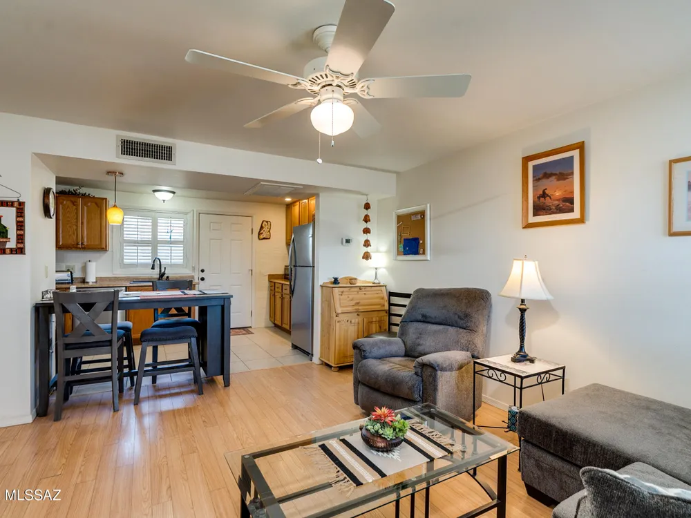 Property DescriptionCome and experience a very detailed and updated Villa. The furnished property makes a great getaway or rental. A single Bedroom with an updated Bathroom is just the beginning. It has everything from updated dual-pane windows to full-sized appliances and comfortable furniture. Enjoy the mornings on the east-facing patio with partial mountain views and a green belt, and enjoy the modern water feature. The rear patio offers Golf Cart parking and a place to escape the morning sun. NO GVR. Call today for your private tour