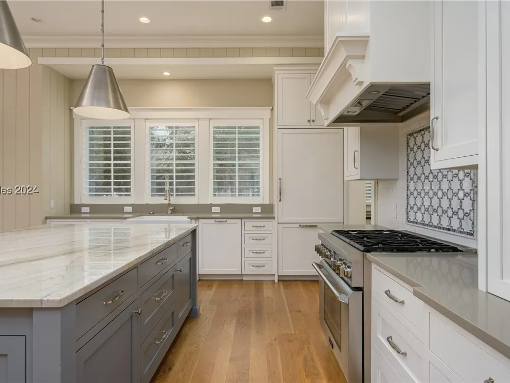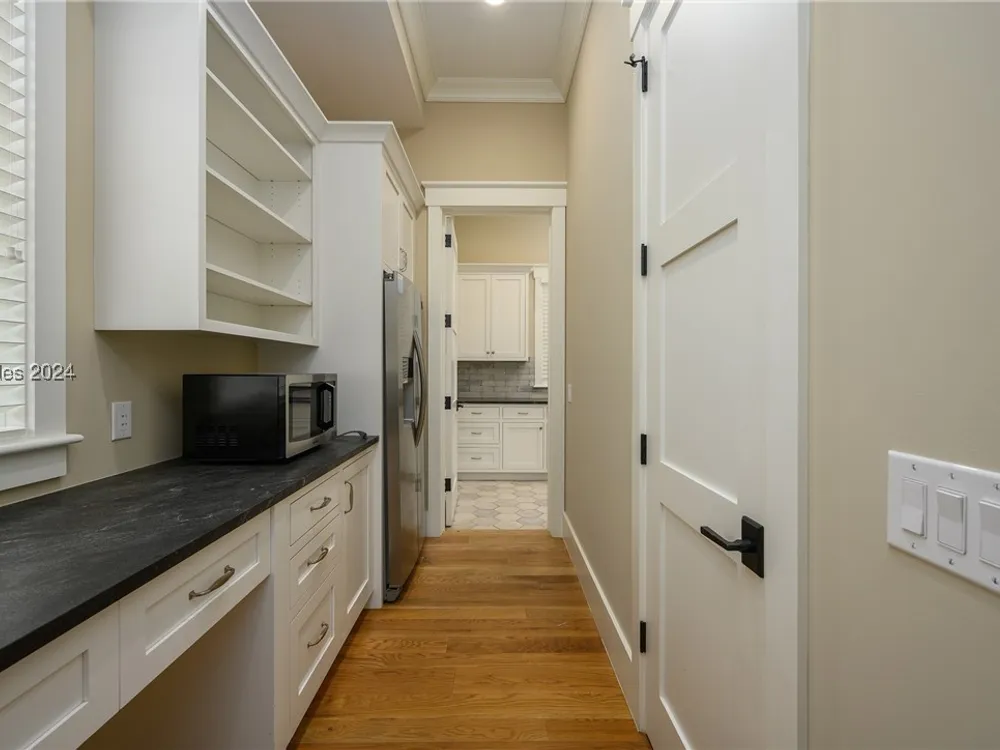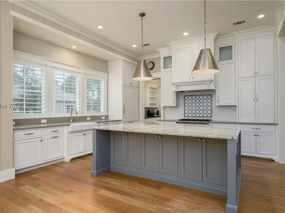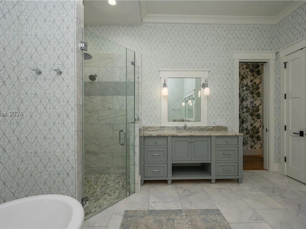 248 Waterfowl Rd is a 5 bed, 5.5 bath Lowcountry coastal home in the River Road Neighborhood set on a corner lot nearly a third of an acre, w/ 4,283 sq ft. Set around a sprawling great room, main living spaces wrap around an open kitchen w/ updated appliances, into a butler’s pantry & toward a screened porch with outdoor fireplace. A spacious primary suite enjoys a walk-in closet filled w/ custom built-ins & an en-suite bath w/ soaking tub & walk-in shower. Three full suites on the second floor surround a large bonus space. And a 792-sq ft carriage house above 2.5 car garage serves as a private apartment, w/ living room, bedroom & full bath.