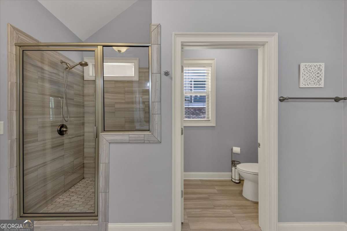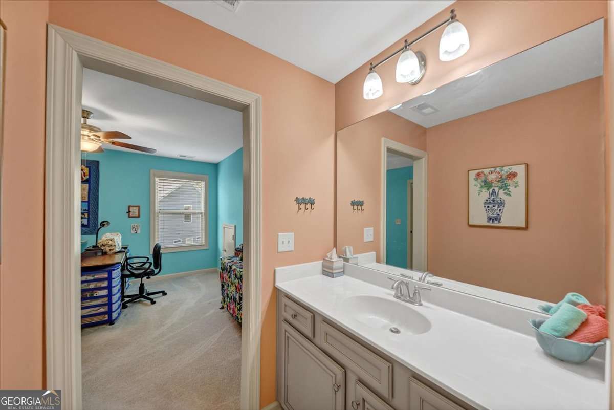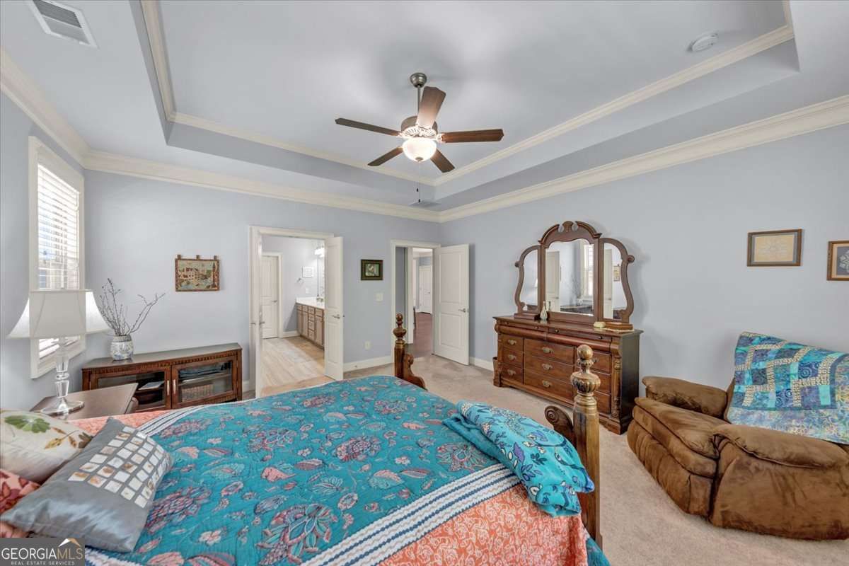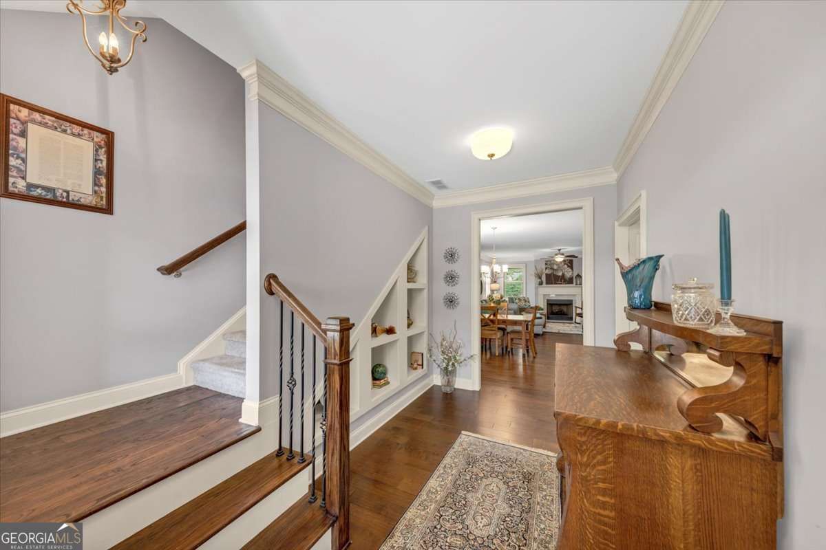 Peaceful and quiet! A beautifully designed and well maintained home located in the 55+ active, adult community of Barrett Preserve. This residence offers a perfect balance of style, comfort, and low-maintenance living. From the inviting covered front porch, step into a spacious foyer featuring built-in bookshelves, setting the tone for the home's character and craftsmanship. The open-concept design flows effortlessly into the gourmet kitchen, dining area, and great room, creating a warm and welcoming space for gatherings and everyday living. The chef's kitchen is a true highlight, complete with quartz countertops, a large breakfast bar, stainless steel appliances, ample cabinetry, and a walk-in pantry. The great room centers around a marble fireplace and opens to a covered back patio, ideal for relaxing mornings or evenings outdoors. The primary suite on the main level provides a luxurious retreat with trey ceilings, a spa-inspired bath featuring dual cultured marble vanities, a tiled shower with a comfort bench, and an extra large walk-in closet. Upstairs, you'll find two spacious guest bedrooms connected by a Jack and Jill bath, along with a generous walk-in storage area perfect for hobbies or seasonal items. This exceptional home in Barrett Preserve combines timeless design with modern convenience-all just minutes from the scenic trails and natural beauty of Kennesaw Mountain.