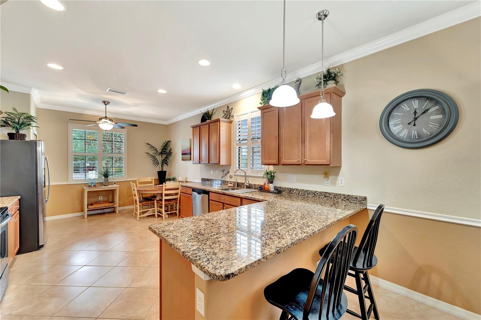 This charming home in Cypress Falls at the Woodland, a Del Webb 55+ gated community, offers 1,649 SQFT of living space with 3 bedrooms. The mature landscaping and screened front entry with a beautiful glass door welcome you. Inside, you'll find high ceilings, earth tone paints, elegant crown molding and plantation shutters. The spacious kitchen features granite countertops, natural wood cabinetry, and a breakfast bar, perfect for culinary enthusiasts. The living room is ideal for entertaining, while two spacious bedrooms are located at the rear of the home. One bedroom is set up as an office with a Murphy bed for guests, while the second comfortably accommodates a queen-size bed. The guest bath includes a granite countertop and a tub with tile surround. The primary suite offers an ample space with a peaceful preserve view and an ensuite bathroom featuring a tub, separate shower, and double bowl sink with granite countertop. The large, partially covered lanai is perfect for entertaining, overlooking the serene preserve. The garage has an epoxy floor for durability and aesthetics as well as a pull-down screen. Beyond the home, the Cypress Falls community offers a wealth of amenities, including a clubhouse, resort-style pool, resistance pool and hot tub, fitness center, pickleball, tennis, horseshoes, bocce, billiards ensuring an active lifestyle. With a full-time activities director and Manager, there are numerous clubs and events to foster a vibrant community life. Come see this wonderful home and community for yourself! *Additionally, many pieces of furniture, throw rugs, wall art, mirrors, and some lanai furniture come with the house. See the full list of furniture to stay and seller upgrades in the attachments.
