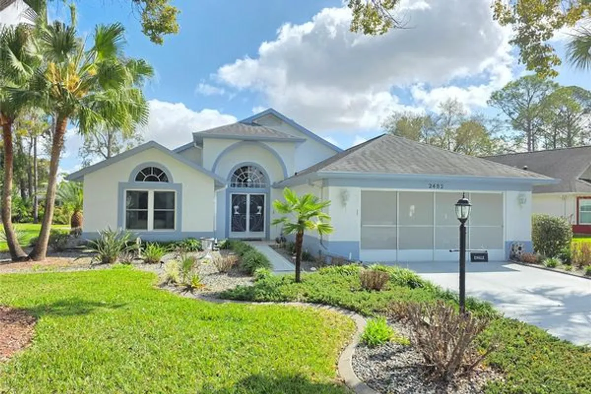 Timber Pines 2 Bedroom Home On A Cul-De-Sac With 2 Full Bathrooms And A Oversize 2 Car Garage- Enter The Home To The Dual Door Entry Tiled Foyer- Vaulted Ceilings- Family And Formal Dining Room- Tiled Eat In Kitchen With Stainless Steel Appliances, Dining Nook, Dual Sinks, Breakfast Bar And A Pantry- The Primary Bedroom Has Hard Wood Flooring Large Transom Window, 2 Walk In Closets, Dual Sinks, Garden Tub And Separate Shower- There Is A Great Room Plus A Separate Office Room That Can Be A 3rd. Bedroom If Needed- Florida Room- Inside Laundry Room With Wall Cabinet's- Extras Include Roof 2012, Air 2017, Newer Tilt Out Windows, Gutters, Transom Windows, Plant Shelves, Ceiling Fans, Interior Paneled Doors, Newer Water Heater, Attic Storage, Exterior Decorative Curb A Lawn- Open Floor Plan, Call Today For A Showing. Timber Pines, a 55+ Gated Community, With 4 Golf Courses, Country Club, Remodeled Restaurant And Bar With Multiple TV Screens, 2 Pools, Fitness Center, Tennis And Pickle Ball Courts, Bocce Ball, Billiards Room And More Than 100 Different Clubs. Spectrum Cable, 2 boxes and High-Speed Internet Are Also Included In the HOA.