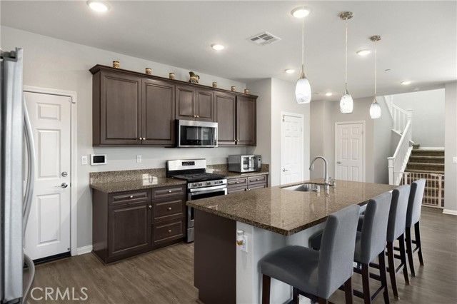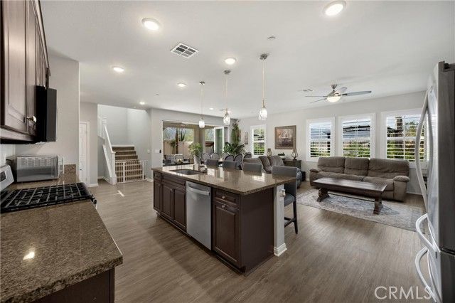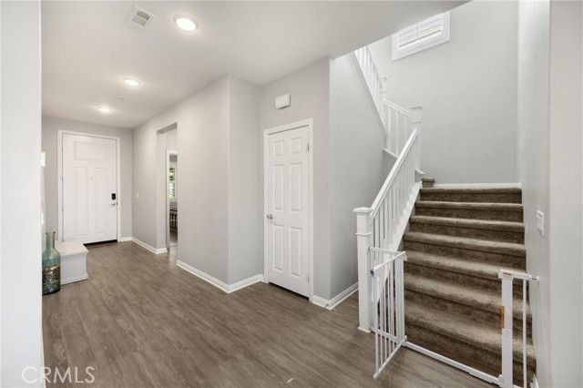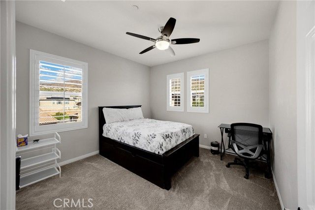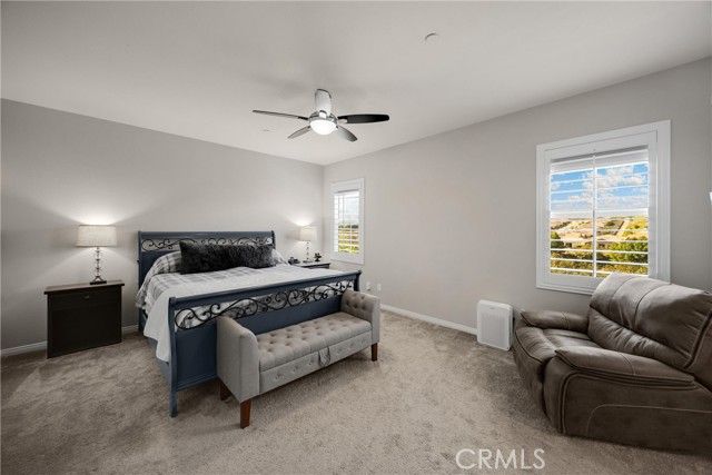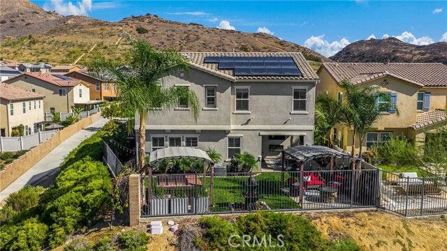 Welcome to this four bedroom three bathroom property in the prestigious community of Terramor; Guard gated with so many amenities. Driving across the bridge and through the gates you feel the luxury that awaits. Pulling up to the property, you see the pride of ownership and custom front patio and landscaping. Entering the home you notice a bright and expansive great room and chef kitchen. On the first level, there is a bedroom and bathroom with shower for a possible guest room, place for family or an office. Walking up the stairs you are greeted by an open loft that can be utilized for movies or an extra place to hangout. On the second level are three bedrooms, a hallway full bathroom with dual sinks and a laundry room for added convenience. The primary bedroom is large enough to decorate with accent chairs for a great seating area to read a book or relax. Off of the primary is a spa like on-suite with dual sinks, separate shower and a tub to take the stress away. A calm place to escape to. Going back downstairs you see an large "accordion style" sliding door that leads to the backyard. There is a covered patio and two additional covered areas. One with a jacuzzi for relaxation. This home has one of the best views in the community. Rolling hills and gorgeous mountain ranges. Beautiful all day with a breathtaking sunset; any time of the year. Also located in a cul de sac for less incoming traffic. The amenities included in the community are a clubhouse, pool, toddler pool, bbqs, dog parks, park with basketball and play area. Very close walking distance to the "Veranda" Clubhouse and Children Tot Lot Play area. The home also features leased solar with fifteen panels for utility savings. There is a charging station installed in the garage for an electric vehicle. Freeway close to Temecula "wine country," mountains, deserts or beaches. So much more to list. A true gem. Come take a look and make this your home.