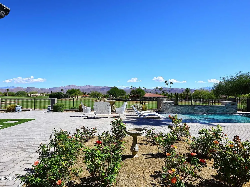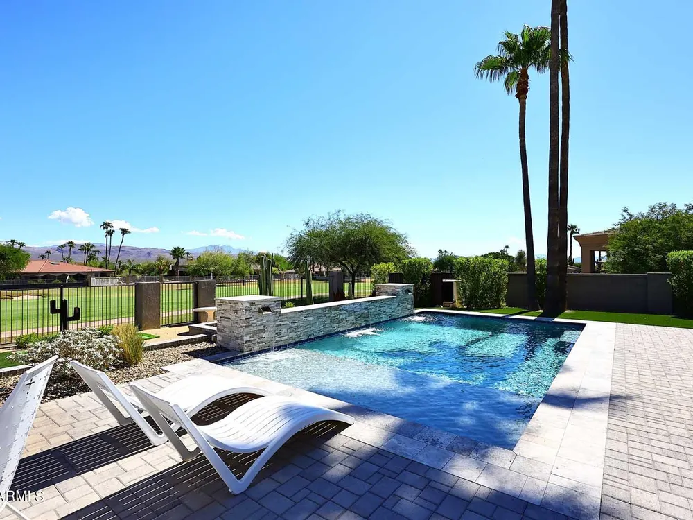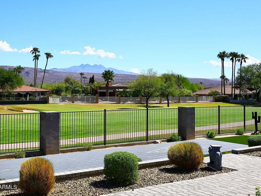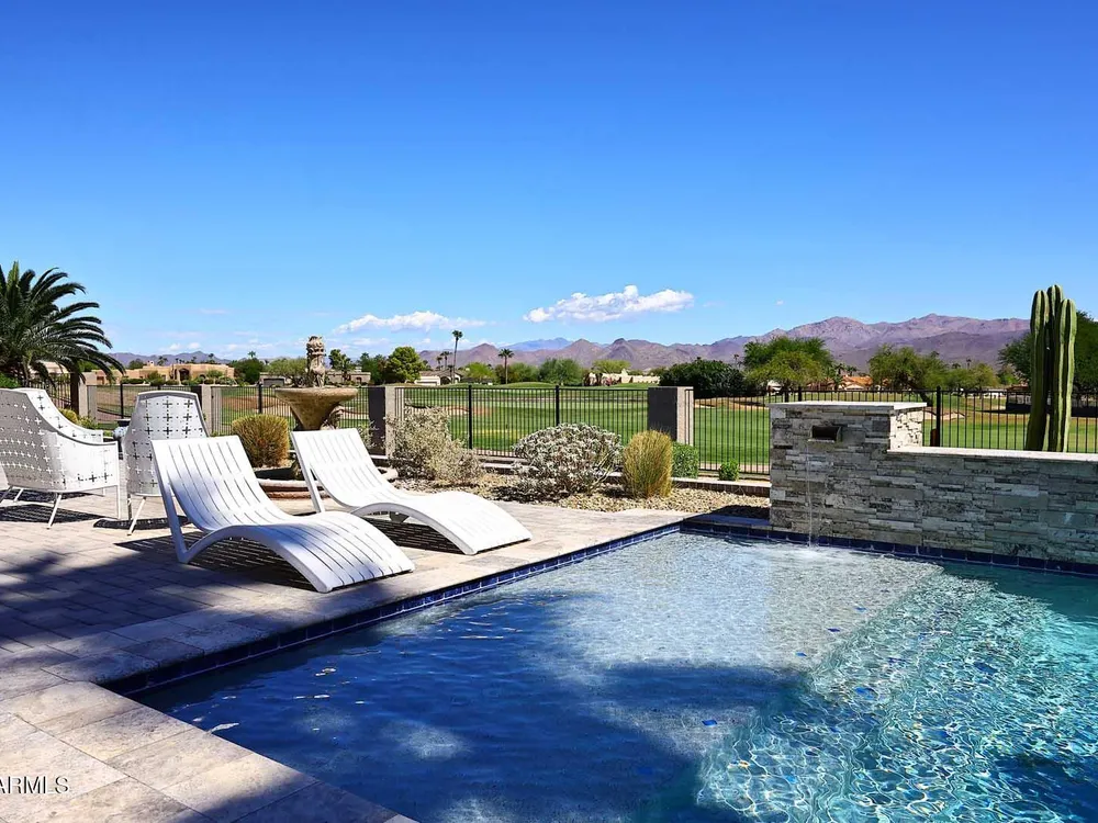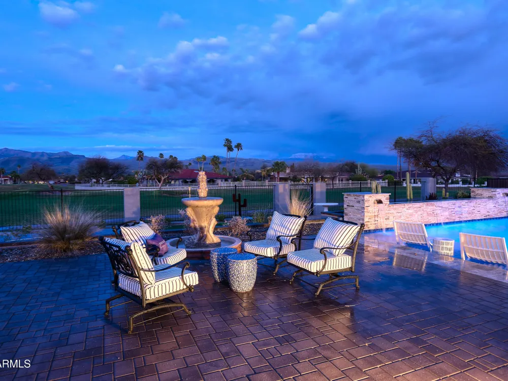 Price adjustment!! LOOK AT ALL THIS!! Breathtaking views, this home has it all. The ''GOLD COAST'' of Rio Verde- no better views ever than this! Open plan, and refined living in every way. The circular open entry fountain, to massive front entrance sweeping to immediate views one cannot miss! Big kitchen and open eat in area with more views, family room with fireplace. Added by owners pallets/tons of custom pavers surrounding heated and ''cooled'' newer pool and landscaping, fencing, shuffle board and outdoor living at AZ best. The main suite is equally breathtaking, with all the features of luxury living. Walk in shower, dual vanities, spa tub, plenty of closet space, and all you expect. This is a must see. Clean, custom touches, views, and nothing to do but move in!!