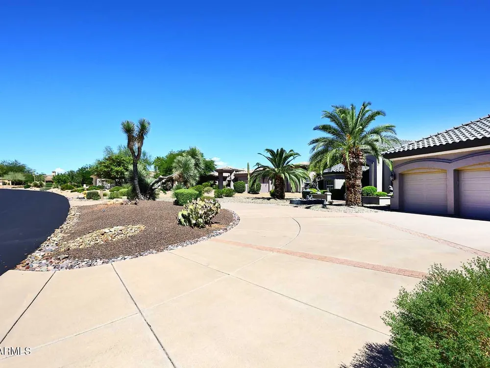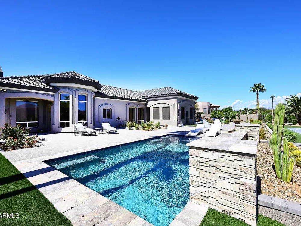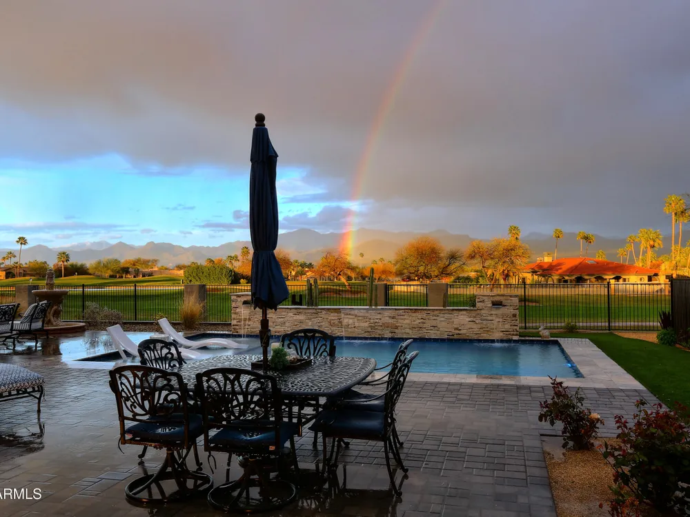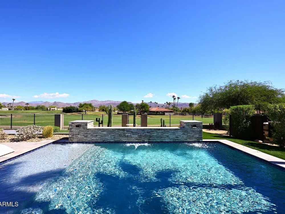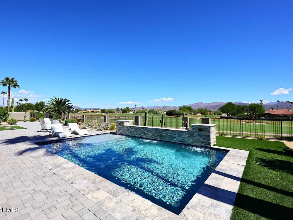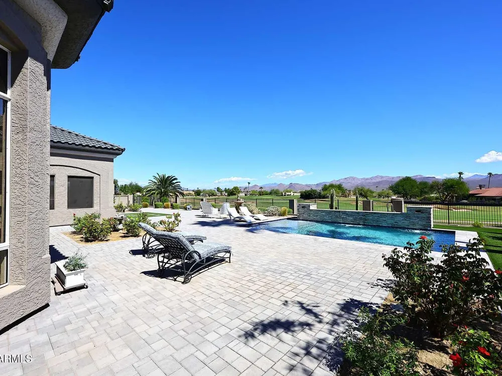 Price adjustment!! LOOK AT ALL THIS!! Breathtaking views, this home has it all. The ''GOLD COAST'' of Rio Verde- no better views ever than this! Open plan, and refined living in every way. The circular open entry fountain, to massive front entrance sweeping to immediate views one cannot miss! Big kitchen and open eat in area with more views, family room with fireplace. Added by owners pallets/tons of custom pavers surrounding heated and ''cooled'' newer pool and landscaping, fencing, shuffle board and outdoor living at AZ best. The main suite is equally breathtaking, with all the features of luxury living. Walk in shower, dual vanities, spa tub, plenty of closet space, and all you expect. This is a must see. Clean, custom touches, views, and nothing to do but move in!!