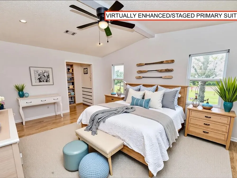 - Ceiling Fan(s), High Ceilings, Other, Main Level Primary, Solid Surface Counters, Walk-In Closet(s)