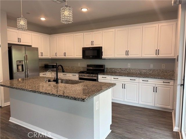 Guard Gated Community of "Terramor." Beautiful Four Bedroom with one bedroom and bath on the first level. Great for an office or family member. Lush landscaping and hardscape in the front yard. As you enter the property, you notice upgraded flooring and an open concept living space. Off the family room is a chef type kitchen with a large island. The first level has a multi-door slider that leads into the back yard with a patio cover. A great place for indoor/outdoor entertaining. Going up the stairs, there is a spacious loft that can be used as a play area for kids, an additional area for movies or even a nice work-out area. On the second level are three bedrooms. The primary is very spacious with enough room for a sitting area. The on-suite has a separate tub and shower, and dual sinks. There is a large walk in closet as well with custom shelving. Down the hallway is a laundry room and a well appointed additional full bathroom. The property has solar for utility savings. Also included is a vehicle charging station and water softener system. Garage has great storage cabinets. Washer, Dryer and Refrigerator included. The community amenities include a pool, kid pool, recreation room, community garden, parks, two dog parks and numerous trails. Freeway close to Temecula Wine Country,