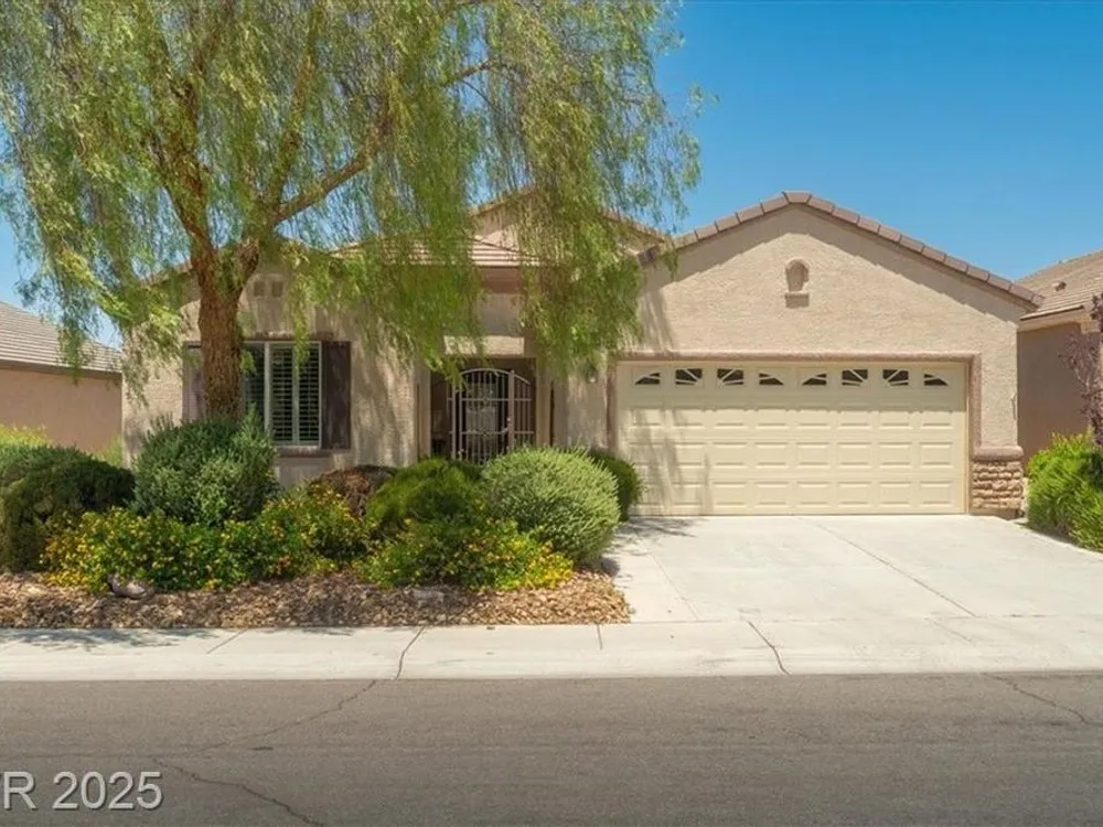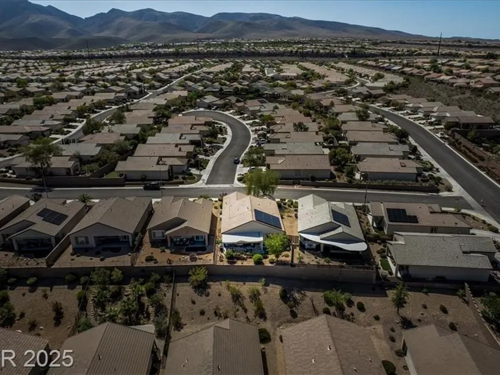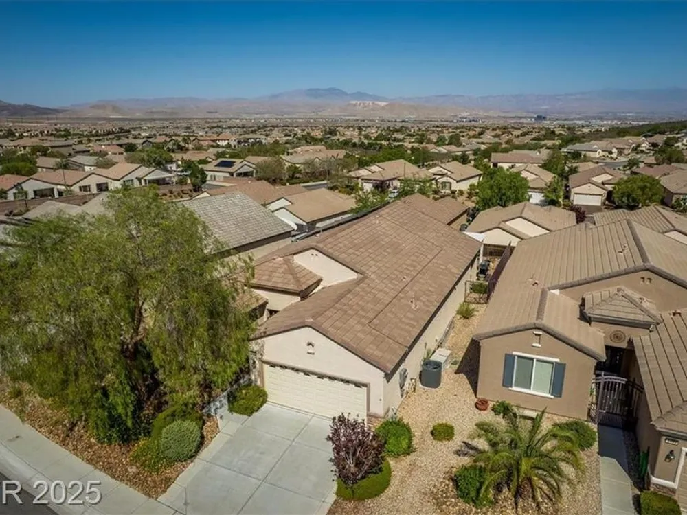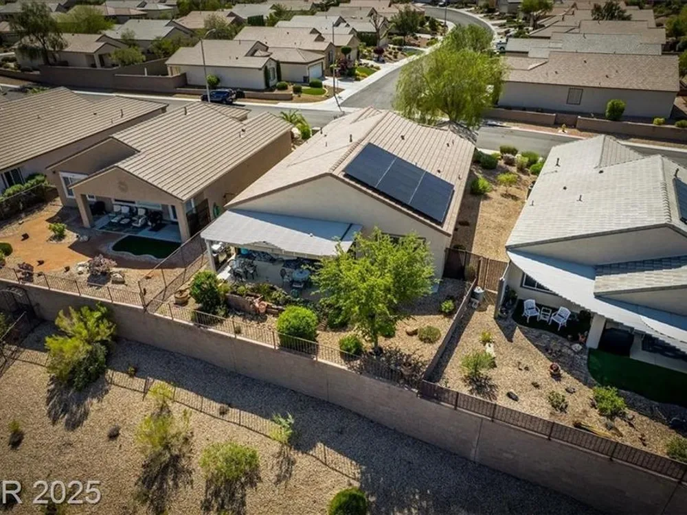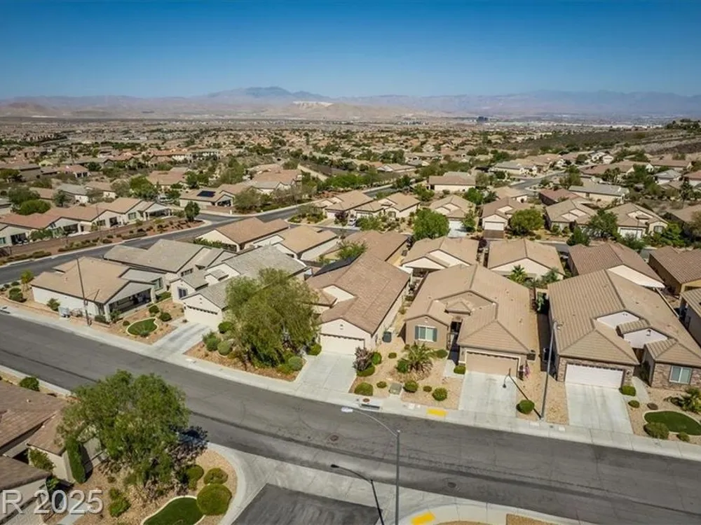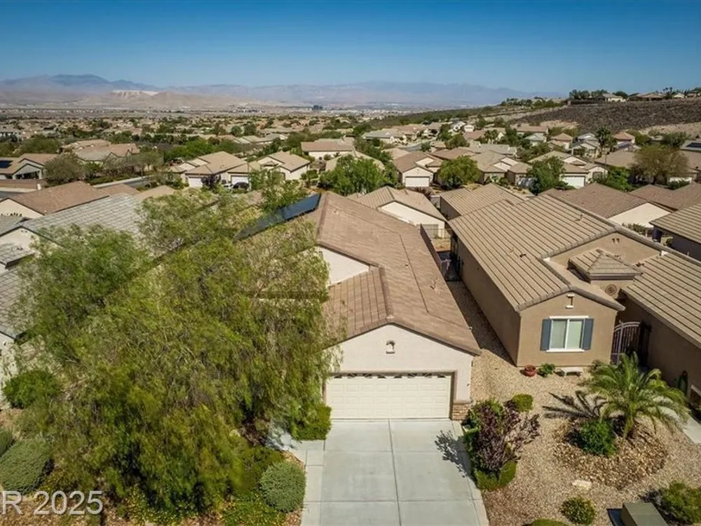 Assumable VA loan at 2.25%! This property has it and a lot more! Located in Solera @ Anthem this 3 bedroom retreat with a view is a rare find. Solera is an age restricted community adjacent to the renowned Sun City Anthem master planned area. The west facing backyard with an extended covered patio gives the perfect view of South Las Vegas, Mt Charleston and the beautiful Vegas sunsets year-round. You get the view from every window along the back of the house (kitchen, living room, primary bedroom). Having 3 bedrooms gives plenty of space for craft rooms, offices, or for those long lost friends who suddenly want to visit you in Vegas! Thankfully, the central air system was recently replaced and solar panels installed to keep the power bills low. This is a fantastic opportunity as this home has been lovingly taken care of by the original owner who knew this was a prime location in the entire community.