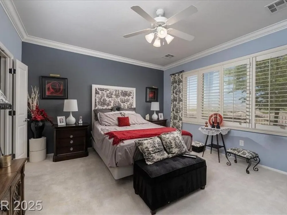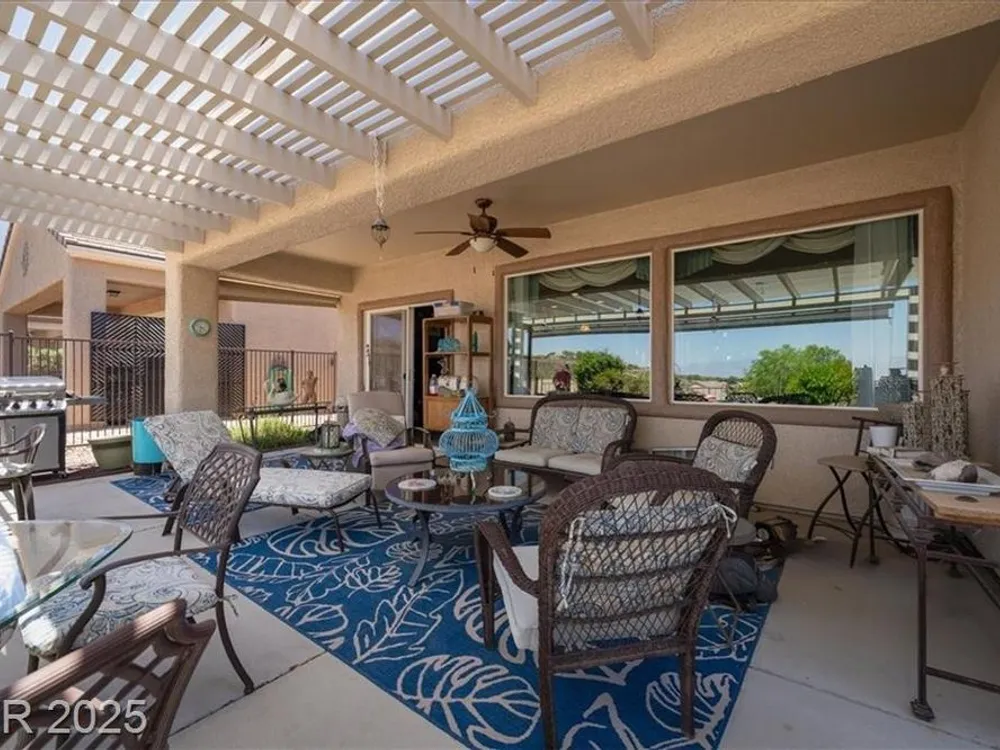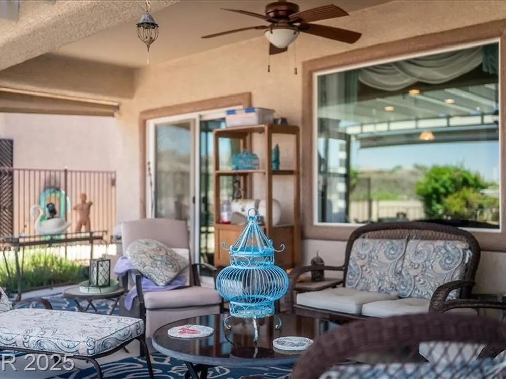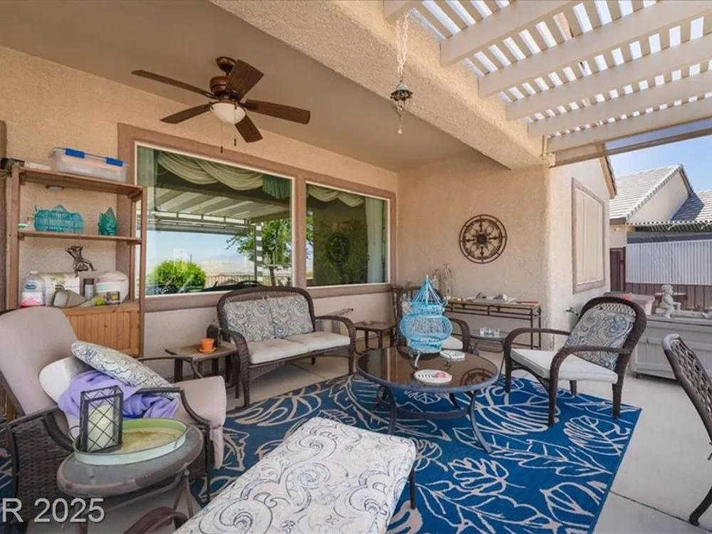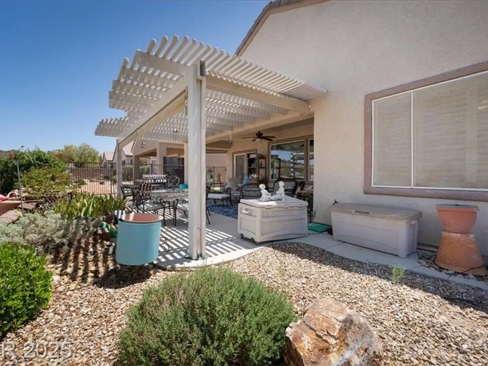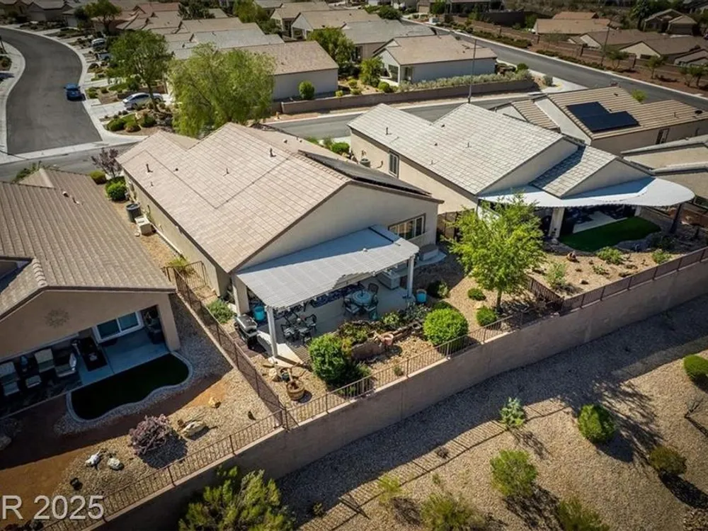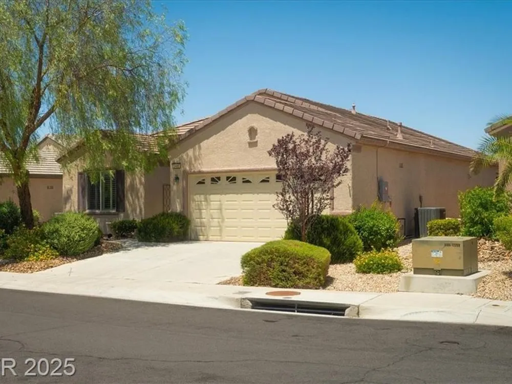 Assumable VA loan at 2.25%! This property has it and a lot more! Located in Solera @ Anthem this 3 bedroom retreat with a view is a rare find. Solera is an age restricted community adjacent to the renowned Sun City Anthem master planned area. The west facing backyard with an extended covered patio gives the perfect view of South Las Vegas, Mt Charleston and the beautiful Vegas sunsets year-round. You get the view from every window along the back of the house (kitchen, living room, primary bedroom). Having 3 bedrooms gives plenty of space for craft rooms, offices, or for those long lost friends who suddenly want to visit you in Vegas! Thankfully, the central air system was recently replaced and solar panels installed to keep the power bills low. This is a fantastic opportunity as this home has been lovingly taken care of by the original owner who knew this was a prime location in the entire community.
