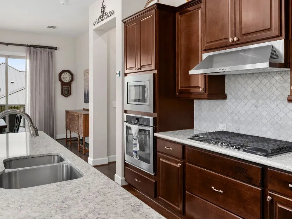 - Dishwasher, Disposal, Gas Range, Microwave, Oven, Plumbed For Ice Maker, Refrigerator, Vented Exhaust Fan