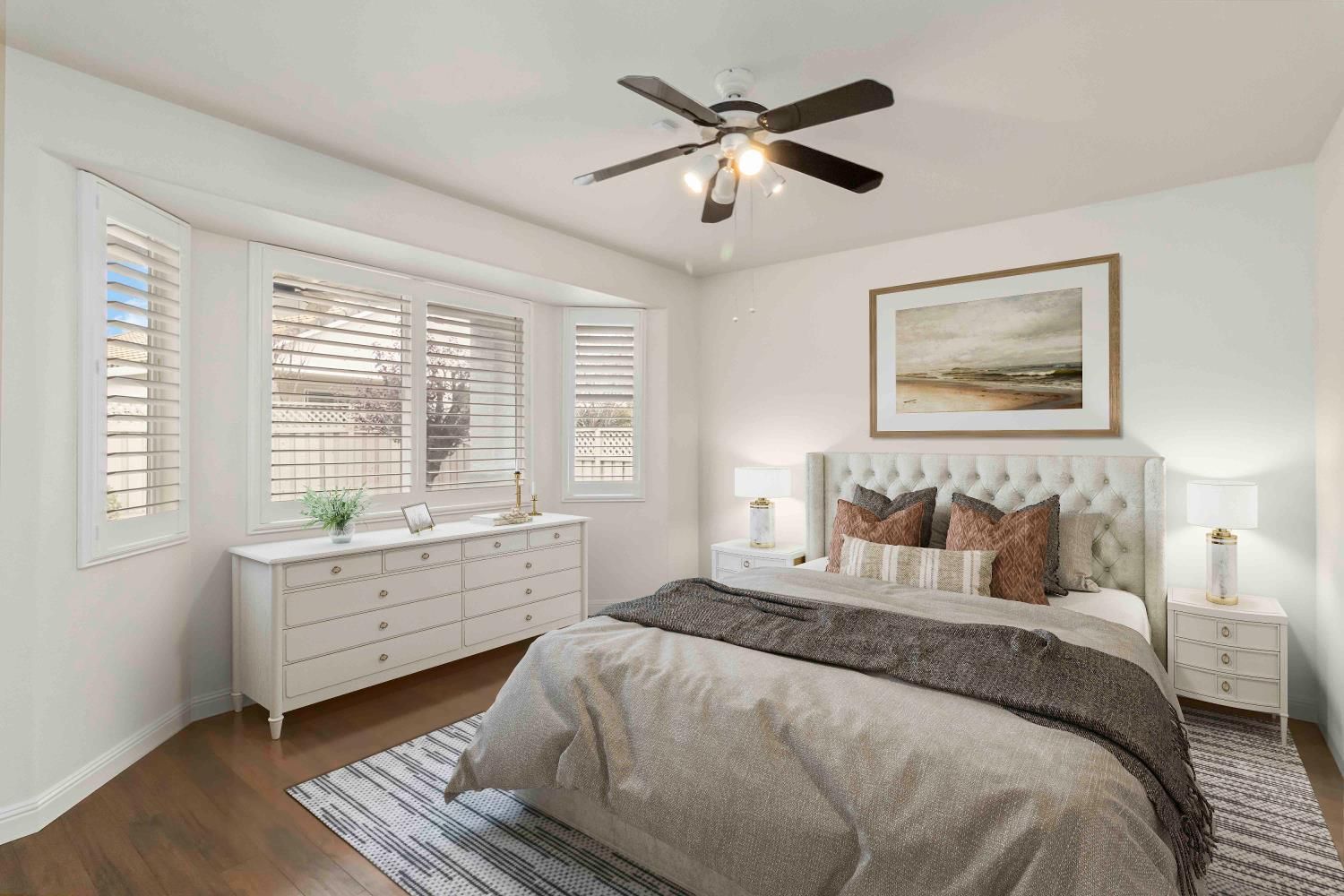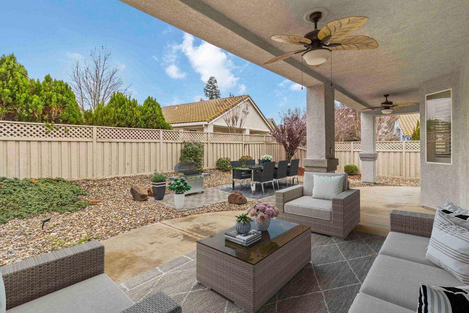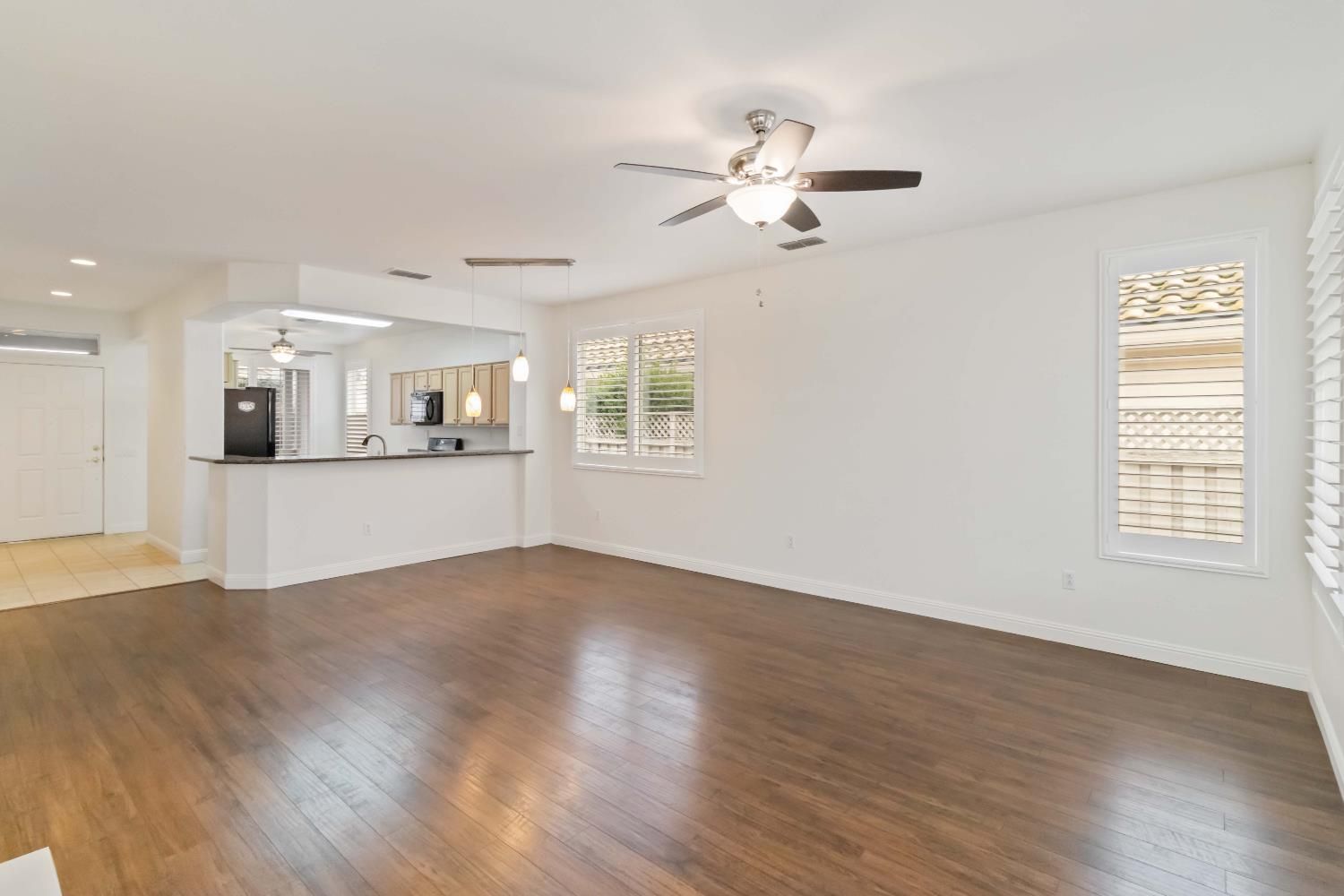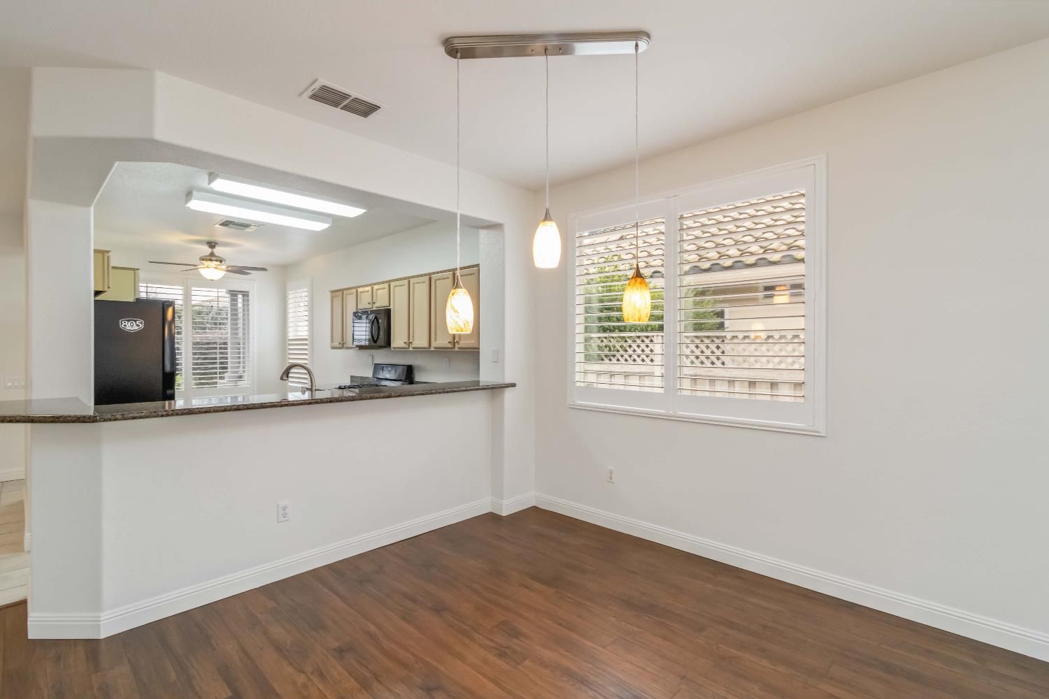 This beautifully maintained 2-bedroom, 2-bath home offers 1,343 sq ft of comfortable living space in the highly desirable Sun City Roseville 55+ Active Adult Community. The open and inviting floor plan features granite countertops, plantation shutters, and durable laminate flooring, creating a stylish yet low-maintenance living space. Interior freshly painted with new bathroom light fixtures and hardwoord throughout. The natural light flows seamlessly through the living room into the kitchen and dining areas, perfect for everyday comfort. Step outside to a nice covered patio, ideal for relaxing mornings or evening gatherings while enjoying the peaceful surroundings. Located in a vibrant, resort-style community with exceptional amenities, this home offers the perfect blend of comfort, convenience, and active adult living. Virtually staged.