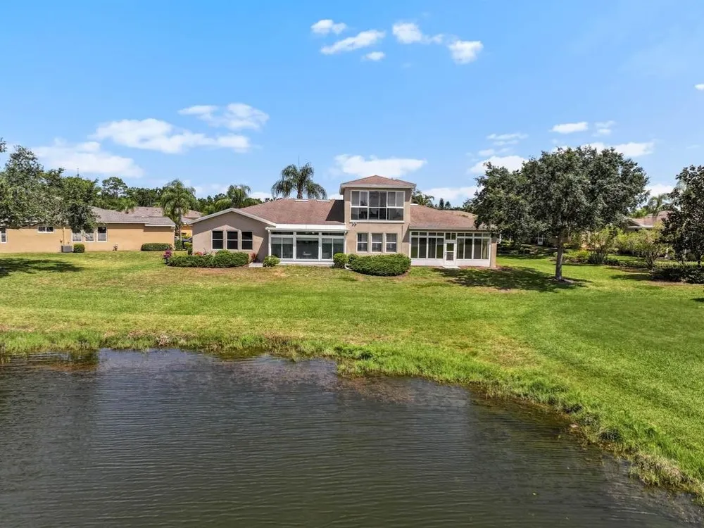 Seller says bring offers and they will be considered and they are currently offering $3000 to the buyer for upgrades or closing costs. Some photos virtually staged. This lovely home boasts 2 master suites both overlooking outstanding water view. Your guests may never leave if you offer them the second floor suite with the VIEW. Florida Room with large windows as well as balcony overlooking the water with large windows. There is a 3rd bedroom and 3rd bath and interior utility room and don't miss the plantation shutters. Large foyer and courtyard entry as well as 2 separate garages. There is an energy efficient tankless water heater. The home is equipped with natural gas heat and stove. There is an oversized brick driveway. This is a one of a kind large Kings Point home. Roofing was replaced August 2025. Kings Point boasts 2 large clubhouses one with 850 seat theatre the other with casual dining, full service bar both with so many clubs and activities. The 2020 state of the art fitness center and spa is there for resident use. Golf carts are welcome and can be used as a second vehicle to go to the post office, Dr visits and lots of shopping. The Kings Point location is not far from the Gulf award winning beaches, Tampa and Sarasota airports as well as Tampa's cultural and sporting events. Come to Kings Point and egin living the carefree lifestyle in the sunshine.