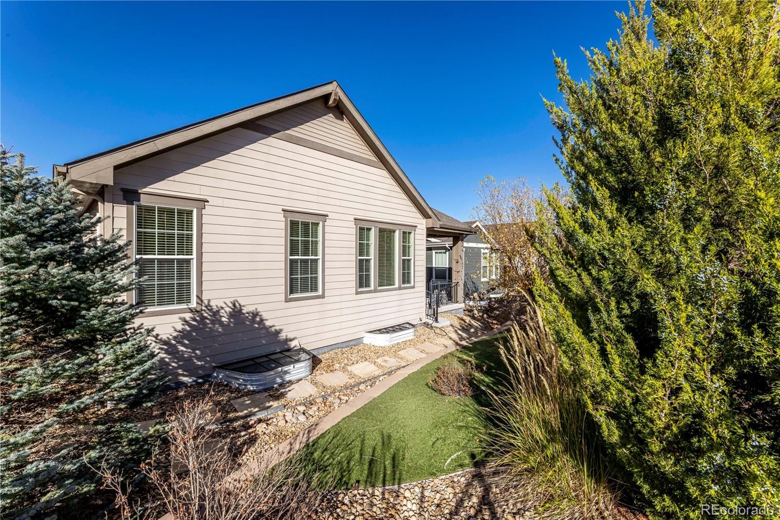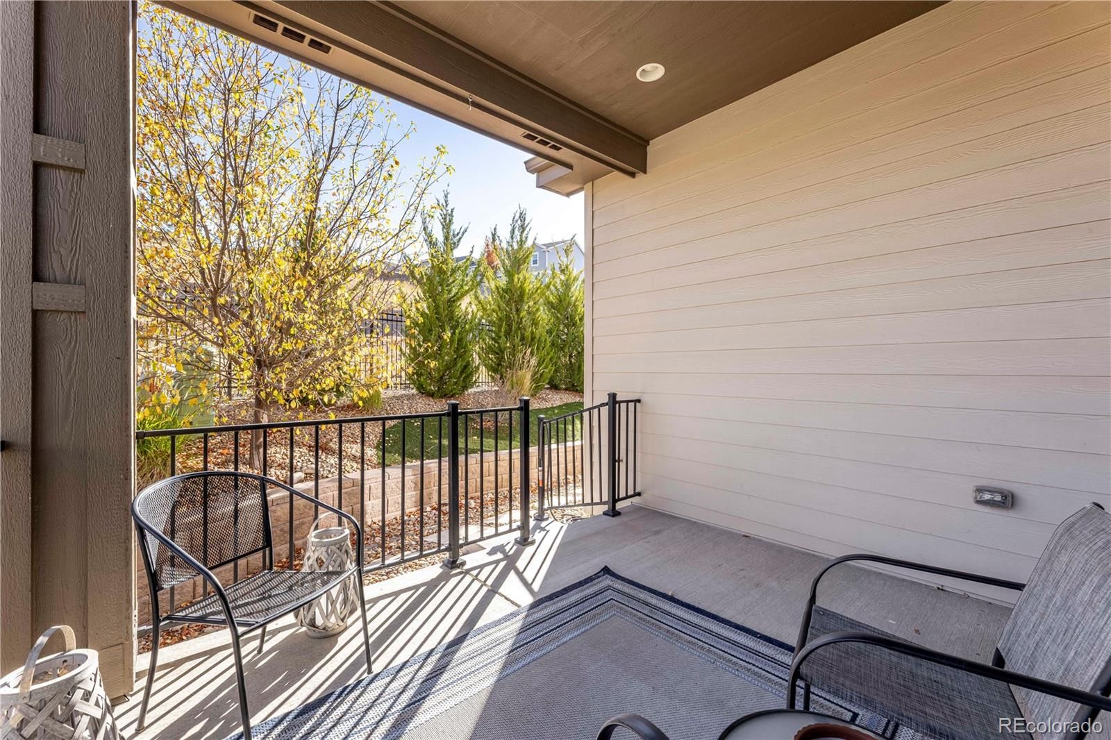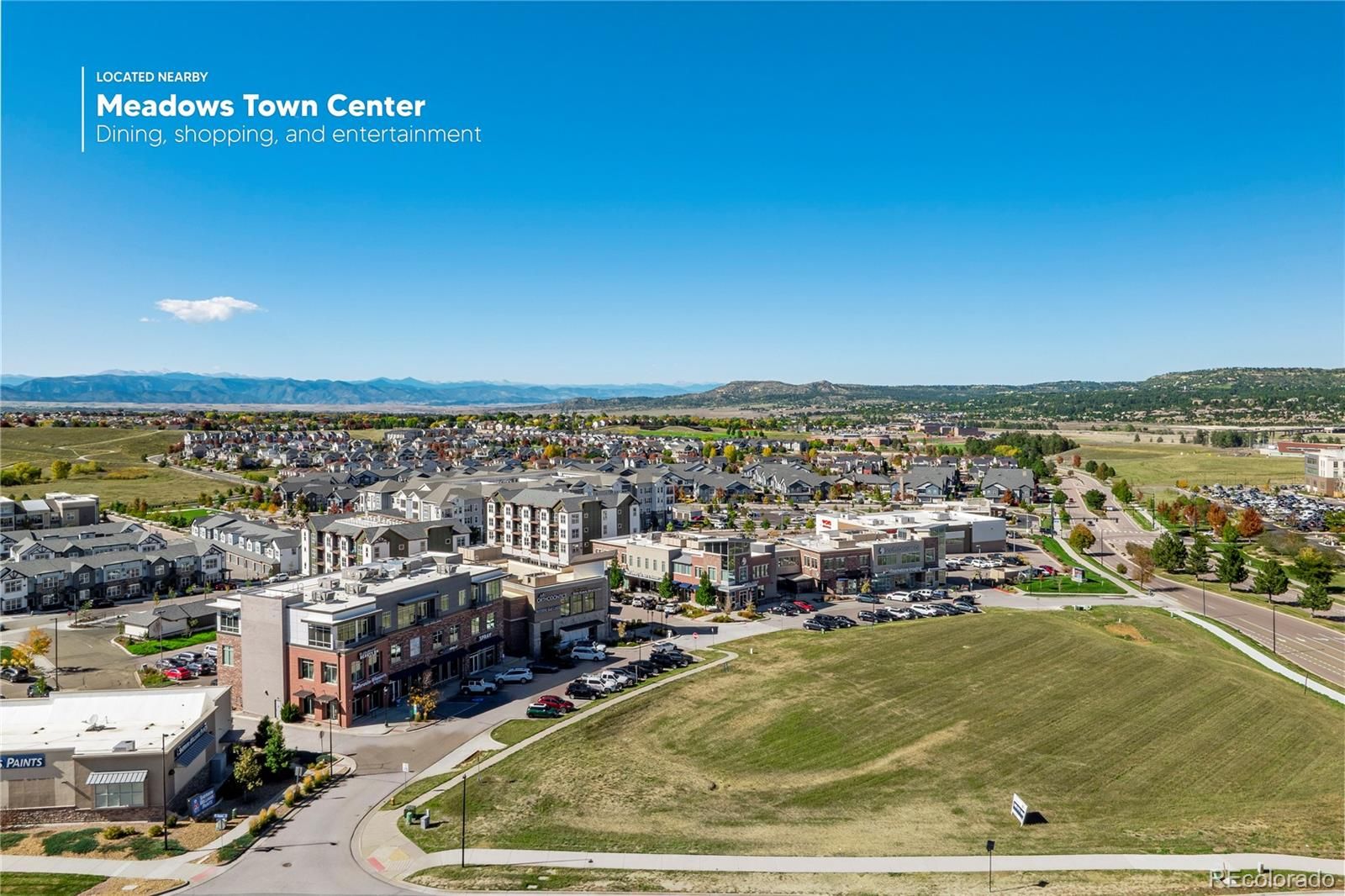 Highly desirable main floor living in this ranch style home, located on a cul de sac and backing to a greenbelt and walking path. Welcome to New Haven at The Meadows, a low maintenance community where the HOA takes care of your front lawn and landscaping, as well as snow removal of your driveway and sidewalk. The open floor plan features high ceilings, 8 foot doors, wood floors, and lots of natural light! The Primary Suite has an oversized bathroom with dual sinks, quartz counters, large shower, and huge walk in closet that leads to the oversized laundry room. A modern sliding door hosts the other 2 bedrooms and full bathroom, providing privacy and separation. The kitchen has an oversized island, quartz counters, stainless appliances, upgraded cabinets with glass doors, large pantry, tile backsplash, and a 5 burner gas cooktop. The family room has a fireplace, mantel and access to the patio, while the adjacent dining room has a coffered ceiling. Completing the main floor is an office or sun-room with a wall of windows; mud room with bench; laundry room with utility sink and cabinets, and with direct access into the Primary Suite closet; powder room with quartz counters; and foyer/entry. 2 car attached garage, covered front porch, covered back patio, low maintenance fenced, private backyard. Large unfinished basement, furnace with whole house humidifier, stubbed for future bathroom. Newer roof. Also part of the Meadows HOA -- access to the Grange and Taft House pools, plus trash and recycling pickup. Walking distance to the Meadows town center, regional hospital, shops, restaurants and more. Easy access to I-25, Downtown Castle Rock, Denver and Colorado Springs. Close to parks, trails and schools -- in nationally recognized Douglas County School District. Low maintenance living, a must see!