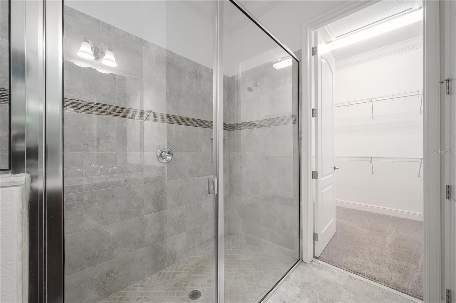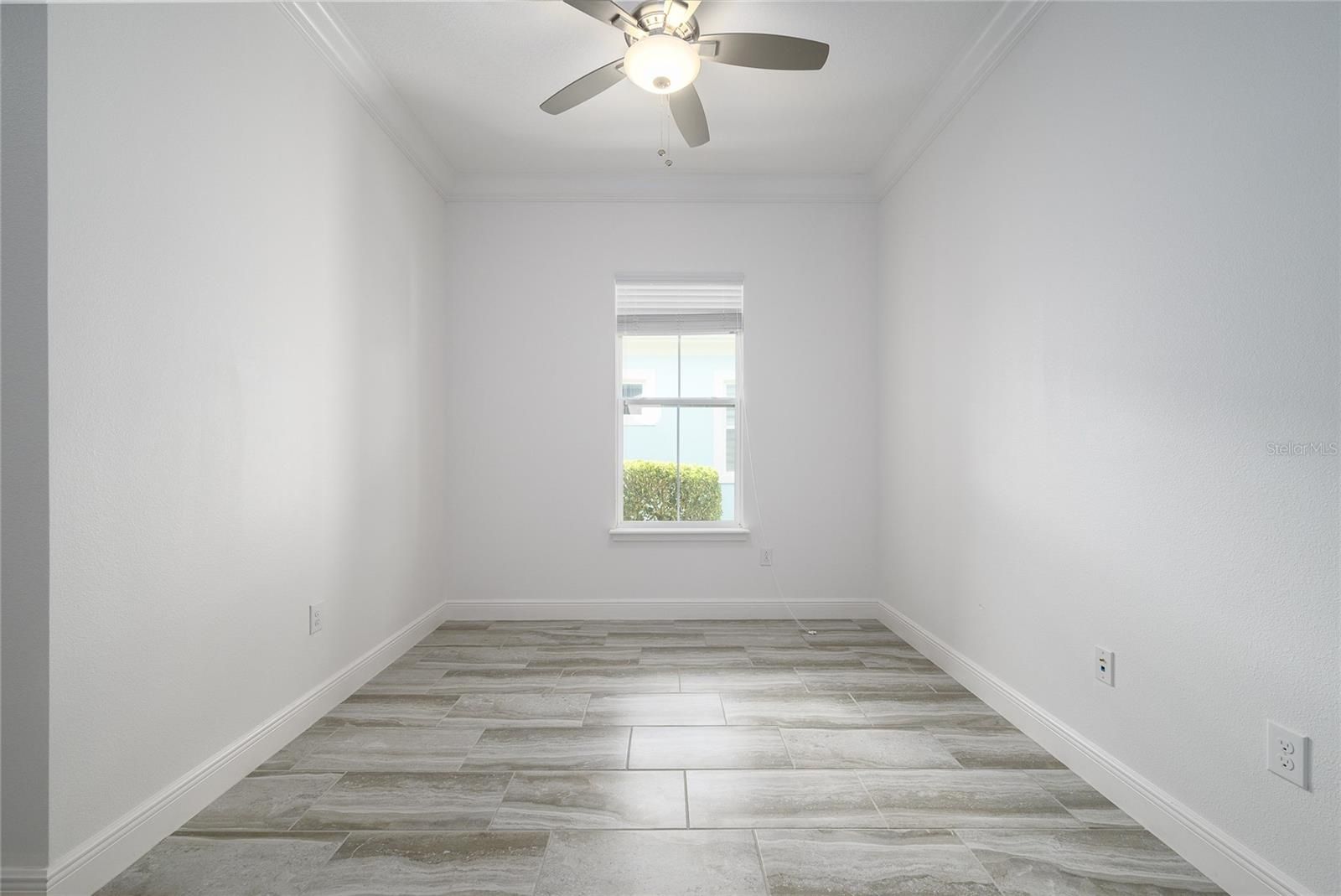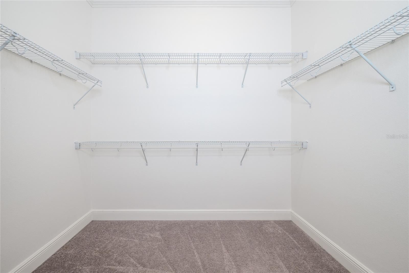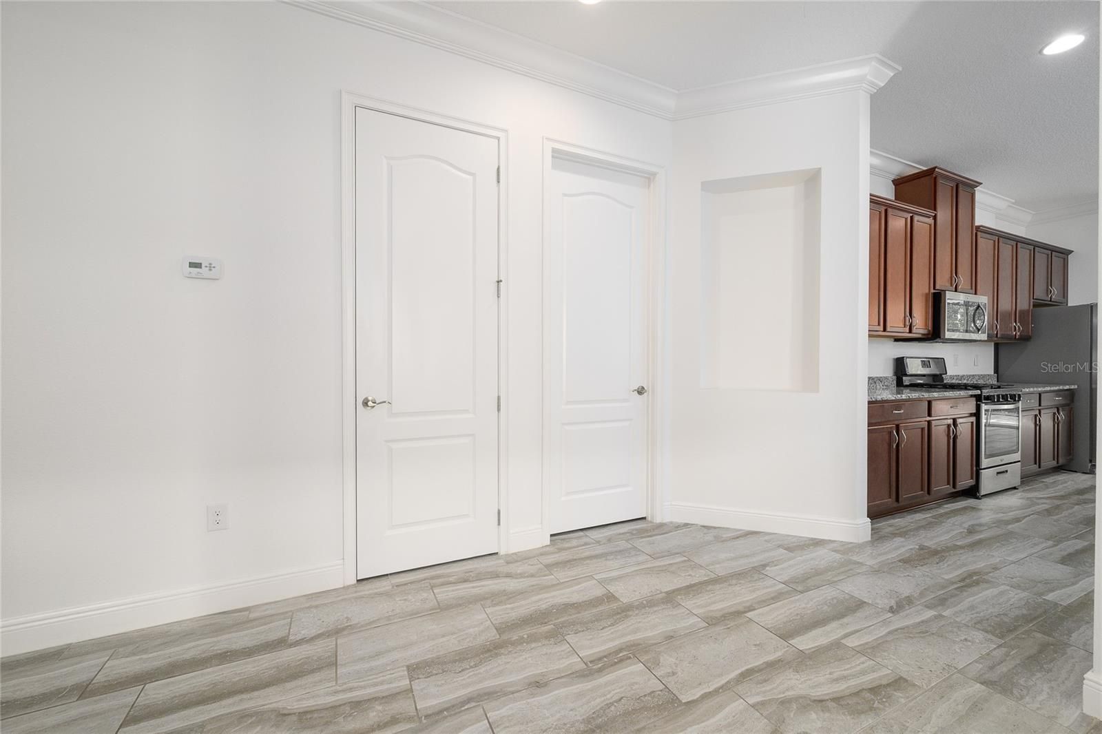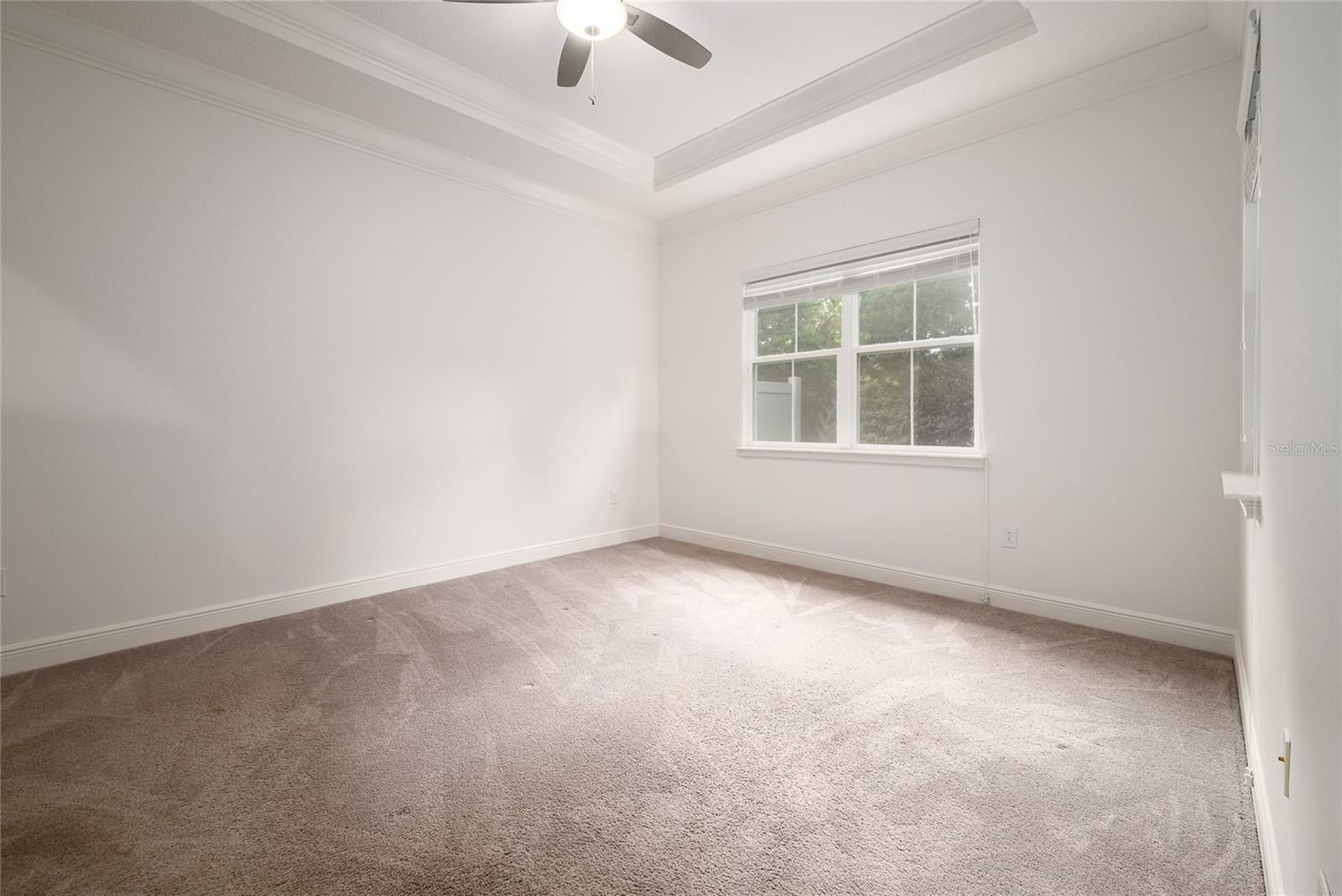 - Ceiling Fan(s), Crown Molding, Eat-in Kitchen, High Ceilings, Living/Dining Room, Main Level Primary, Split Bedrooms, Stone Counters, Thermostat, Walk-In Closet(s), Window Treatments
