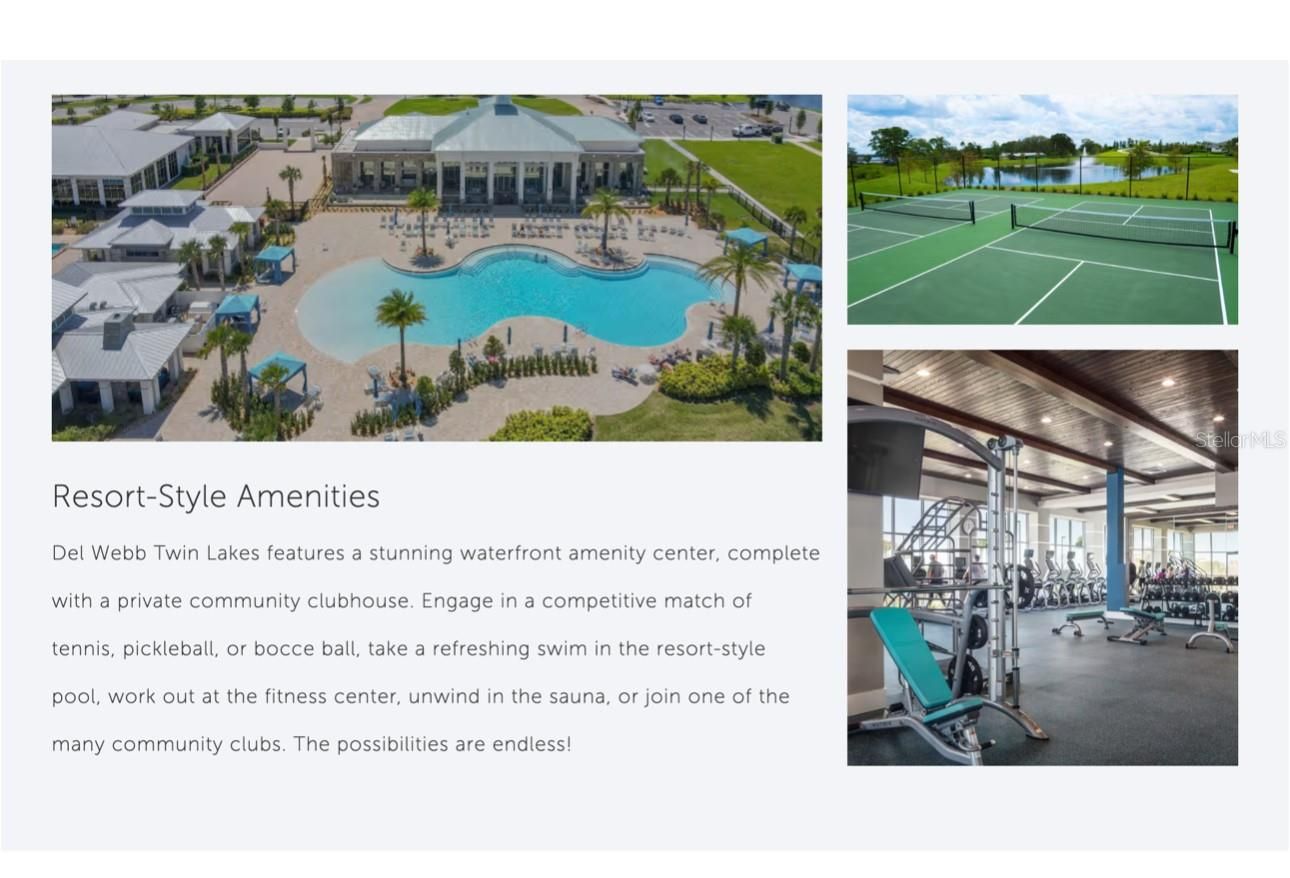 - Includes: Basketball Court, Clubhouse, Fence Restrictions, Fitness Center, Gated, Maintenance, Pickleball, Pool, Recreation Facilities, Sauna, Security, Spa/Hot Tub, Tennis Court(s), Wheelchair Accessible