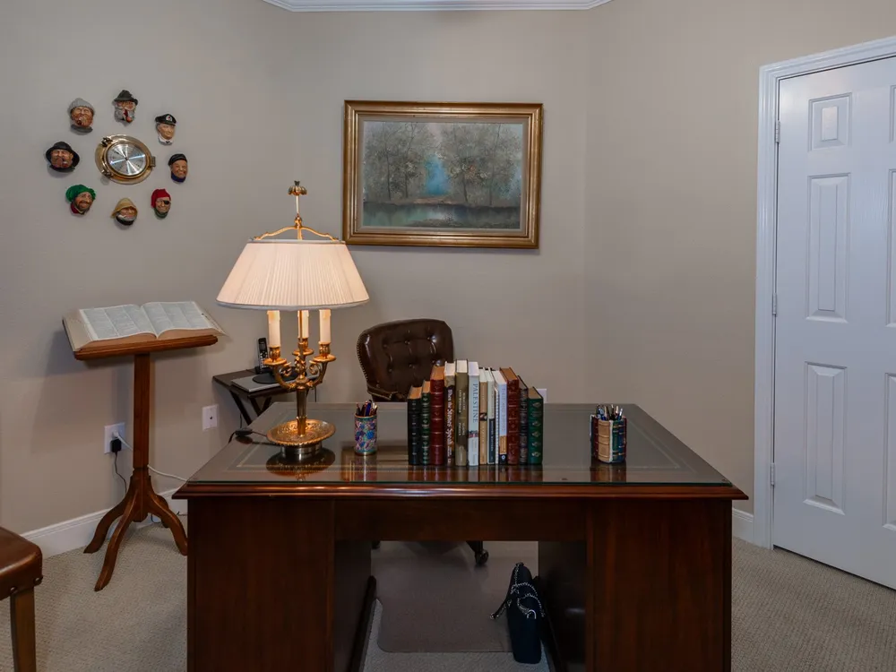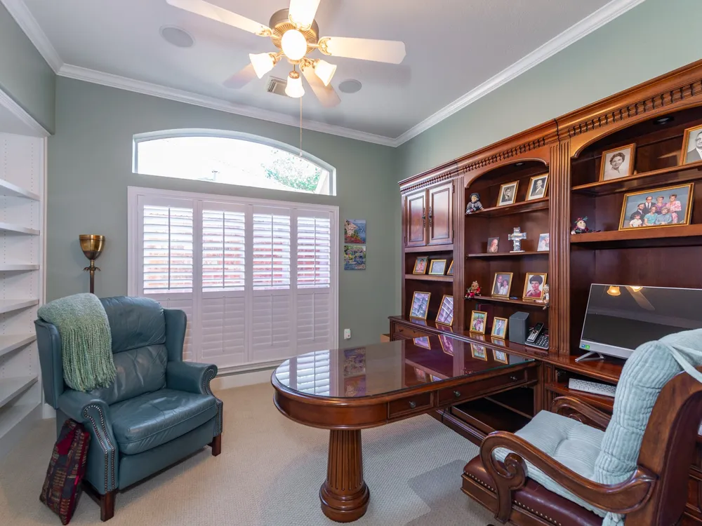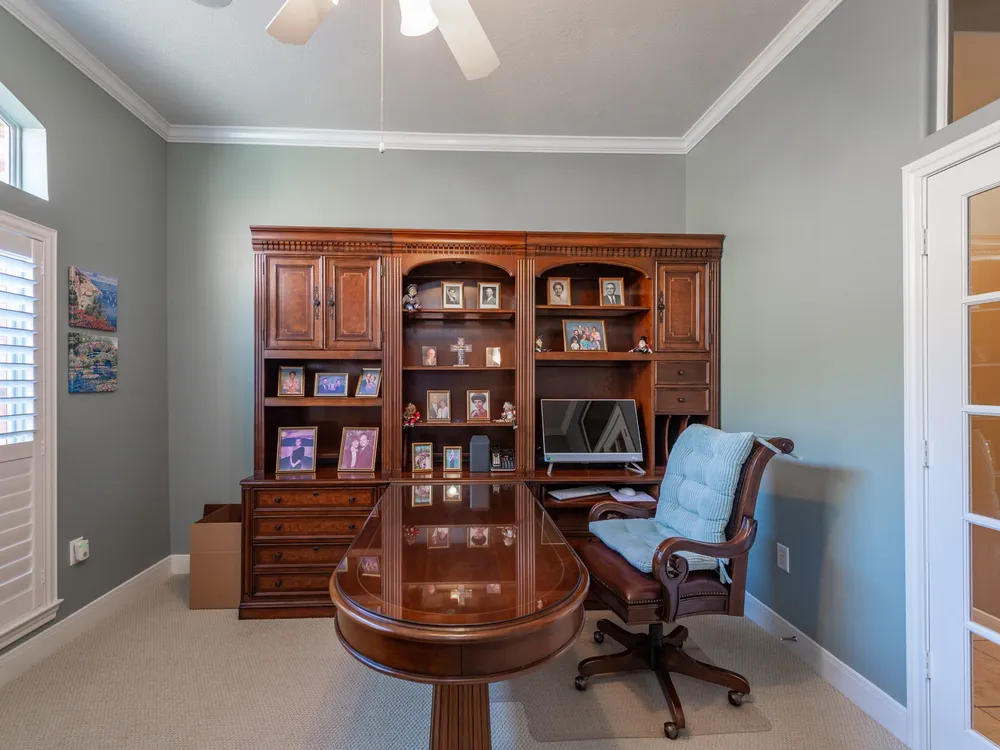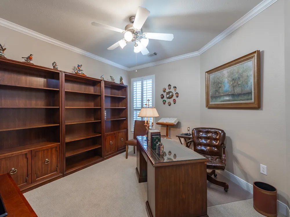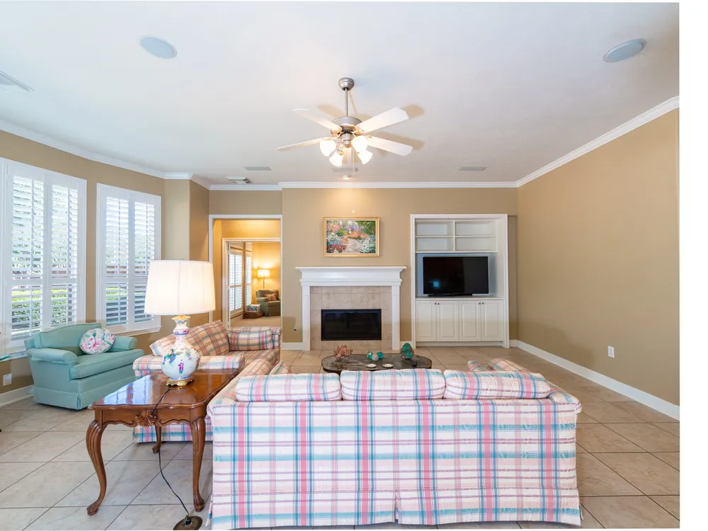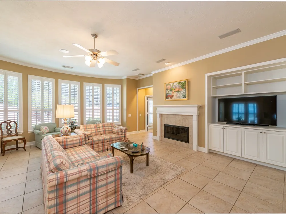 Experience refined living in this beautifully updated 3-bedroom, 2.5-bath home in the premier 55+ community of Heritage Grand. Elegant plantation shutters, crown molding, and granite countertops highlight the home’s timeless design. The open layout offers tile flooring in main areas, new carpet in bedrooms, built-in shelves in the study, and a cozy fireplace. The primary suite provides a relaxing escape with double sinks, a jetted tub, and separate shower. Thoughtful updates include a 2019 roof, new garage door opener, and more. Enjoy morning coffee on the screened back porch surrounded by lush landscaping, exterior lighting, and a French drain. Enjoy resort-style amenities—heated pool, fitness center, pickleball, ballroom, clubhouse, and endless social events. Heritage Grand is more than a neighborhood—it’s a vibrant, close-knit community where every day feels like a new adventure. Discover the lifestyle you’ve been dreaming of and make this your haven today!.
