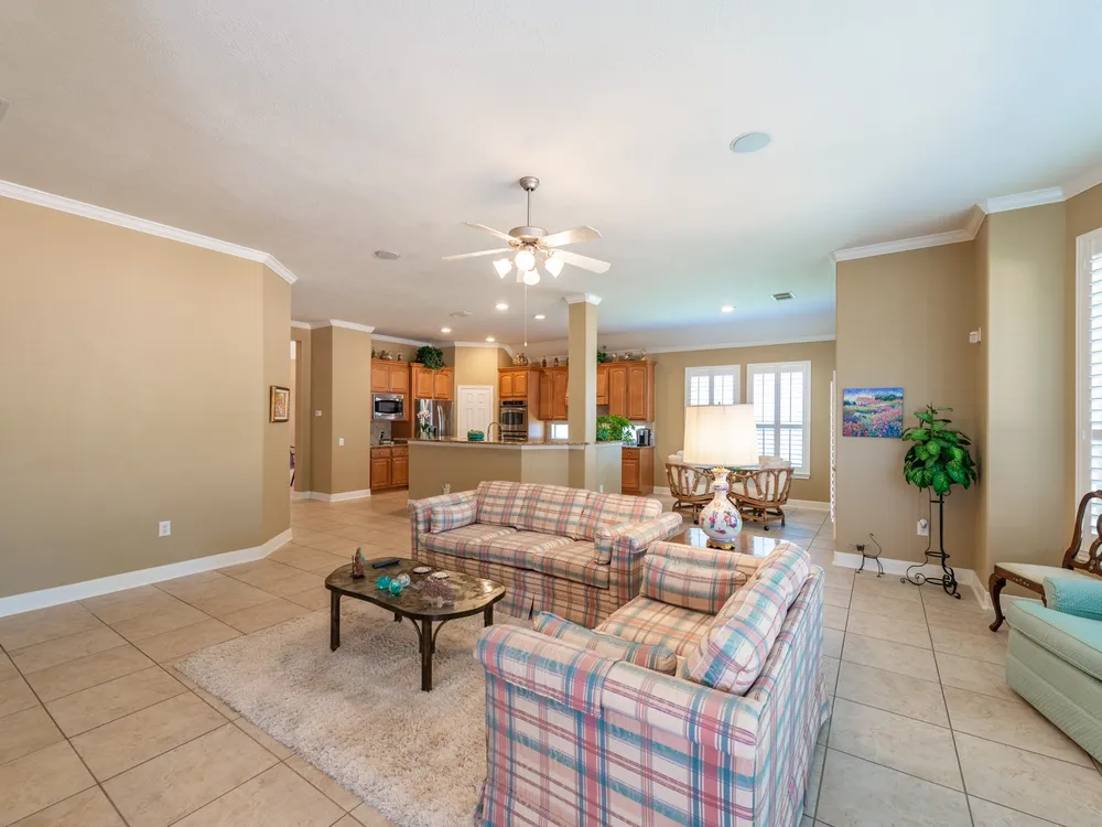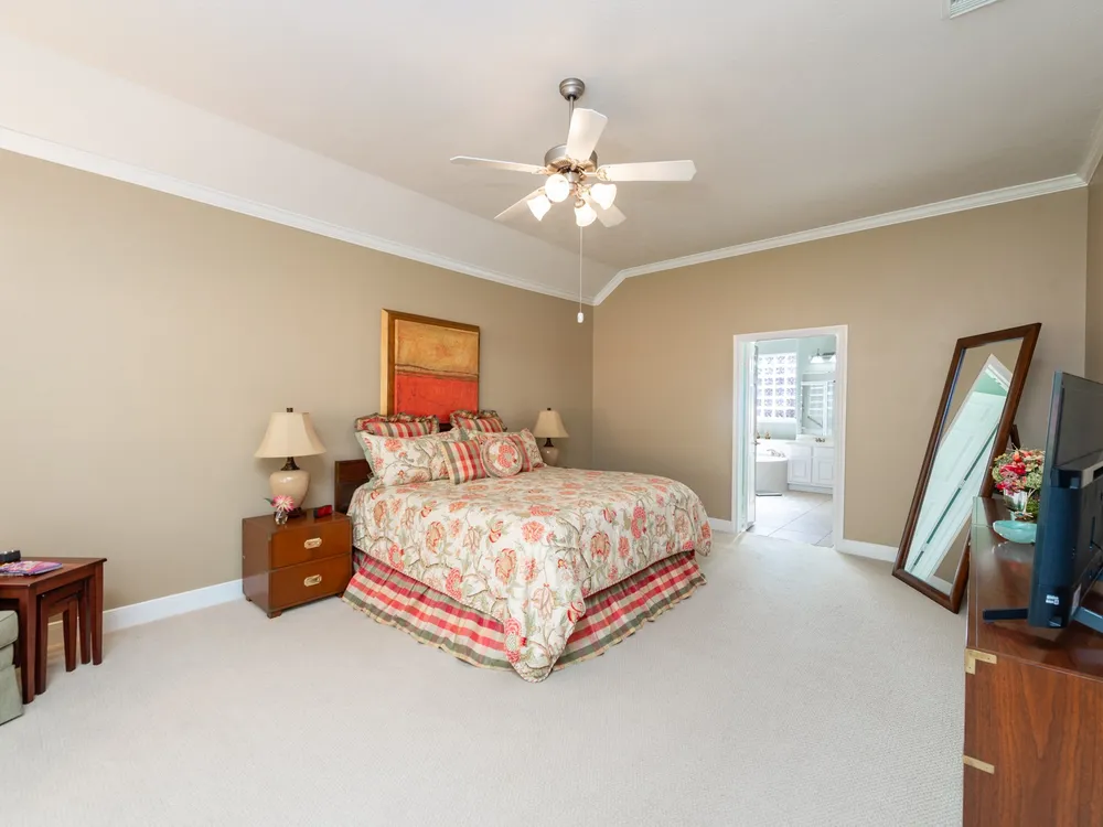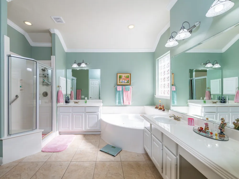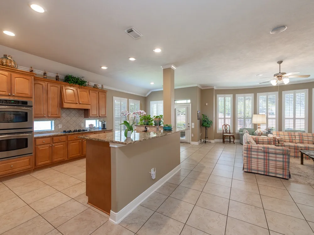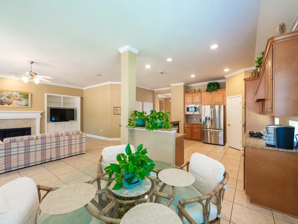 - Breakfast Bar, Crown Molding, Double Vanity, Entrance Foyer, High Ceilings, Jetted Tub, Kitchen/Family Room Combo, Bath in Primary Bedroom, Pantry, Separate Shower, Makeup/Vanity Space, Walk-In Pantry, Ceiling Fan(s), Kitchen/Dining Combo, Programmable Thermostat