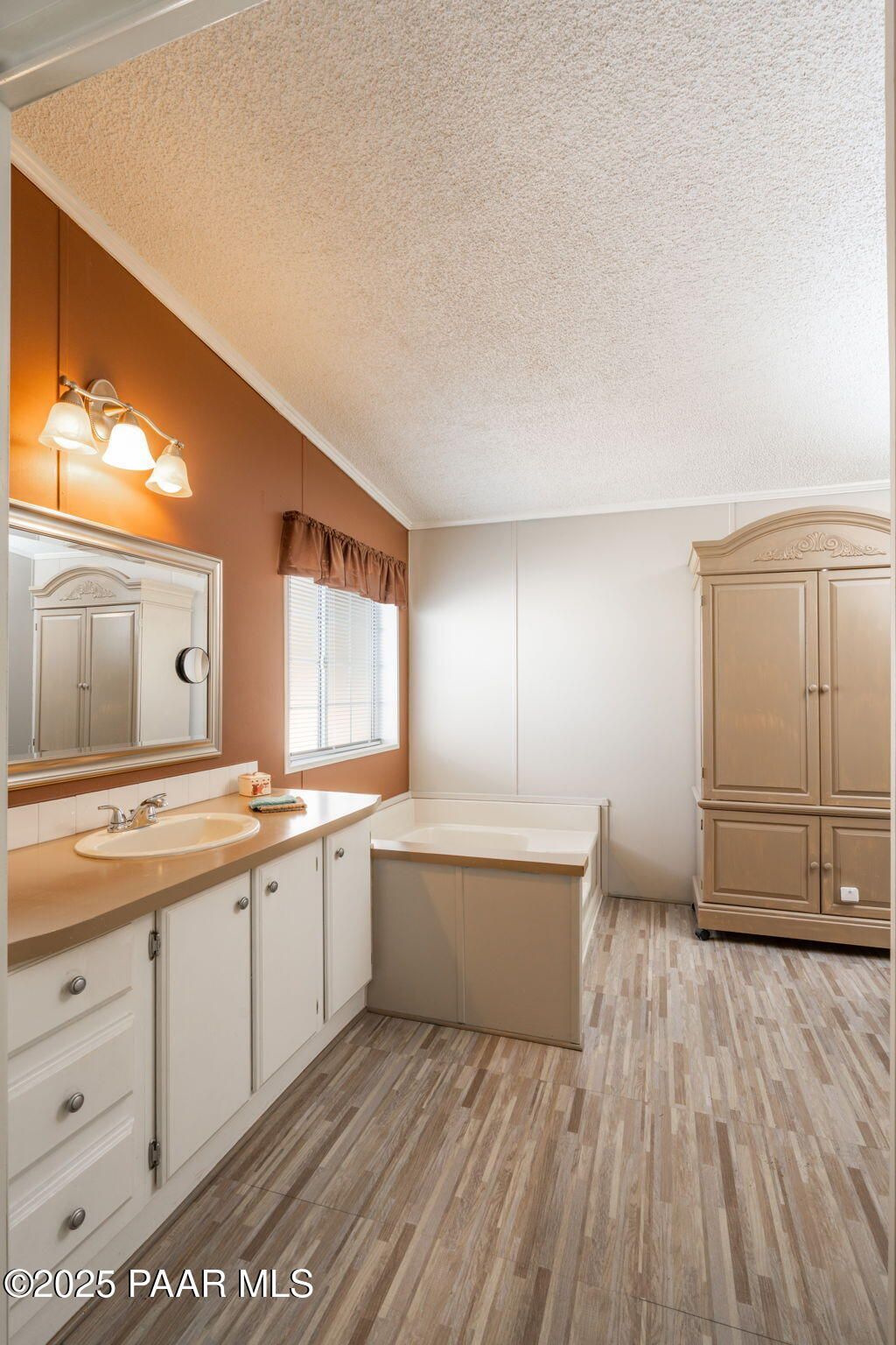 - Ceiling Fan(s), Separate/Formal Dining Room, Soaking Tub, Kitchen Island, Laminate Counters, Single Living Level, Primary Downstairs, High Ceilings, Walk-In Closet(s), Washer/Dryer Hookup