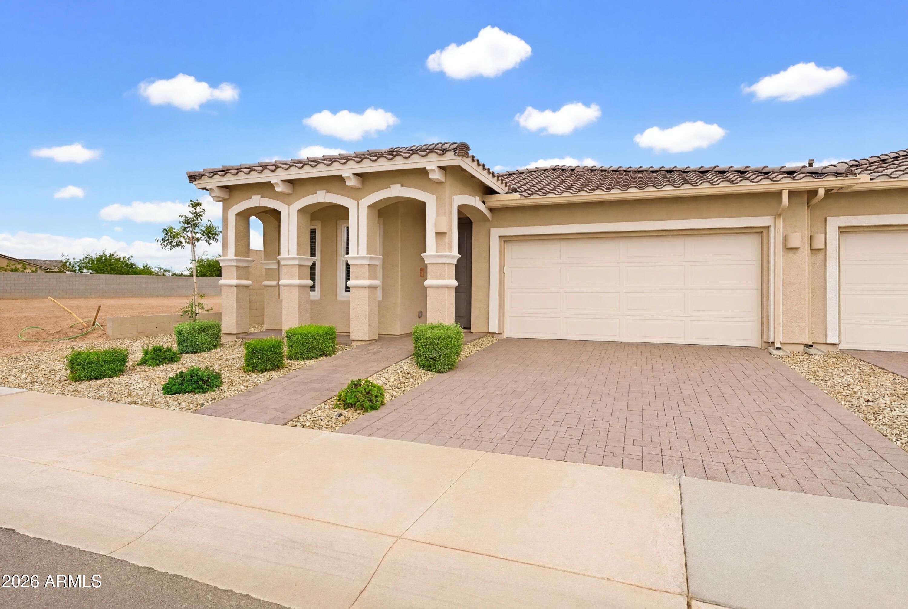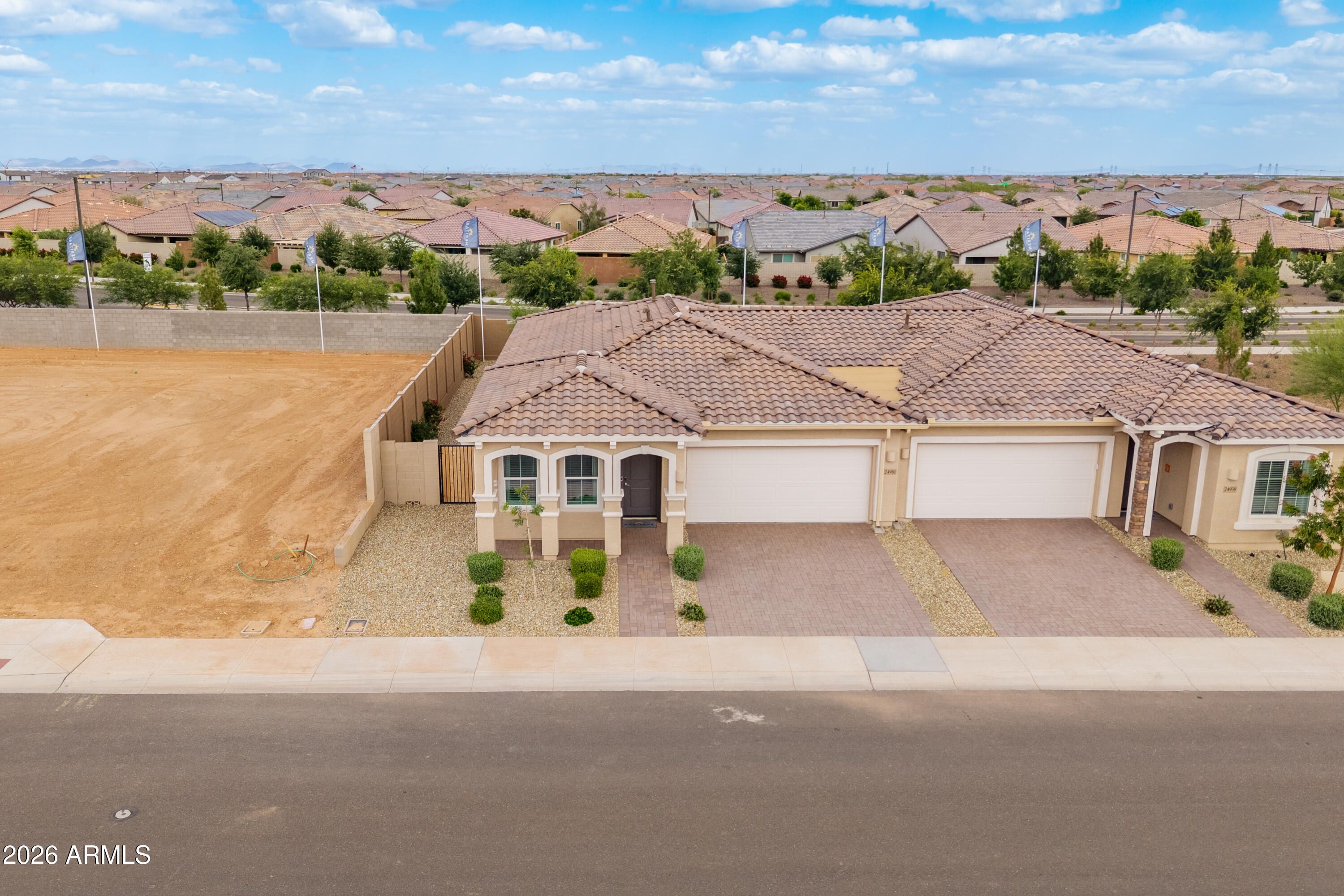 Former Lennar model home with designer furnishings available on a separate bill of sale! Located in the gated 55+ community of Heritage at Asante, this highly upgraded single-story home offers a functional layout designed for easy living and entertaining. The open kitchen, dining and Great Room flow seamlessly to a covered patio, creating the perfect space for indoor-outdoor enjoyment. The spacious kitchen features a large island, walk-in pantry and stylish pendant lighting. The private owner's suite is tucked at the rear of the home, while a guest bedroom and versatile den are positioned toward the front. Enjoy resort-style amenities, community events and the active lifestyle Heritage at Asante is known for.