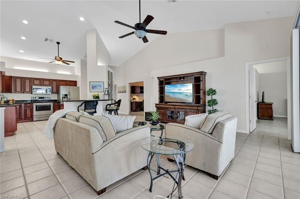 Welcome to 24973 Bay Cedar Drive, a private pool-side retreat with popular great room floor plan and golf course views. Situated on a peaceful, tree-lined cul-de-sac, this beautifully updated home combines privacy, comfort, and convenience. This preferred open floor plan features a central great room that flows effortlessly into the kitchen and outdoor entertaining areas, creating a bright and welcoming environment with excellent flow. Soaring cathedral ceilings enhance the sense of space, while large full wall sliding glass doors invite abundant natural light and offer views of the golf course. Step outside to your renovated pool deck-- immaculately maintained, complete with imported marble flooring and a premium picture frame lanai cage, perfect for relaxing or entertaining guests. The spacious backyard is a true highlight, offering abundant room for gardening, play, or pets. Inside, the home is designed with flexibility in mind. The third bedroom, equipped with a custom-installed Murphy bed and built-in wardrobes and dresser drawers, serves as an ideal space for a den, studio, or home office – all without compromising on guest accommodations. Notable updates include: a newer ROOF (2017), PICTURE-FRAME LANAI CAGE (2018), HVAC (2020), DECORATIVE PAVER DRIVEWAY (2019), POOL and POOL DECK renovations including marble flooring, improved pool liner, and newer pump and heater, with beautifully updated bathrooms featuring frameless glass shower enclosures with built-in tile seating, and modern cabinetry and plumbing fixtures. Perhaps most importantly, this home has **NO HISTORY OF FLOOD DAMAGE** and is located within optimal flood zone X. As a resident of Pelican Landing, you'll have access to a world-class range of amenities, including a 34-acre private island beach club, gulf access sailing, kayaking, and boat ramp, as well as 12 Har-Tru tennis courts, attended fitness center, bocce, pickleball, and more. This home is ideally located within the community, only a short walk or ride to both The Nest or Pelican Landing’s Tennis facility. Optional memberships are available for The Nest Golf Club, featuring 36 holes of championship golf and a newly renovated clubhouse. Some membership options may have a waiting list due to popularity. Schedule your visit today to experience this exceptional home and all that Pelican Landing has to offer!
