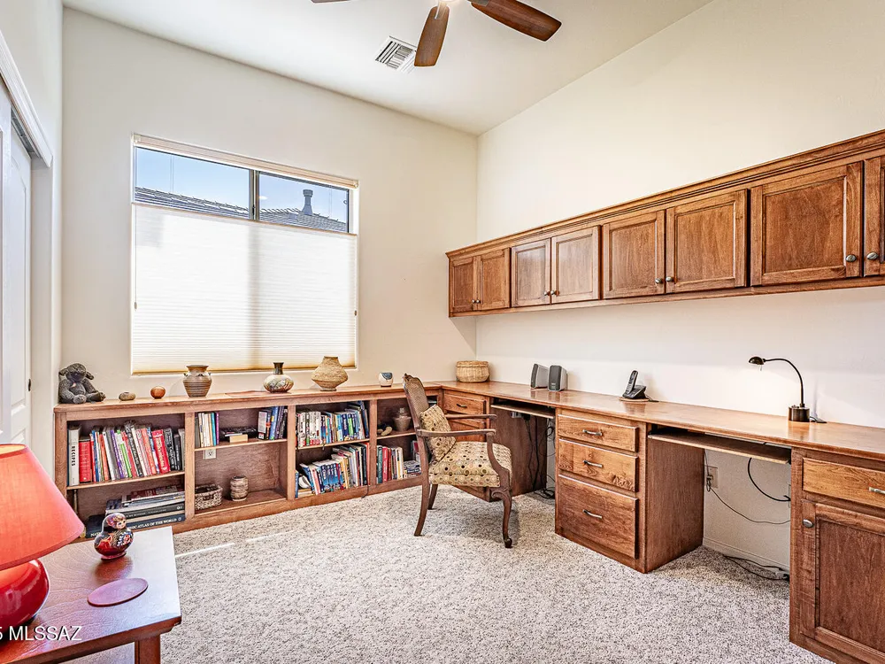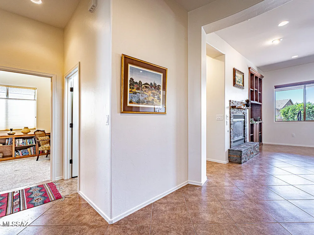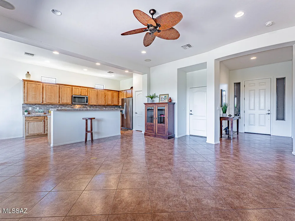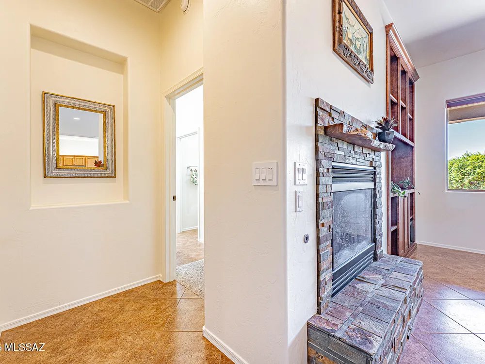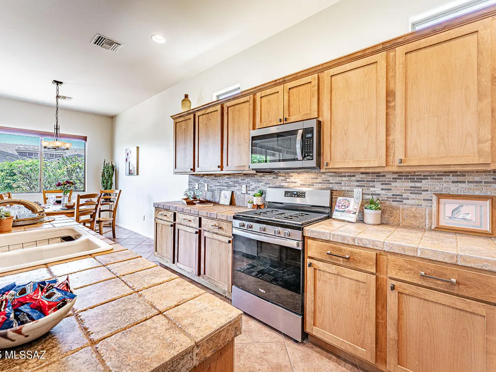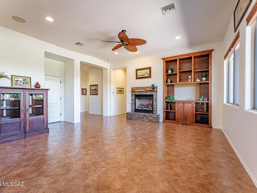 Beautiful Canoa Ranch Home, a Great Room Floorplan, 3 Bedrooms 2 Baths and a 2 Car Garage. Upgrades are throughout this home, Upgraded Kitchen - stainless steel appliances, custom tiled counter tops, back splash and upgrade cabinets with pull out shelves, slate tiled fireplace along with a decorative custom built-in unit, The 3rd bedroom has wonderful built-in desk, cabinets and bookshelves. solar on the roof. The Back Yard would be great for entertaining, citrus trees, a beautiful low care yard. Must See!
