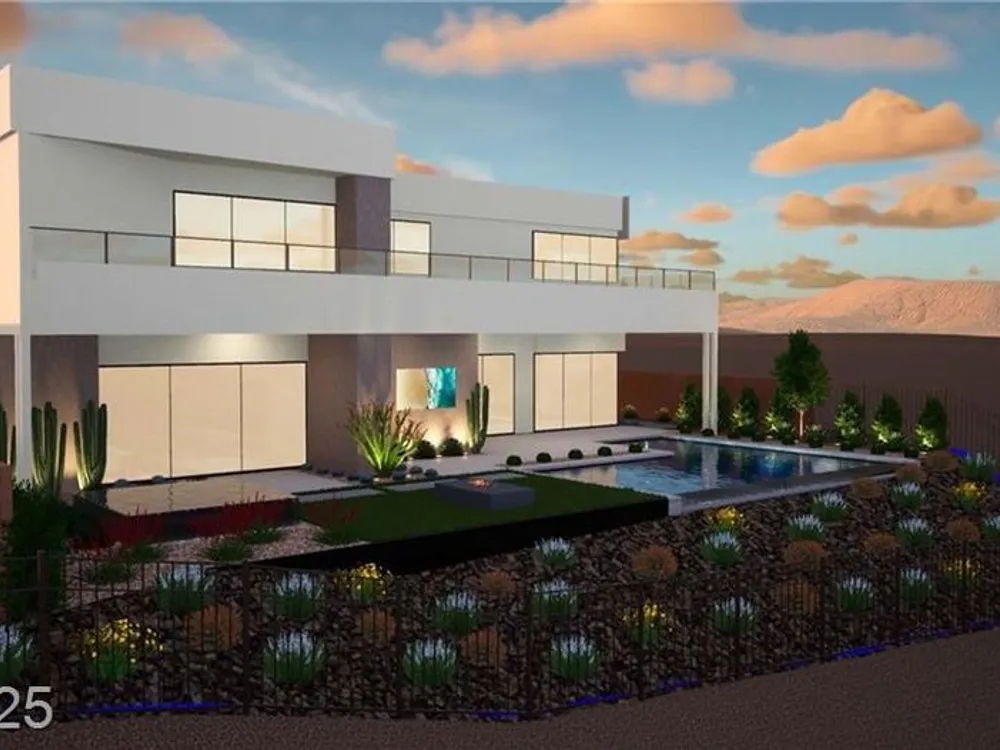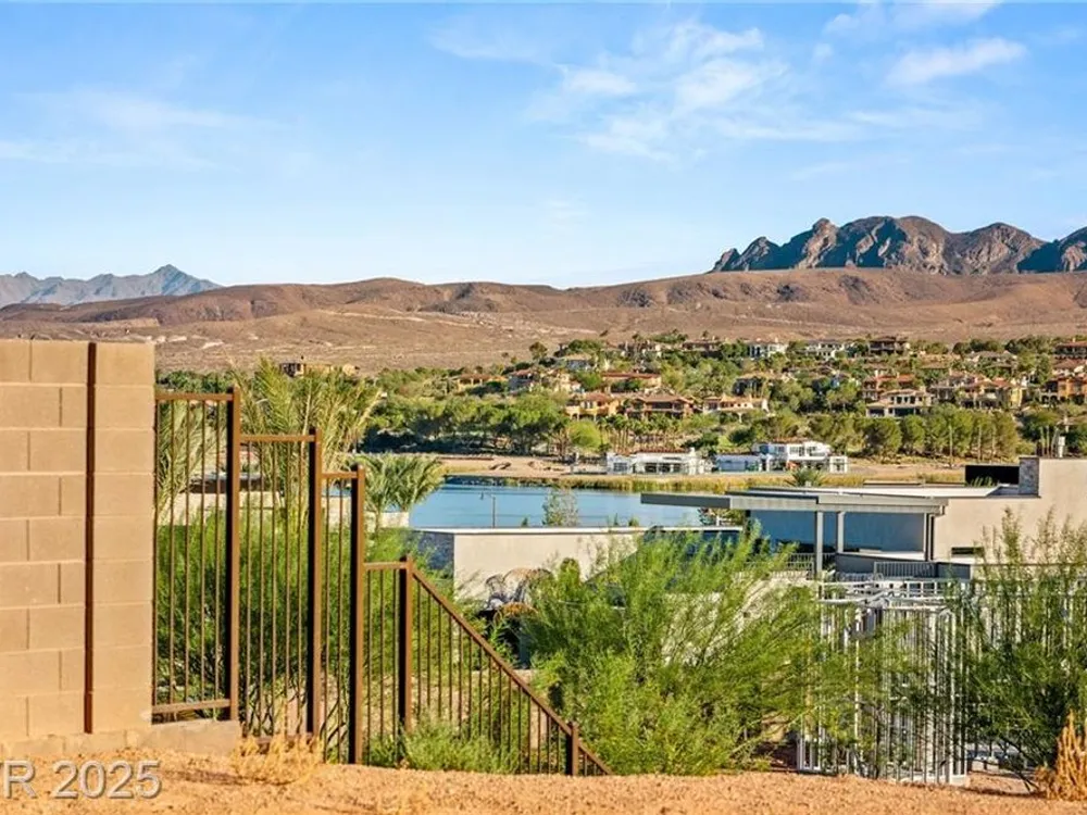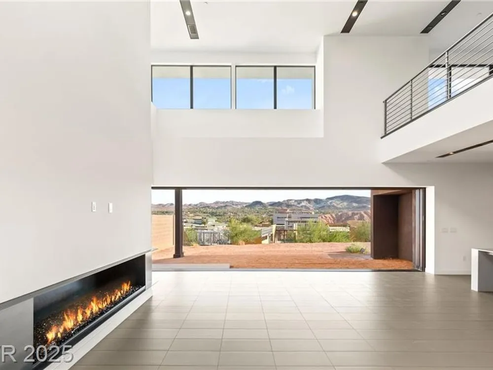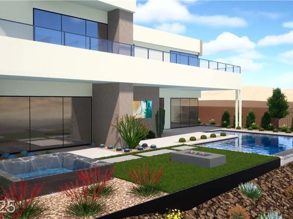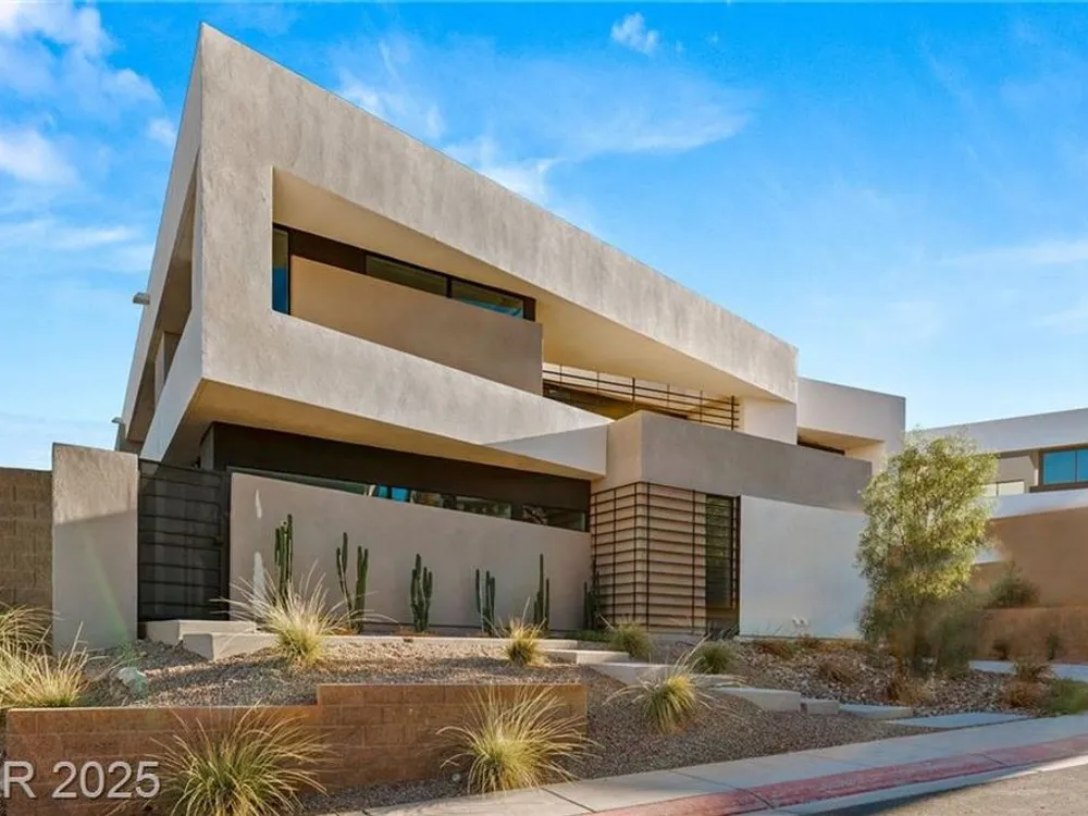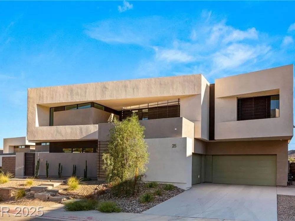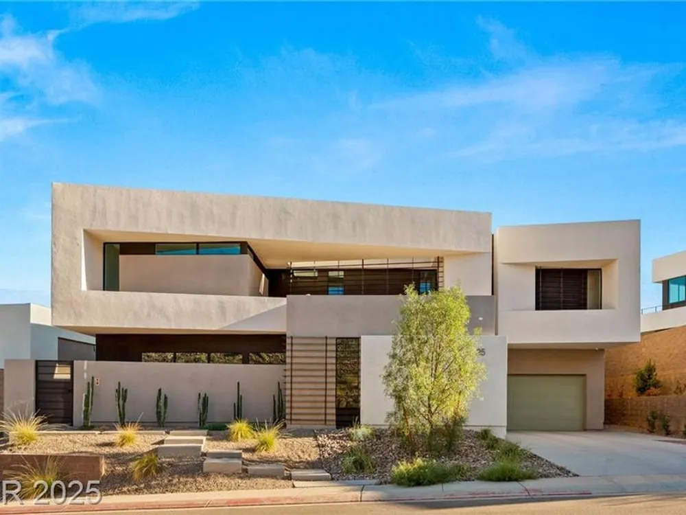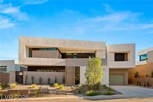 Discover the elegance of this Architecturally Significant Home by Blue Heron at Caliza, a lakeside escape perched on an elevated lot overlooking the lake and mountains within the exclusive double guard-gates of this exclusive community located on Lake Las Vegas’ desirable North Shore. Renowned Vegas Modern designs grace this 7,690-square-foot, four-bed, five-bath home. This home features a seamless biophilic floor plan that blurs the lines between indoor and outdoor spaces and upgrades including Vegas Modern ceilings and entry rock steppers. The Great Room features breathtaking views 108-inch upgraded linear gas fireplace and expansive pocket door. Signature Vegas Modern Kitchen features a top-of-the-line appliance package. Ascend the floating staircase to the luxury primary suite with dual walk-in closets and a panoramic balcony. A Zen-inspired bath offers a walk-in shower, tub, and outdoor shower. Enjoy versatile spaces, including a media/theater room and an upper-level wet bar.