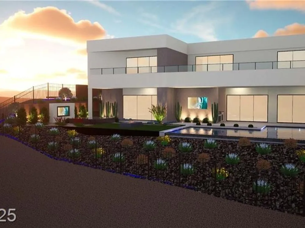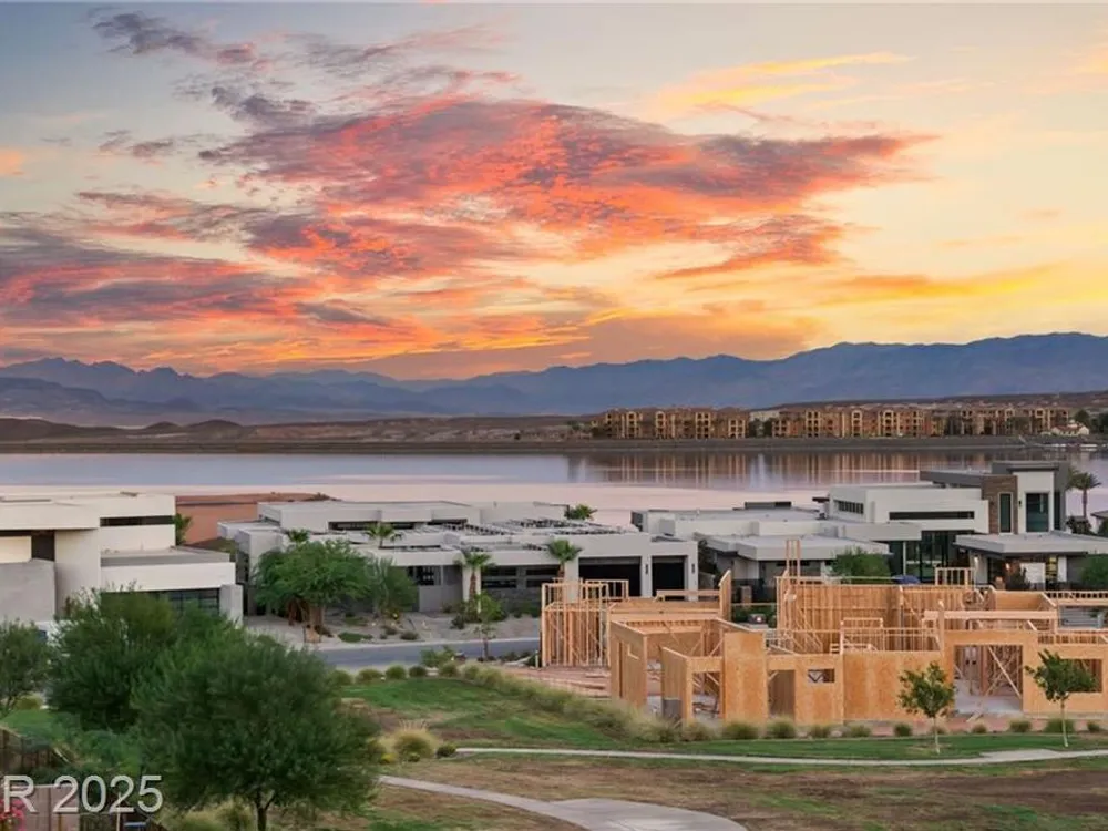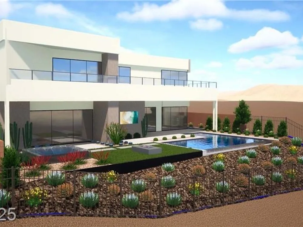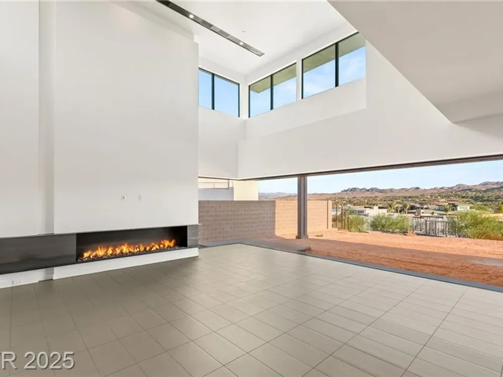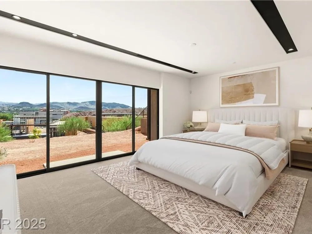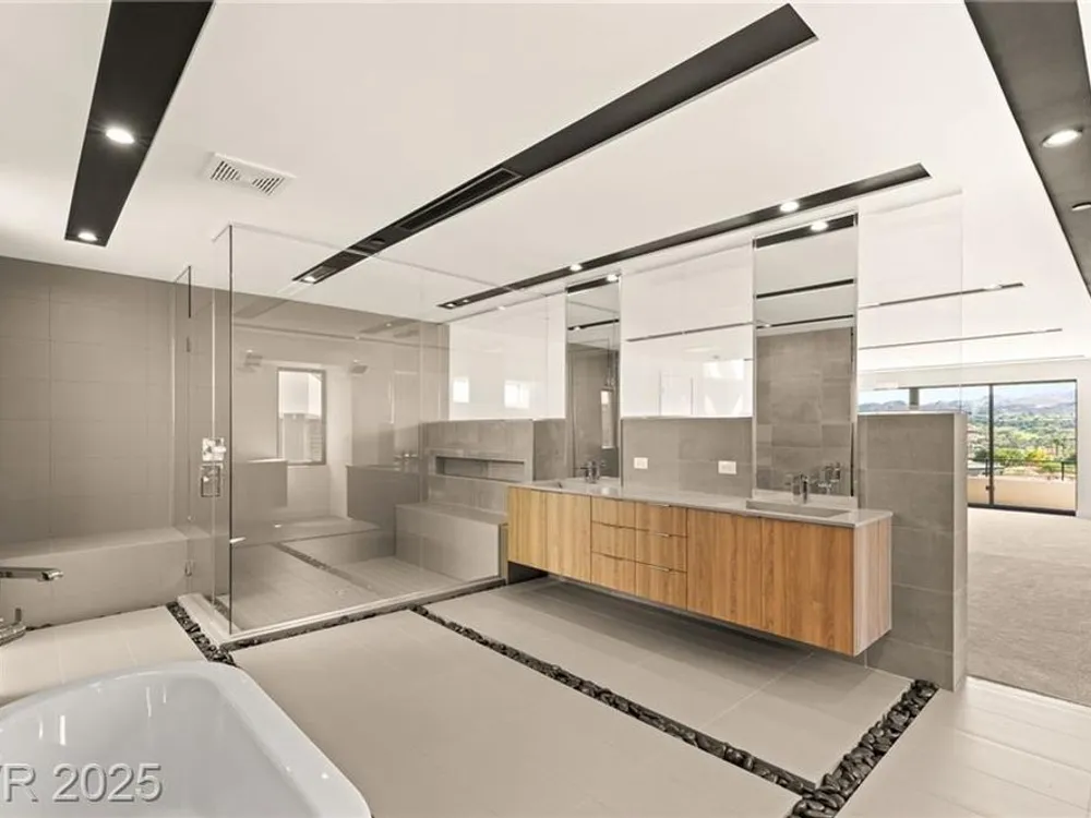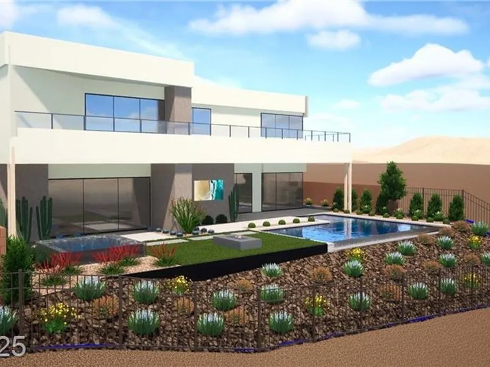 Discover the elegance of this Architecturally Significant Home by Blue Heron at Caliza, a lakeside escape perched on an elevated lot overlooking the lake and mountains within the exclusive double guard-gates of this exclusive community located on Lake Las Vegas’ desirable North Shore. Renowned Vegas Modern designs grace this 7,690-square-foot, four-bed, five-bath home. This home features a seamless biophilic floor plan that blurs the lines between indoor and outdoor spaces and upgrades including Vegas Modern ceilings and entry rock steppers. The Great Room features breathtaking views 108-inch upgraded linear gas fireplace and expansive pocket door. Signature Vegas Modern Kitchen features a top-of-the-line appliance package. Ascend the floating staircase to the luxury primary suite with dual walk-in closets and a panoramic balcony. A Zen-inspired bath offers a walk-in shower, tub, and outdoor shower. Enjoy versatile spaces, including a media/theater room and an upper-level wet bar.