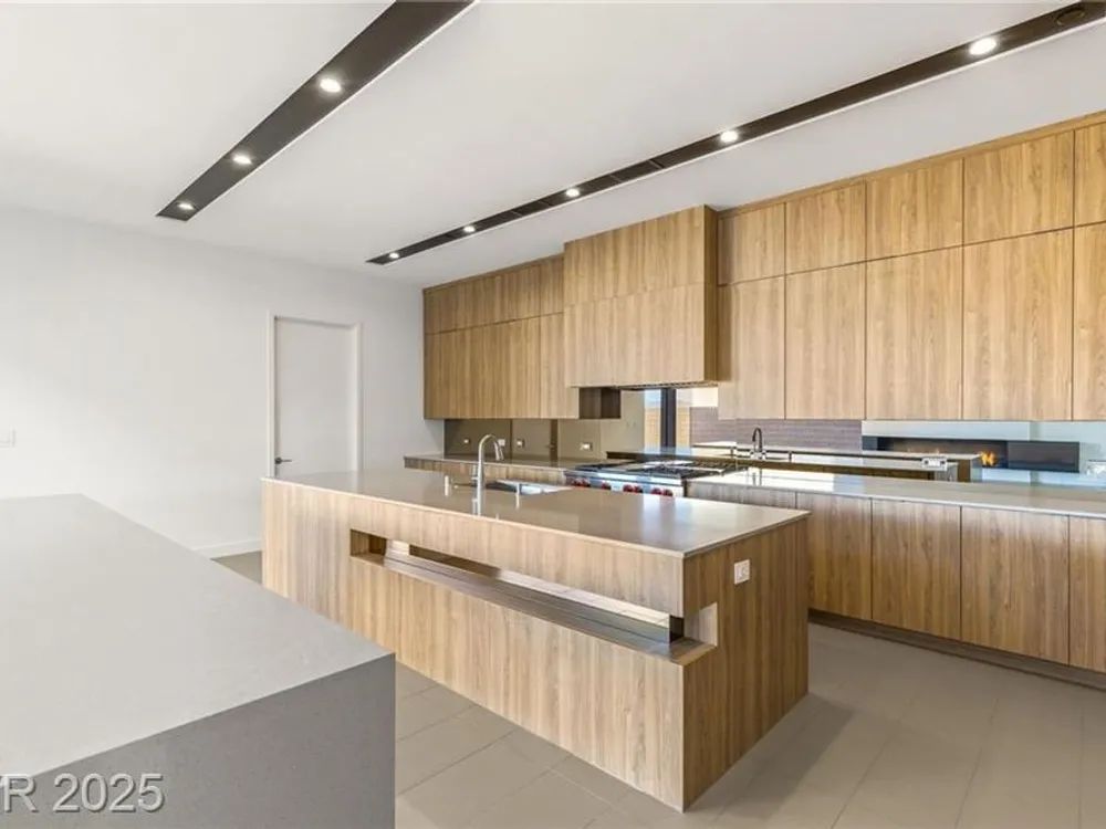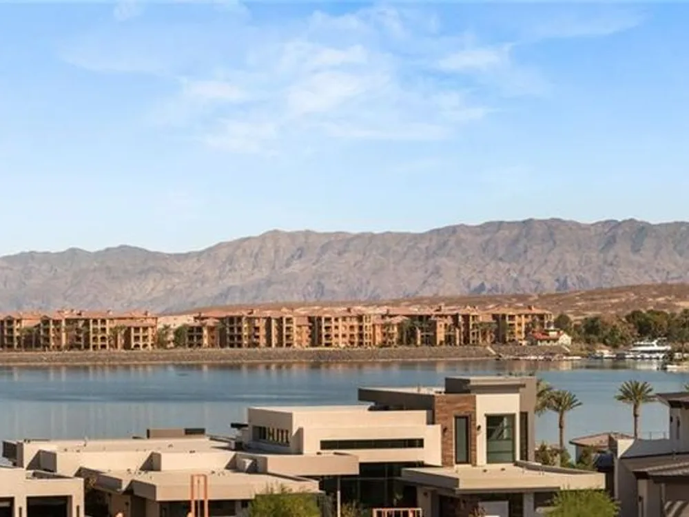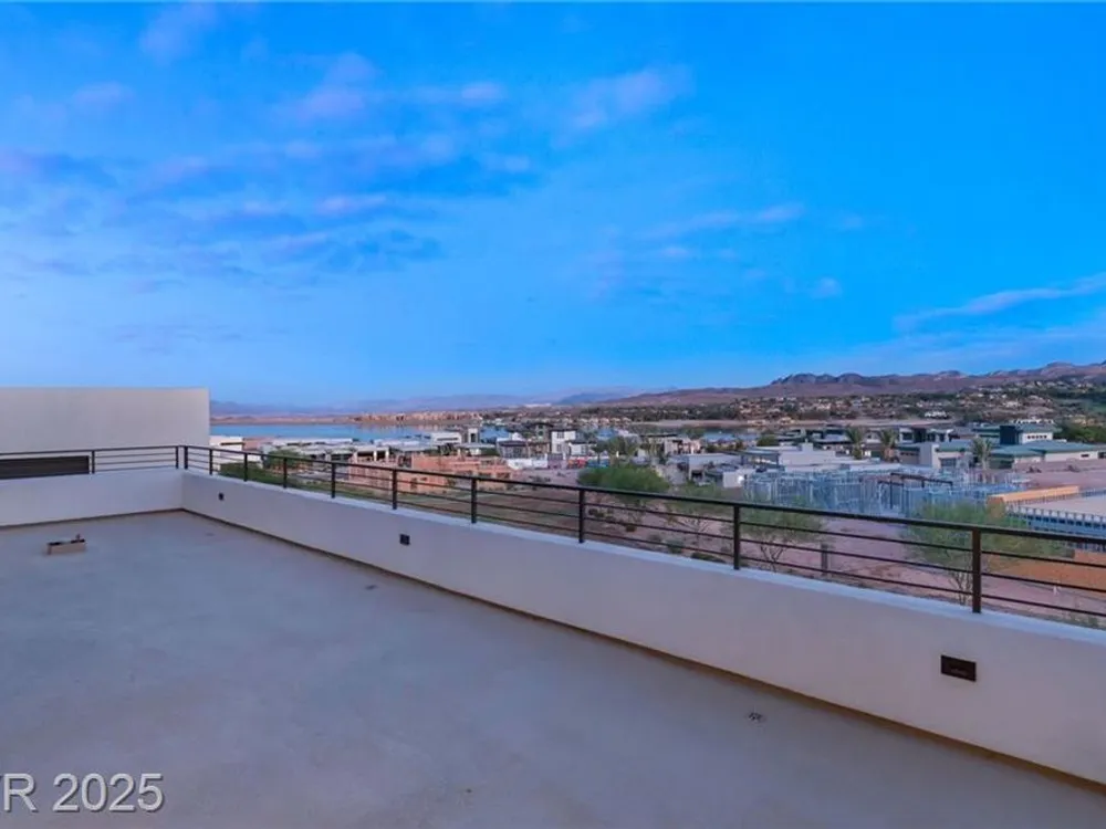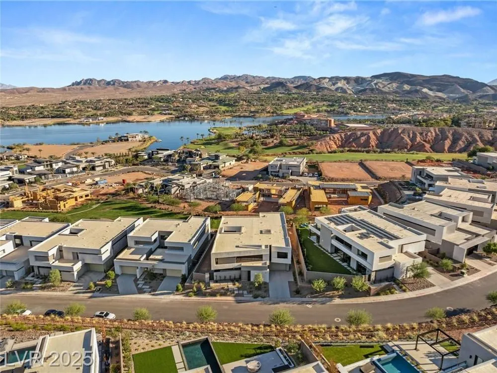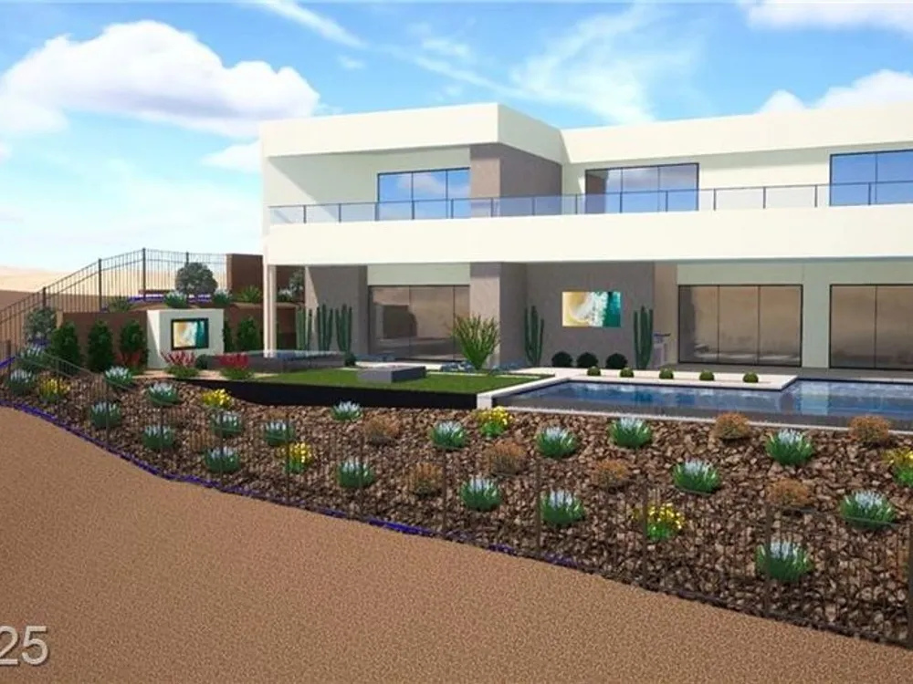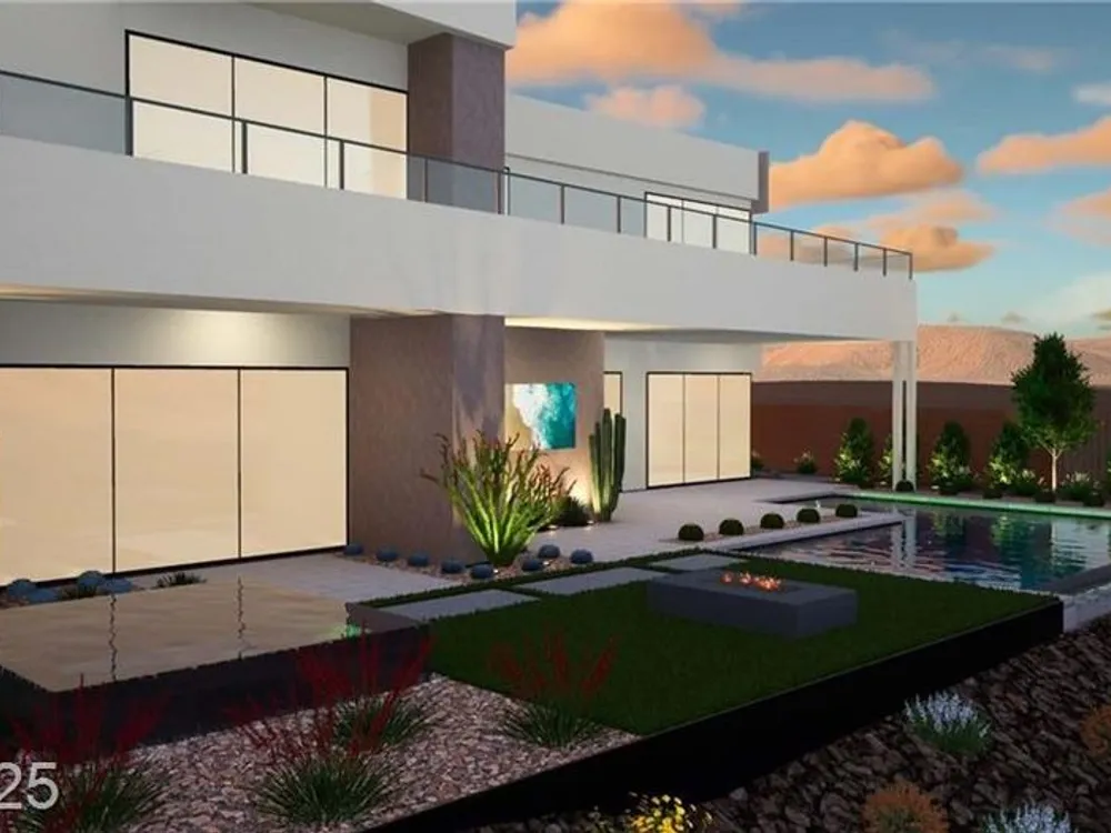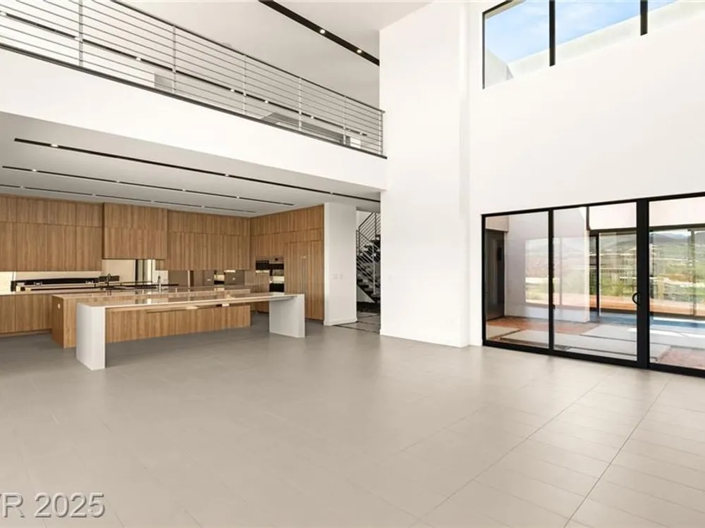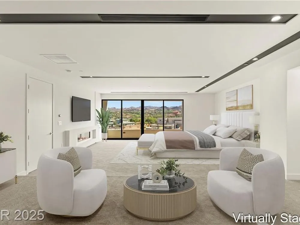 Discover the elegance of this Architecturally Significant Home by Blue Heron at Caliza, a lakeside escape perched on an elevated lot overlooking the lake and mountains within the exclusive double guard-gates of this exclusive community located on Lake Las Vegas’ desirable North Shore. Renowned Vegas Modern designs grace this 7,690-square-foot, four-bed, five-bath home. This home features a seamless biophilic floor plan that blurs the lines between indoor and outdoor spaces and upgrades including Vegas Modern ceilings and entry rock steppers. The Great Room features breathtaking views 108-inch upgraded linear gas fireplace and expansive pocket door. Signature Vegas Modern Kitchen features a top-of-the-line appliance package. Ascend the floating staircase to the luxury primary suite with dual walk-in closets and a panoramic balcony. A Zen-inspired bath offers a walk-in shower, tub, and outdoor shower. Enjoy versatile spaces, including a media/theater room and an upper-level wet bar.