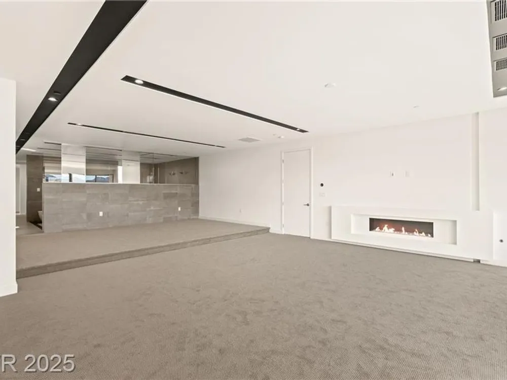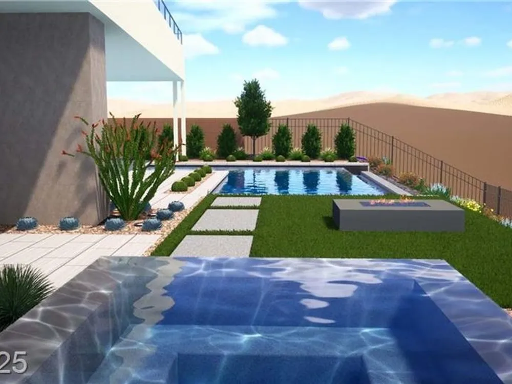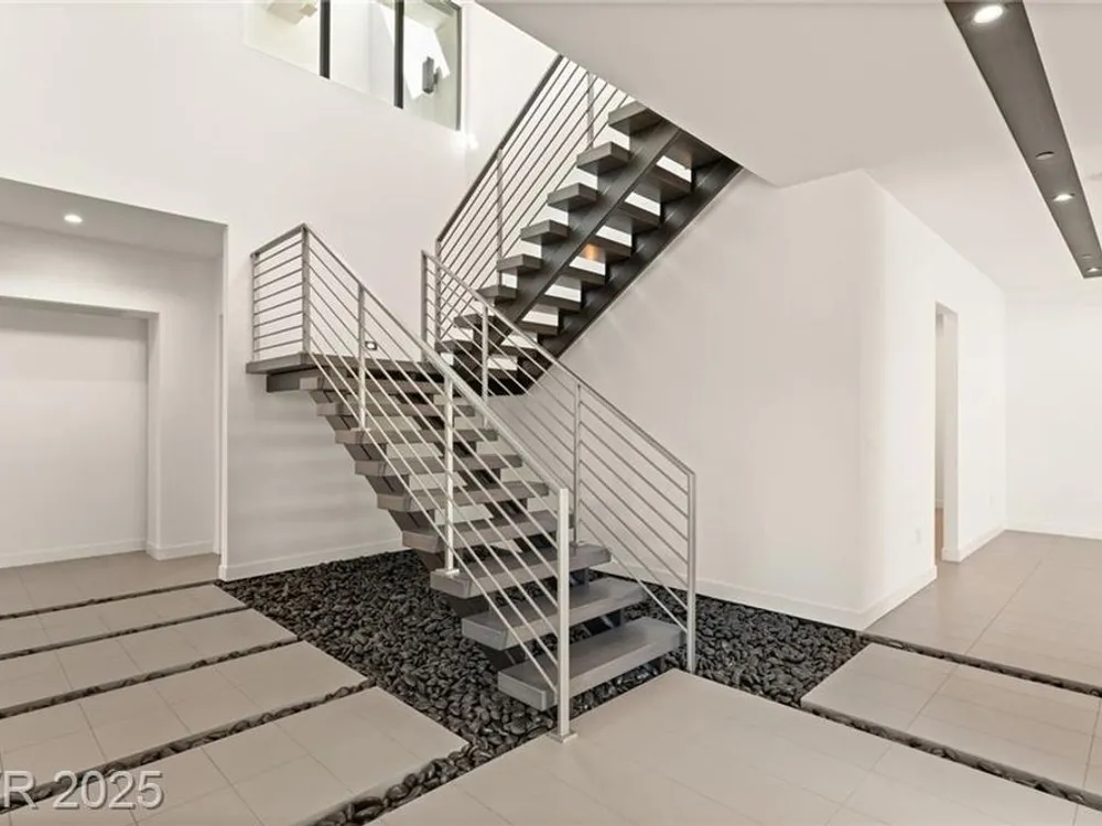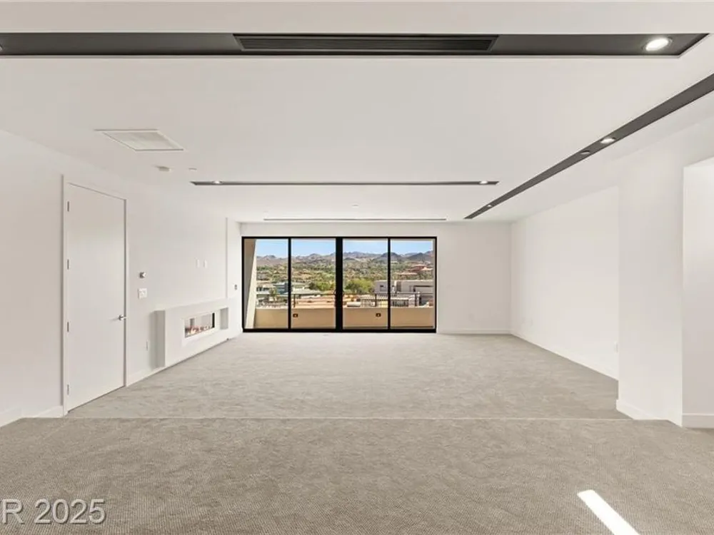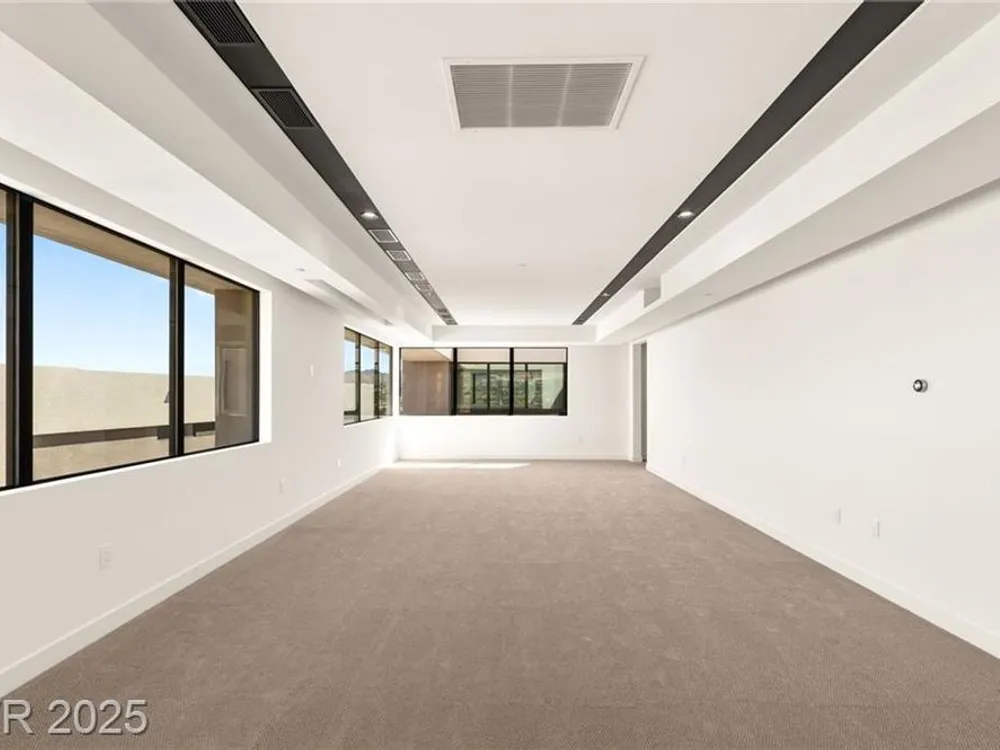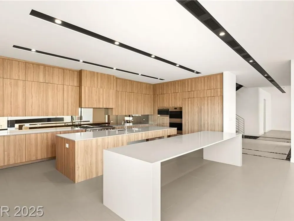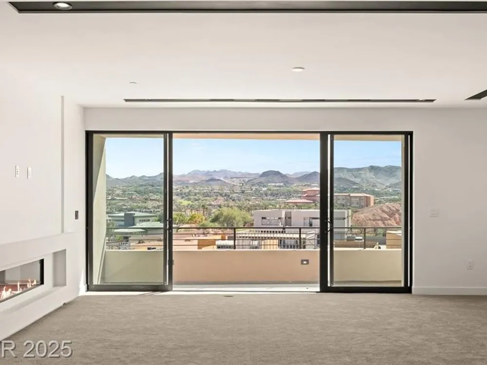 Discover the elegance of this Architecturally Significant Home by Blue Heron at Caliza, a lakeside escape perched on an elevated lot overlooking the lake and mountains within the exclusive double guard-gates of this exclusive community located on Lake Las Vegas’ desirable North Shore. Renowned Vegas Modern designs grace this 7,690-square-foot, four-bed, five-bath home. This home features a seamless biophilic floor plan that blurs the lines between indoor and outdoor spaces and upgrades including Vegas Modern ceilings and entry rock steppers. The Great Room features breathtaking views 108-inch upgraded linear gas fireplace and expansive pocket door. Signature Vegas Modern Kitchen features a top-of-the-line appliance package. Ascend the floating staircase to the luxury primary suite with dual walk-in closets and a panoramic balcony. A Zen-inspired bath offers a walk-in shower, tub, and outdoor shower. Enjoy versatile spaces, including a media/theater room and an upper-level wet bar.